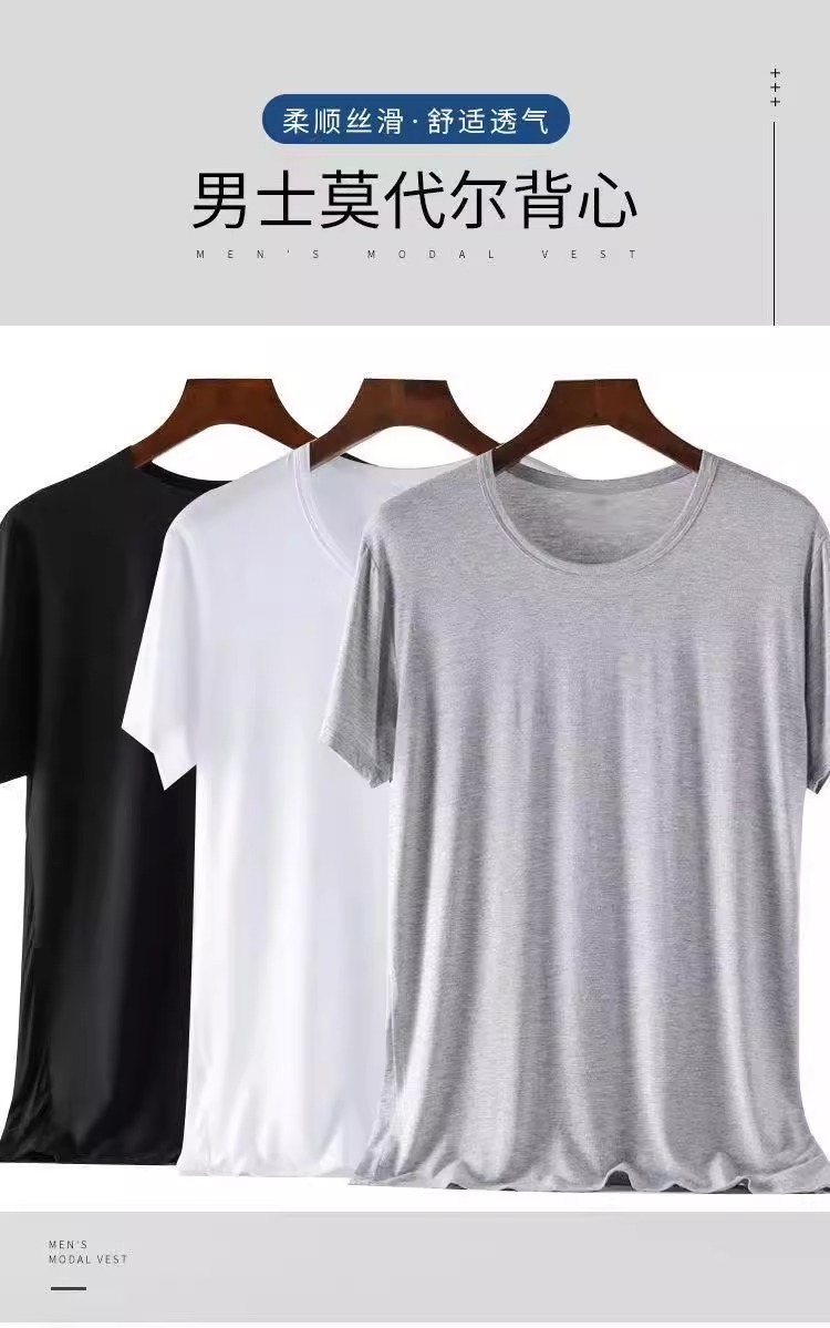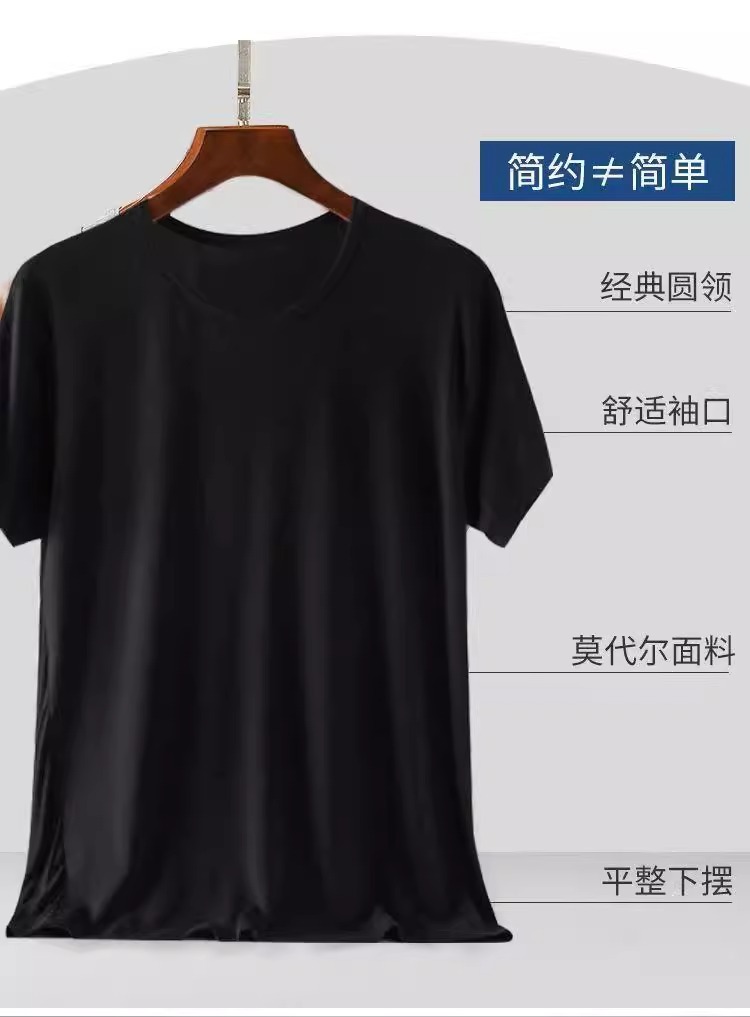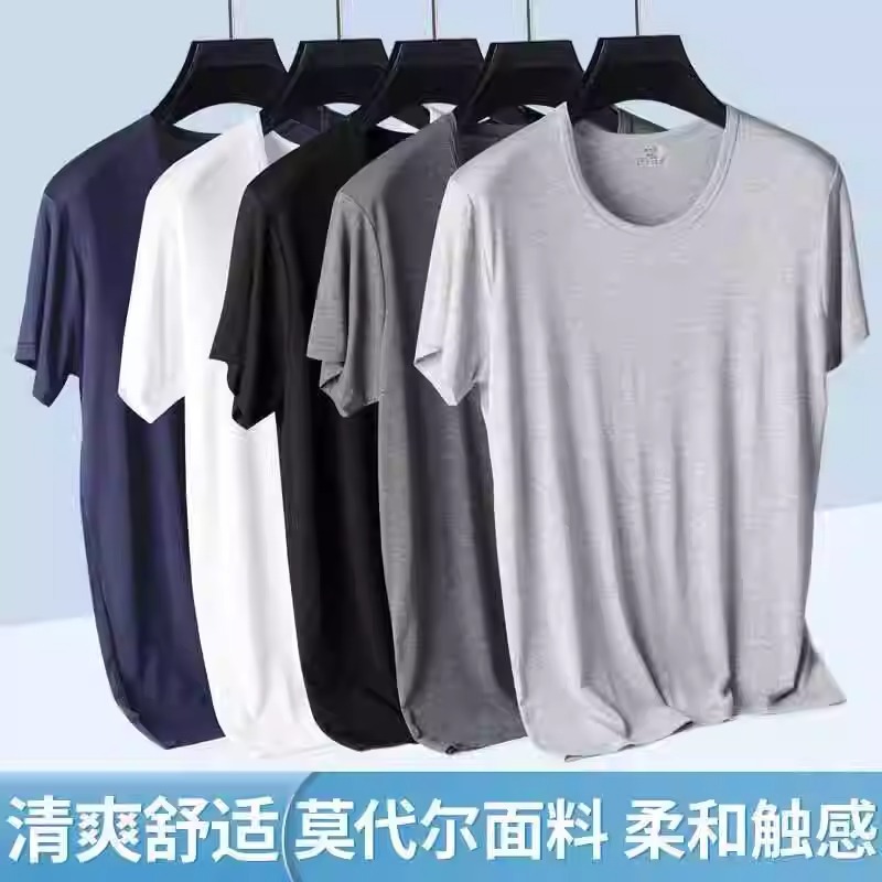 Мужская летняя футболка 2025 года, короткий рукав, модал, круглый вырез, свободного кроя, тонкая, тонкая, высокоэластичная, больших размеров, полурукав