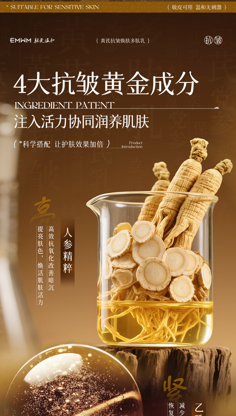 EMWM Астрагал, омолаживающая полипептидная водная эмульсия против морщин, увлажняющая водная эмульсия для ухода за кожей, водная эмульсия перед макияжем, увлажняющая водная эмульсия для осветления светлых линий и борьбы со старением