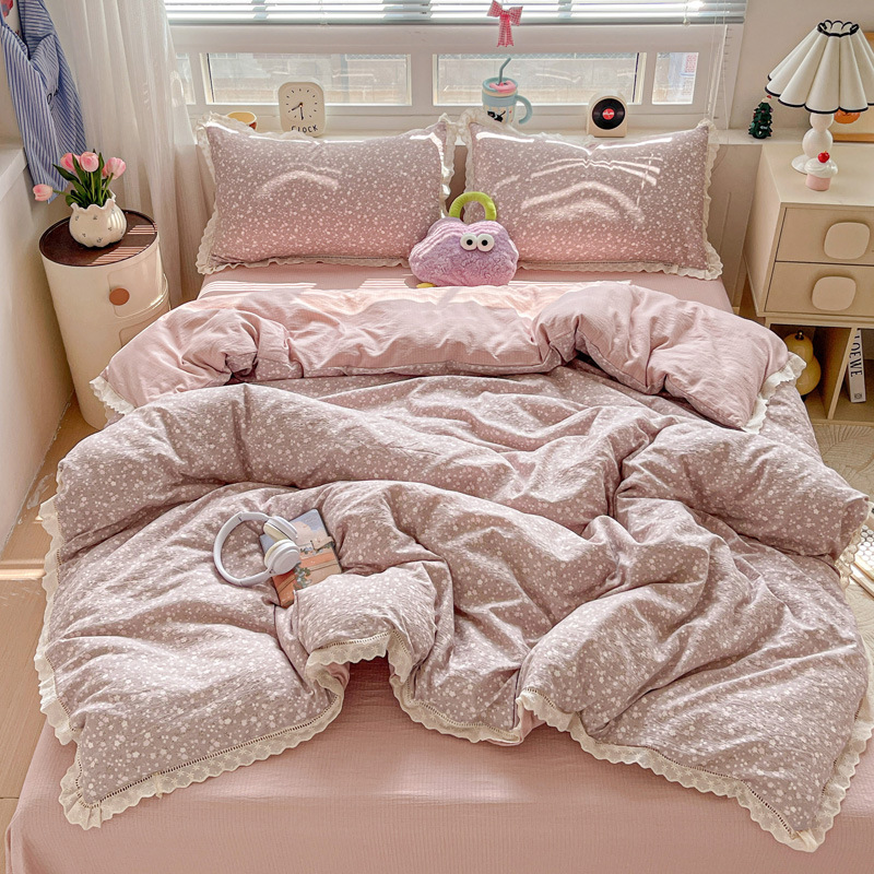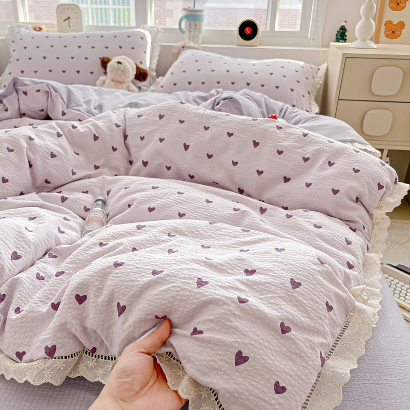 Youyi Xin Class A Wrinkled Yarn Двухслойная пряжа Цельнохлопковый комплект из четырех предметов для односпальной или двуспальной кровати в общежитии и комплекта простыней.