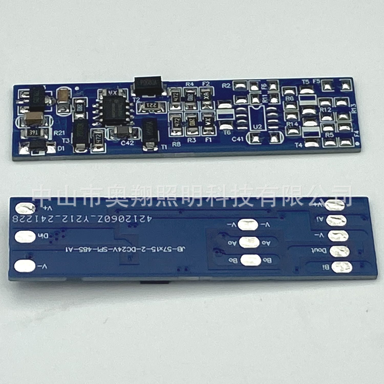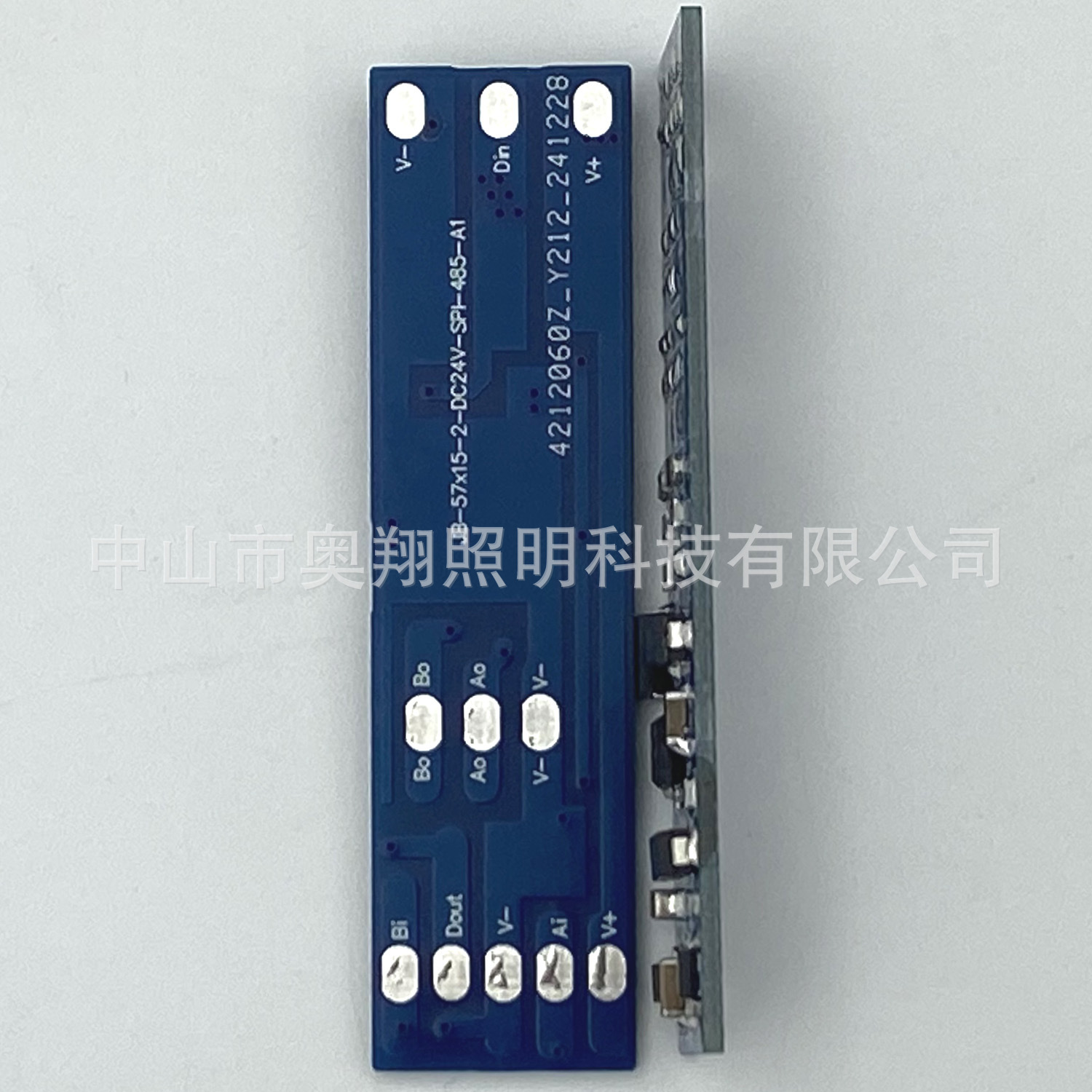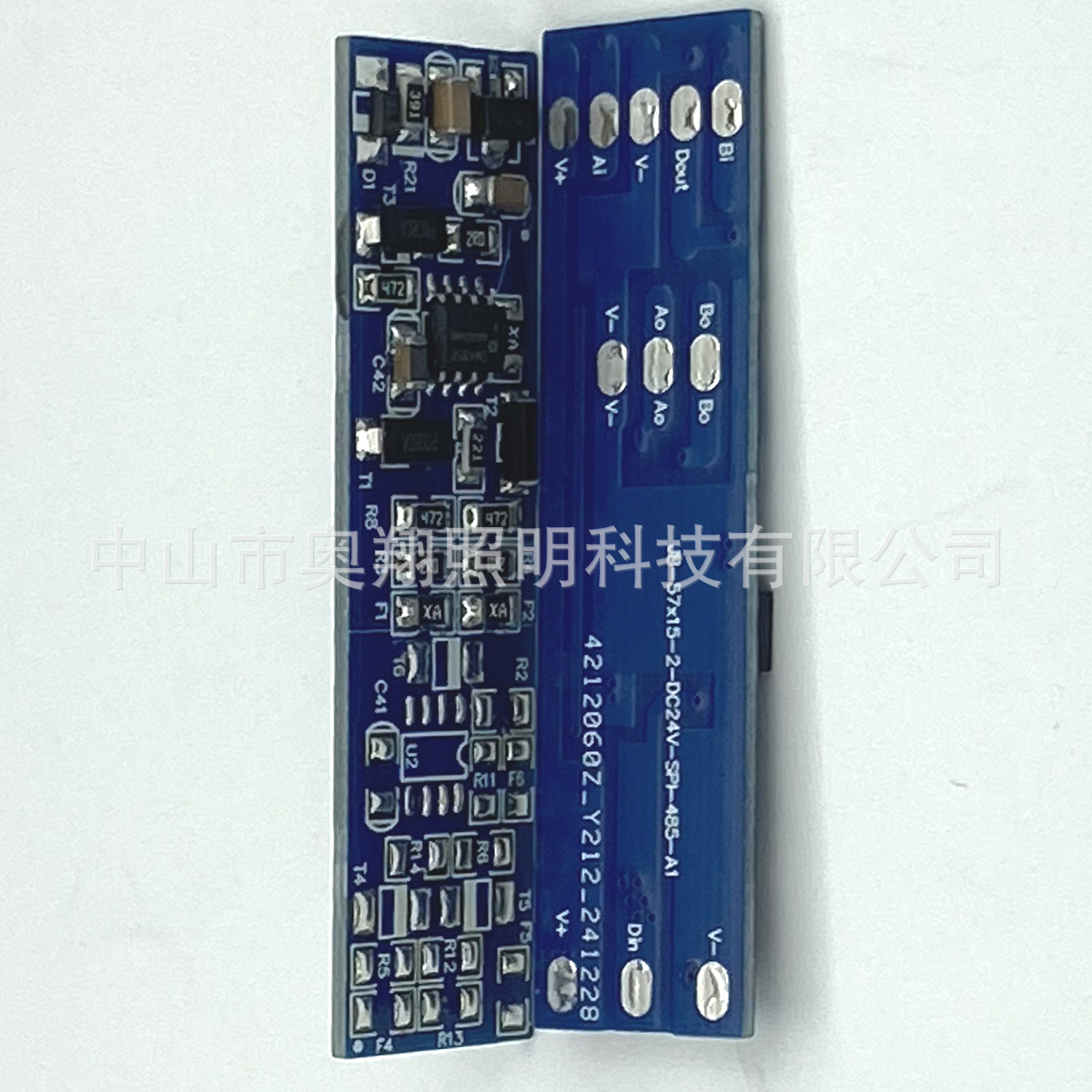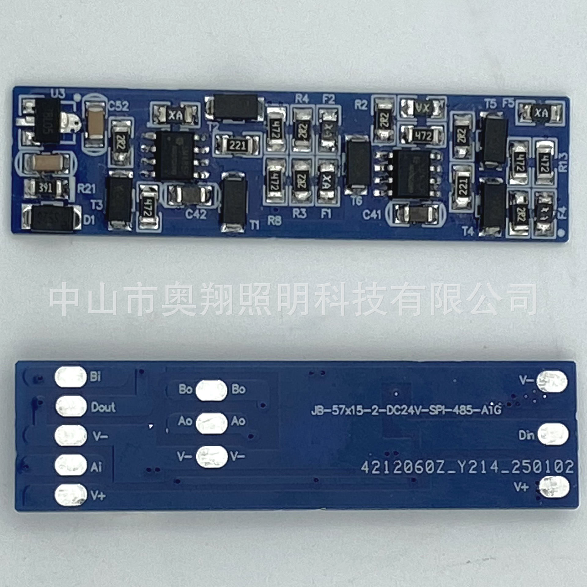 工作原理:UCS1903、SM16703、TM1804、GS8206、WS2811等IC信号和485信号互转,解决长距离传输信号衰减的问题。接受单线信号(SPI、TTL)转换成双绞线485信号输出,到灯具内部后,把收到的485信号再转化成单线差分信号。