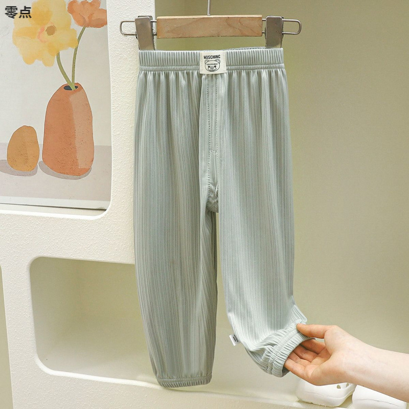 Брюки с защитой от комаров для девочек, лето 2025, новые детские домашние брюки из ледяного шелка, летние большие детские женские свободные брюки, летняя одежда