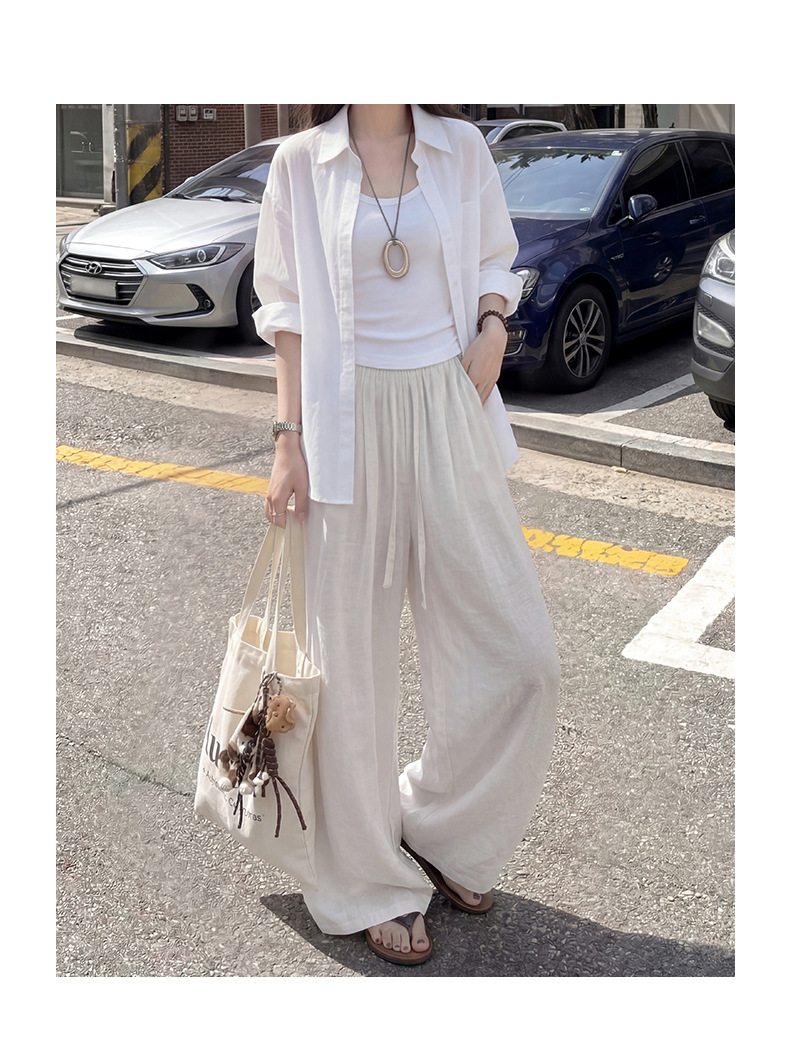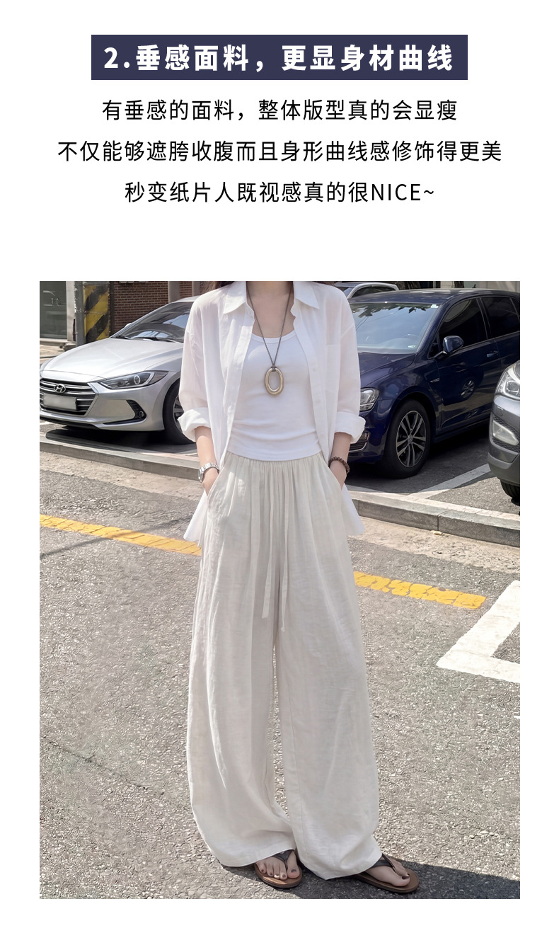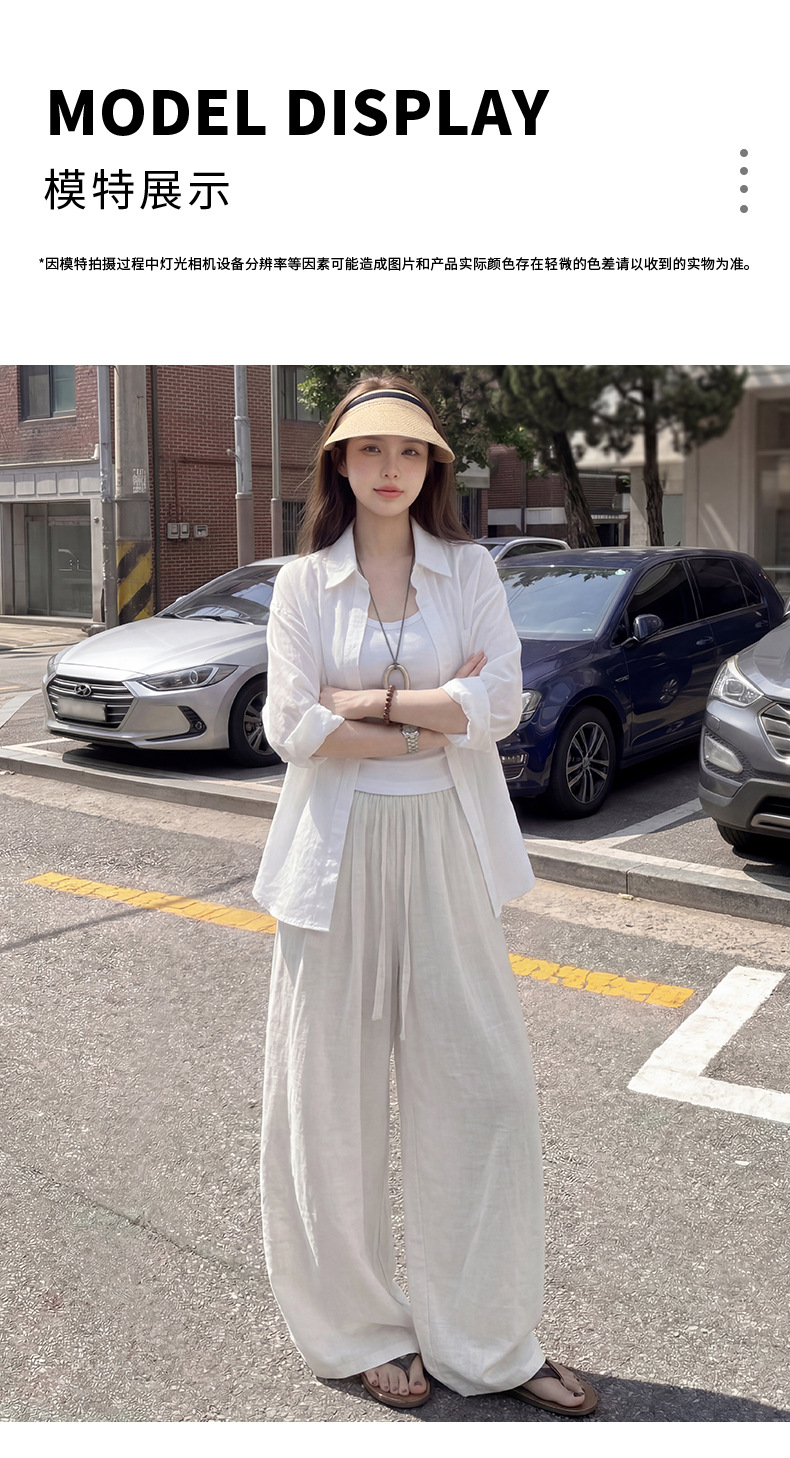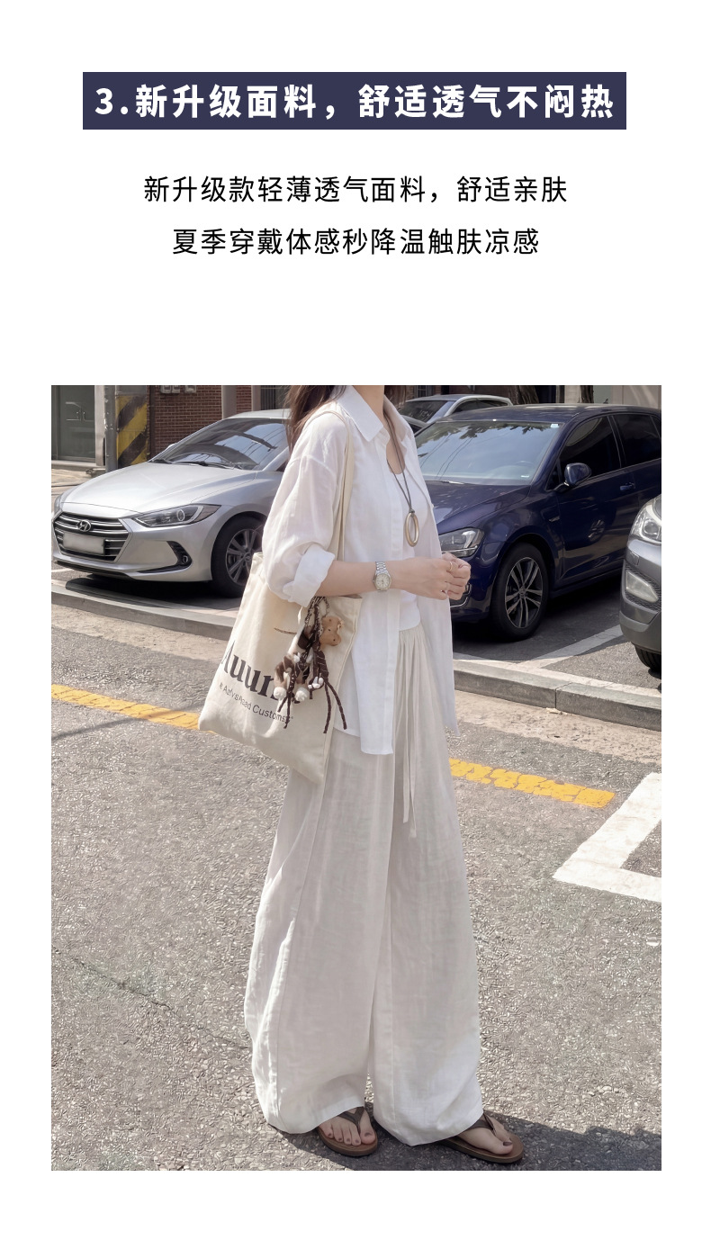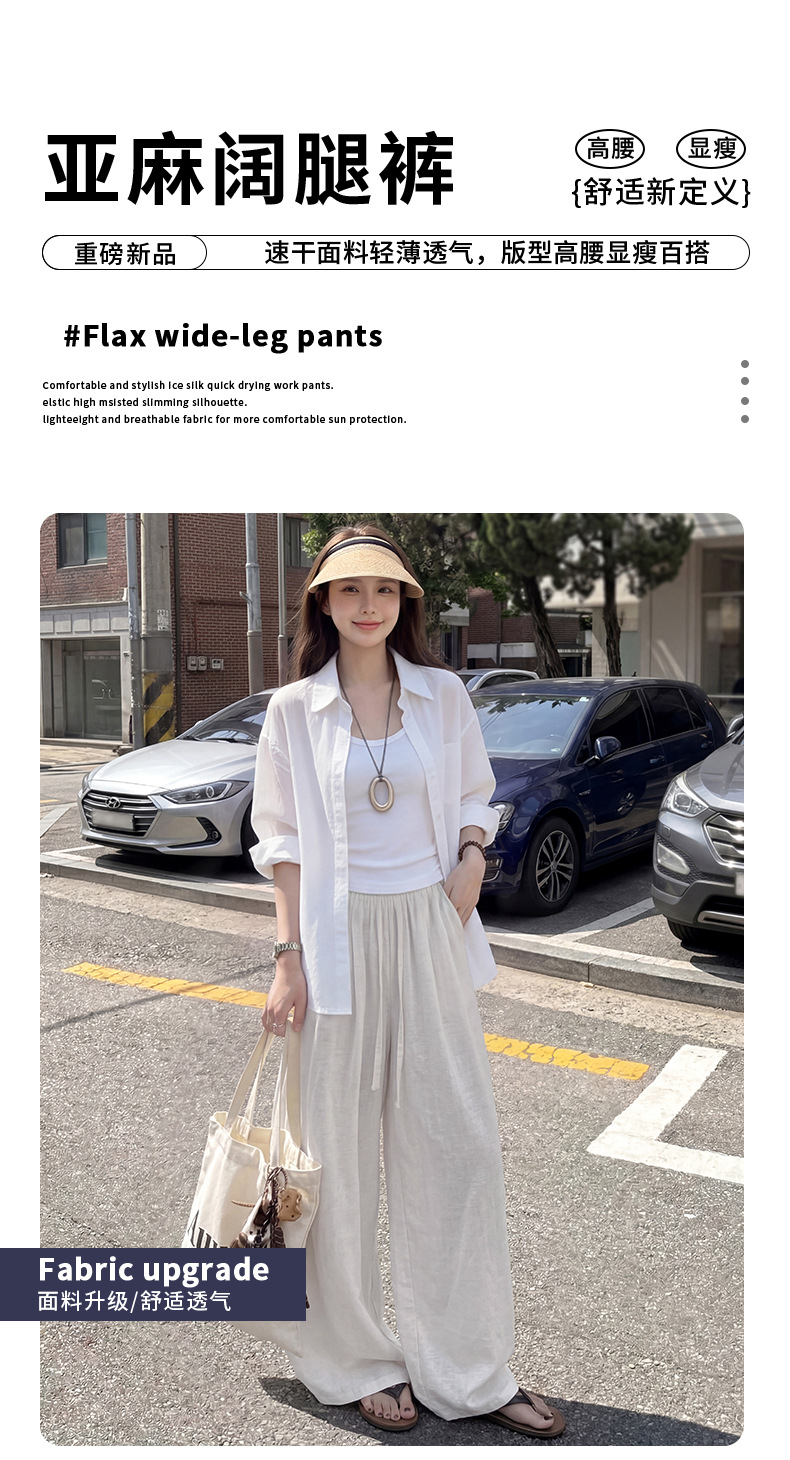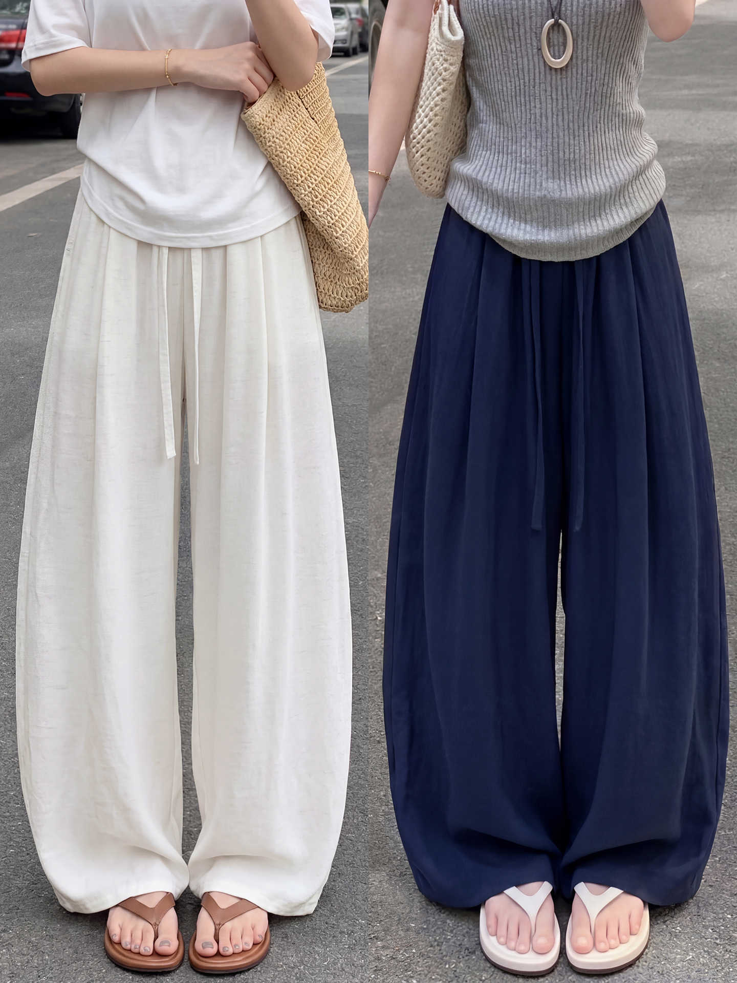 Белые льняные брюки-палаццо для женщин, летние, тонкие, свободного кроя, в стиле old money, из ледяного шелка, с защитой от солнца, повседневные брюки из хлопка и льна.