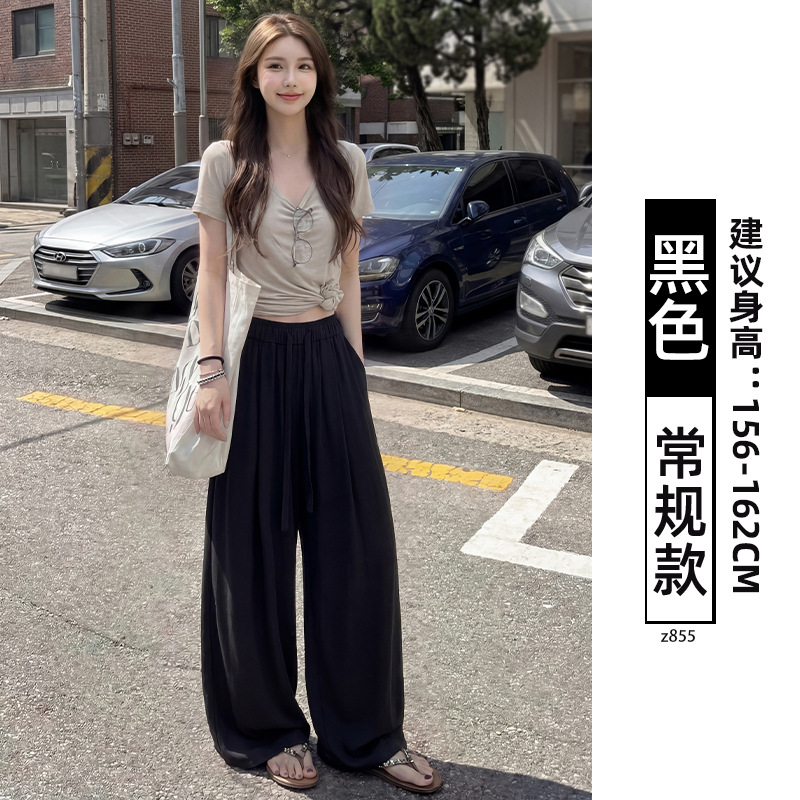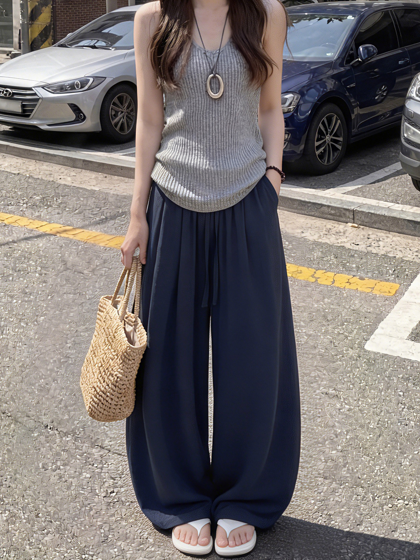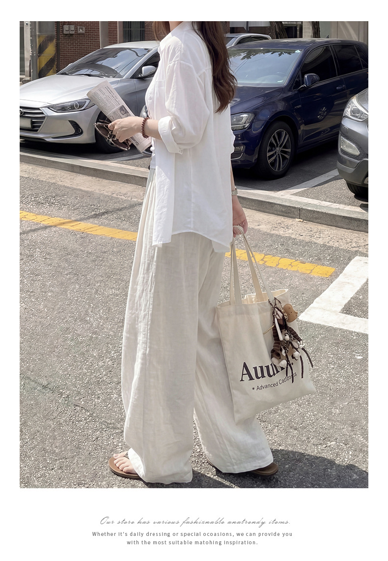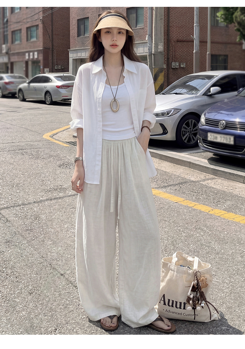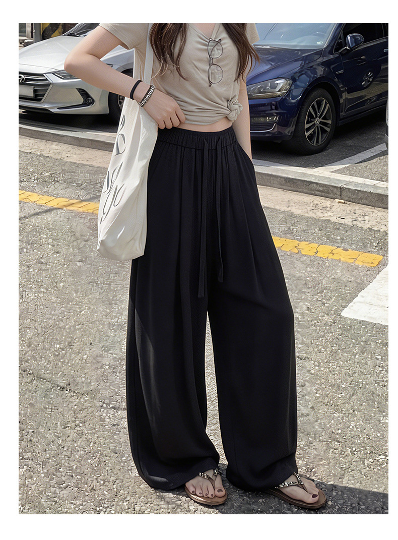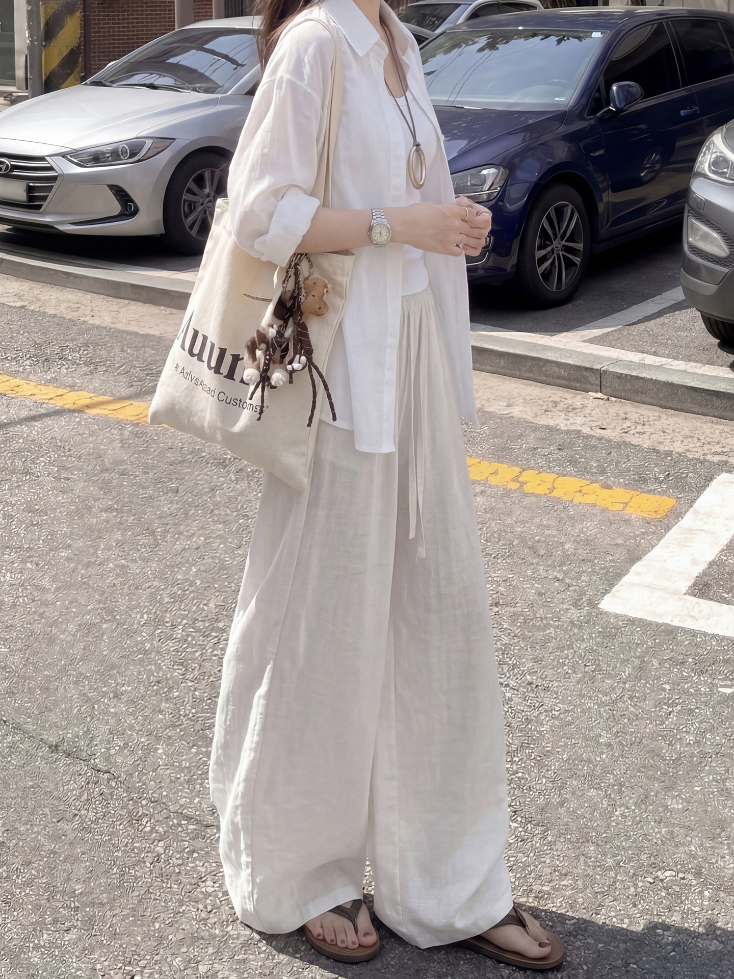 Белые льняные брюки-палаццо для женщин, летние, тонкие, свободного кроя, в стиле old money, из ледяного шелка, с защитой от солнца, повседневные брюки из хлопка и льна.