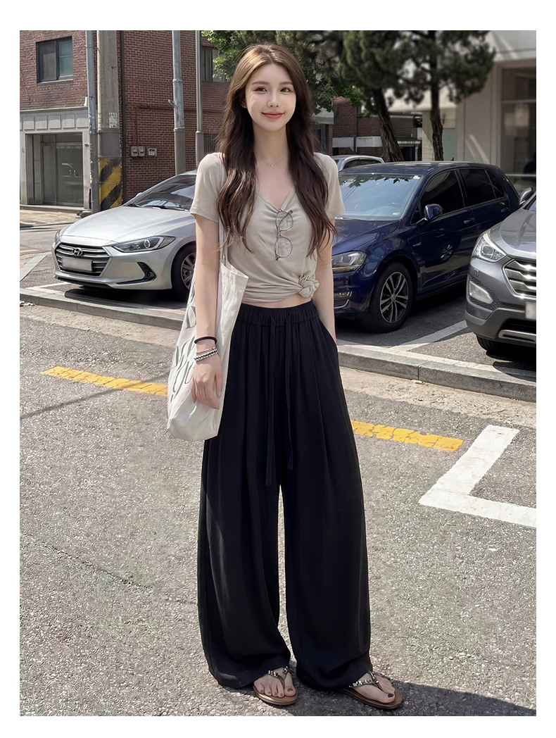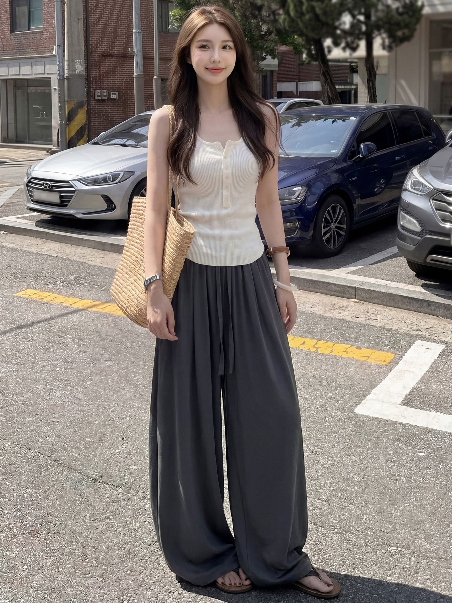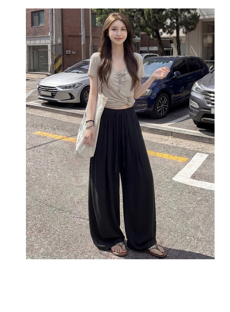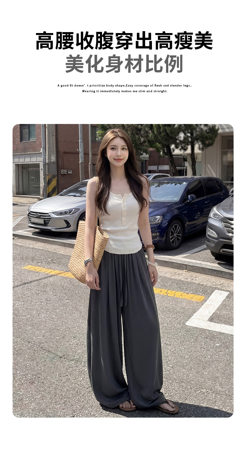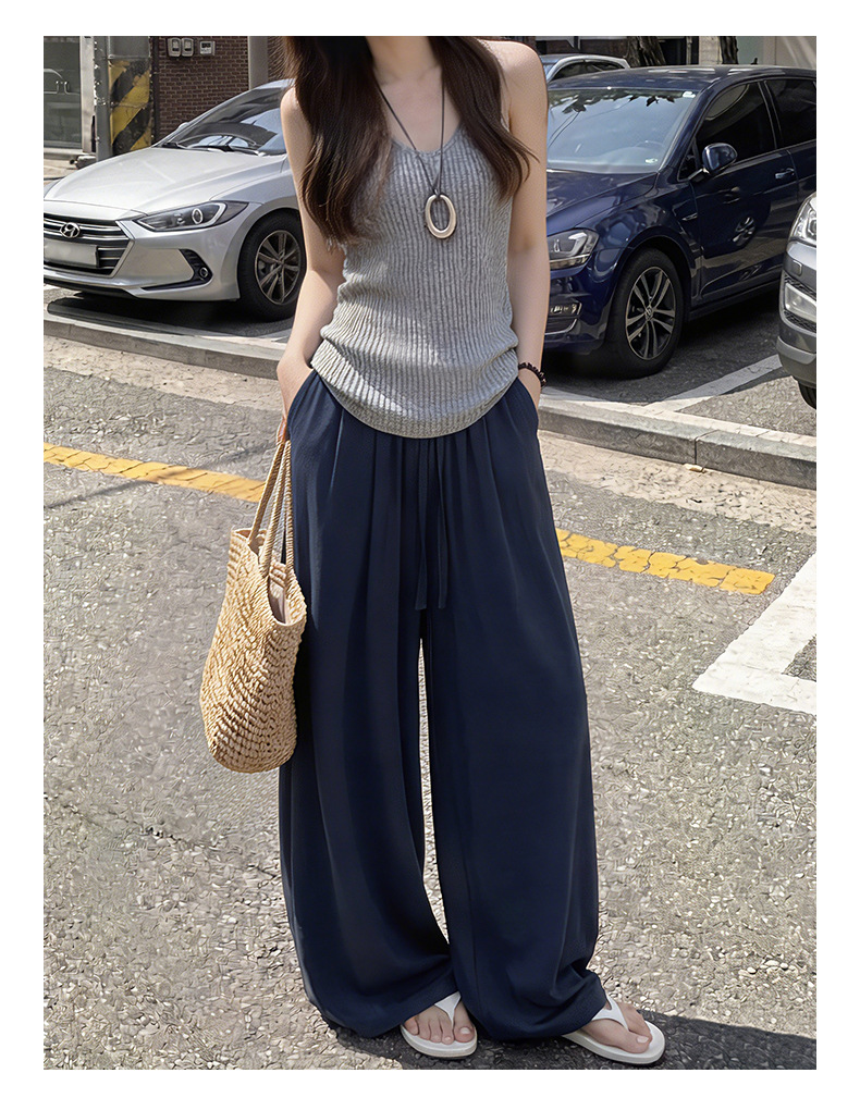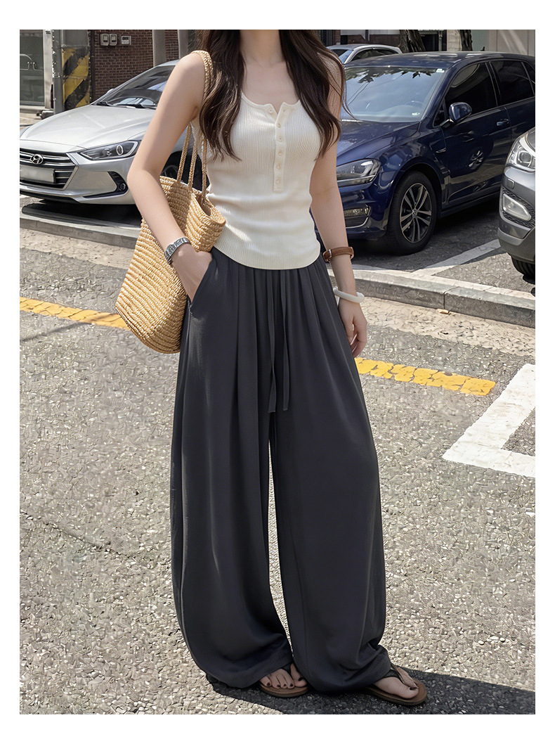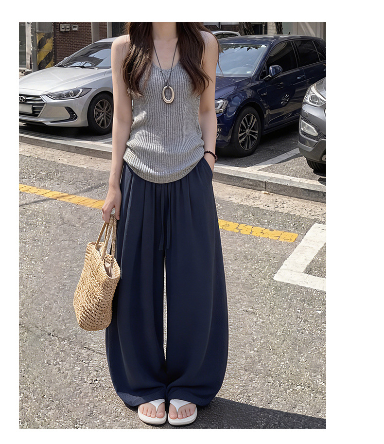 Белые льняные брюки-палаццо для женщин, летние, тонкие, свободного кроя, в стиле old money, из ледяного шелка, с защитой от солнца, повседневные брюки из хлопка и льна.