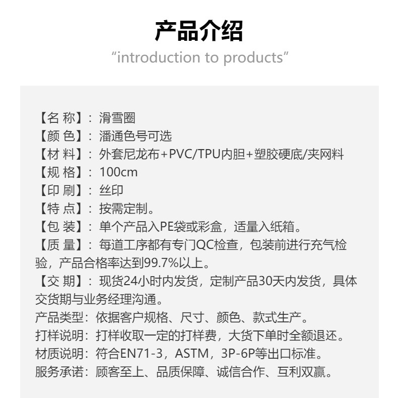 Завод поставляет зимние лыжные кольца, утолщенные надувные лыжные принадлежности, настраиваемые надувные одинарные и двойные лыжные кольца.