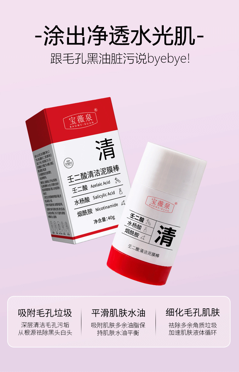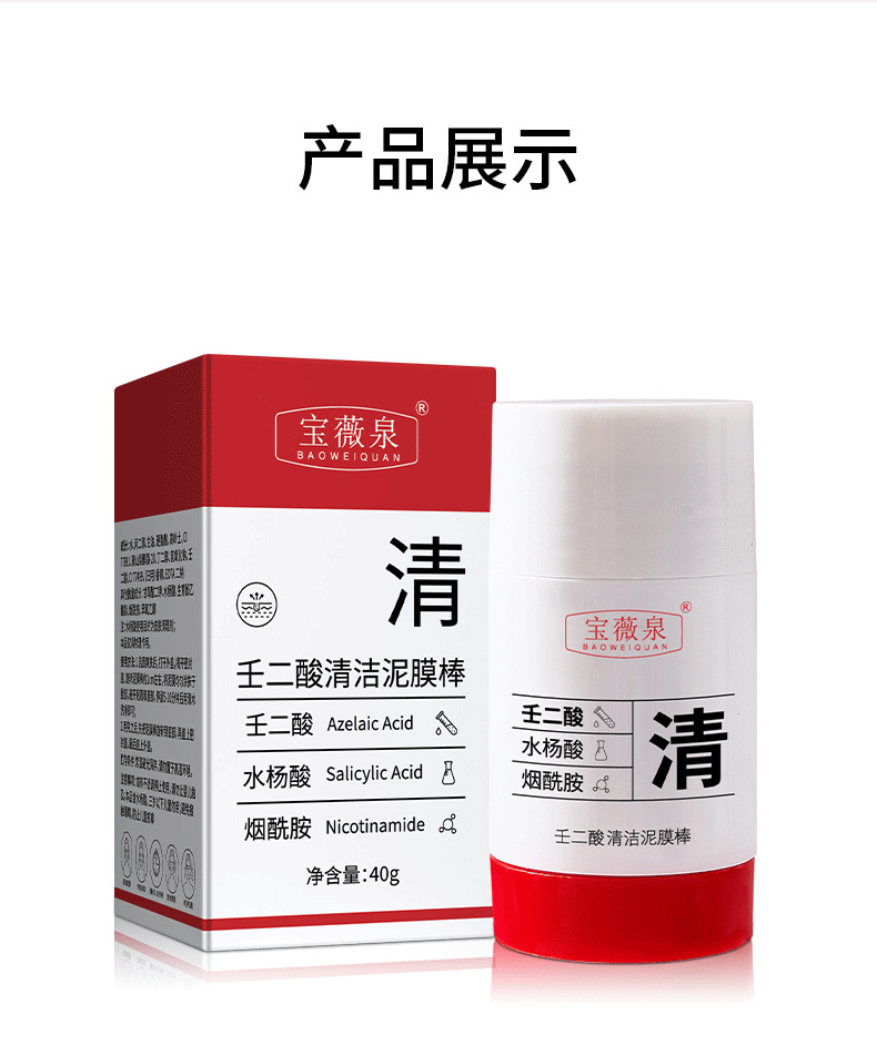 Очищающая грязевая маска-карандаш с азелаиновой кислотой Baishu; Очищающая грязь с азелаиновой кислотой Baoweiquan