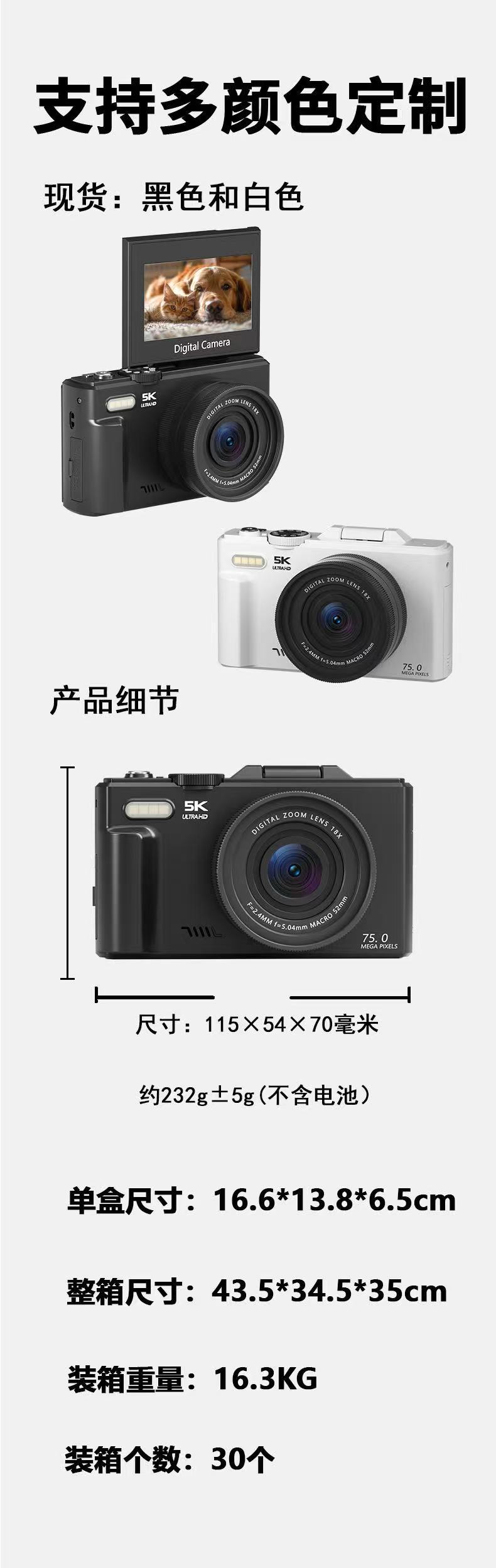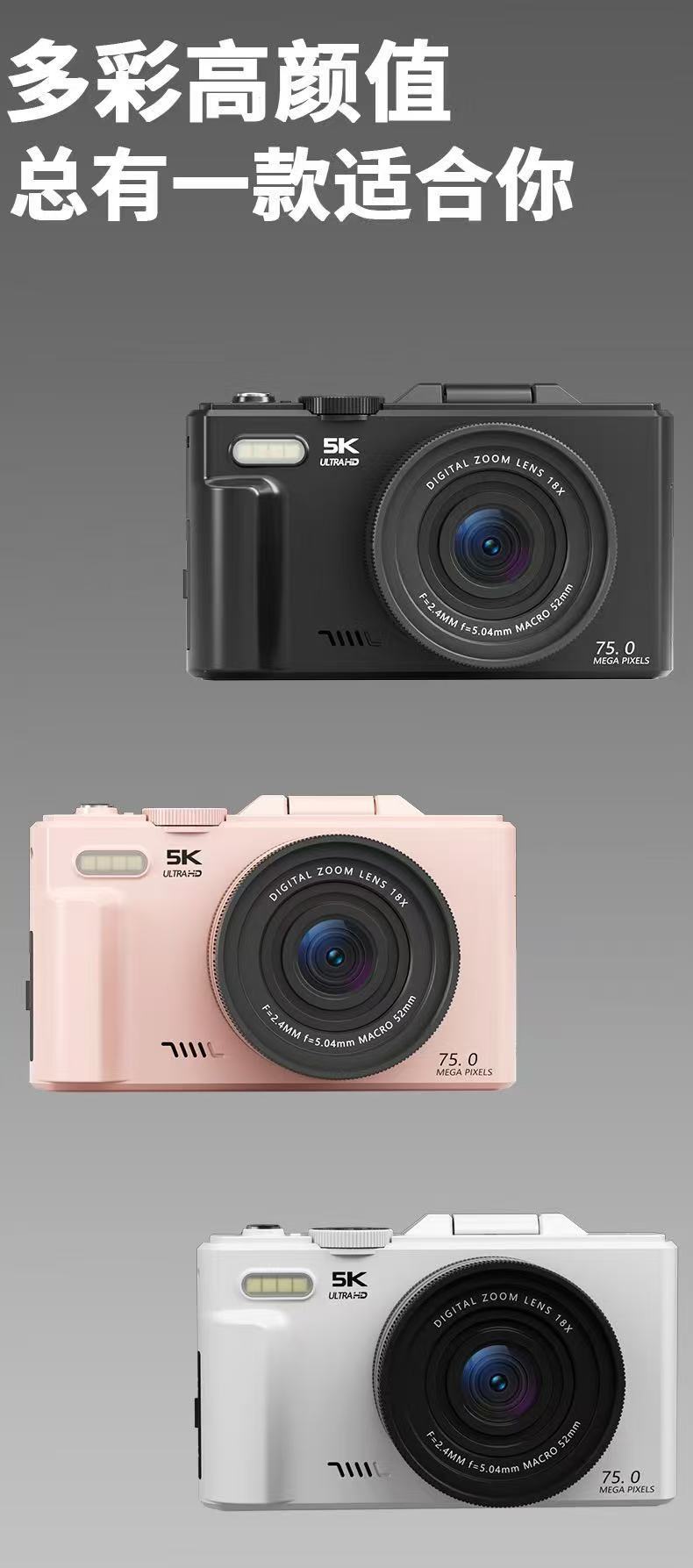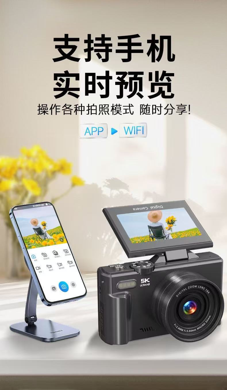Новая цифровая камера 3inch с откидным экраном, WIFI, HD, 75 миллионов пикселей, видео 5K, 18-кратный зум