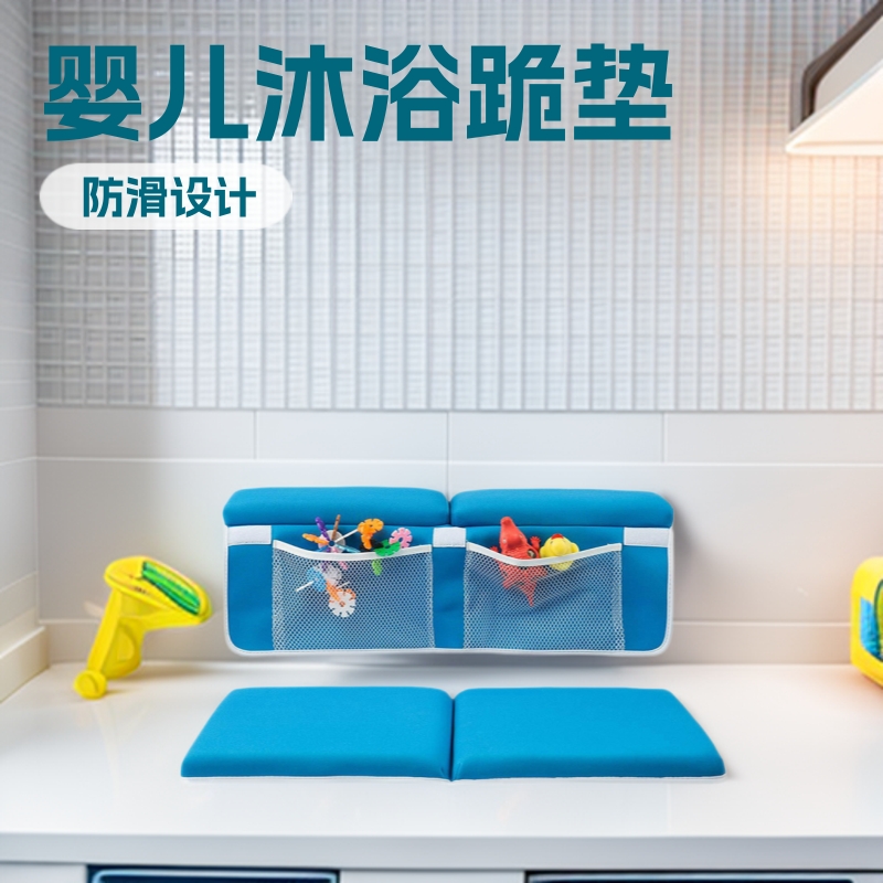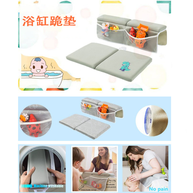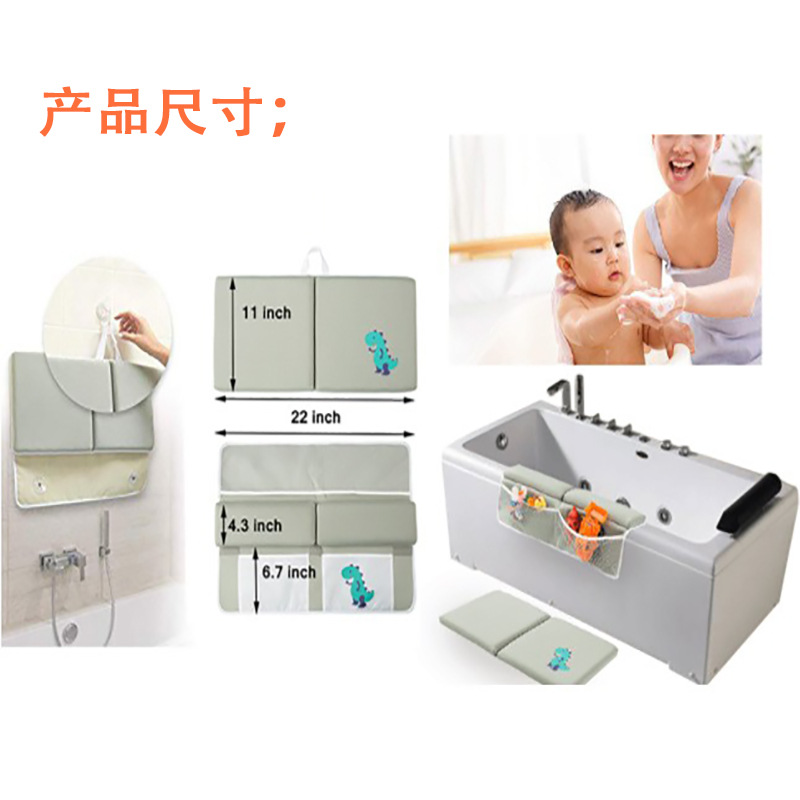 Набор мягких подушек для купания малыша: наколенник и подлокотник в клетку, с сумкой для игрушек, нескользящий, быстросохнущий