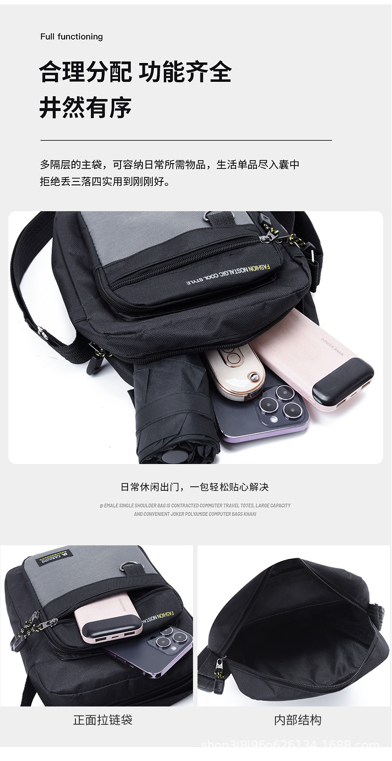 2025 Новый модный повседневный мужской кроссбоди-мешок, многослойный водонепроницаемый кошелек из оксфордской ткани, стильная мужская сумка через плечо
