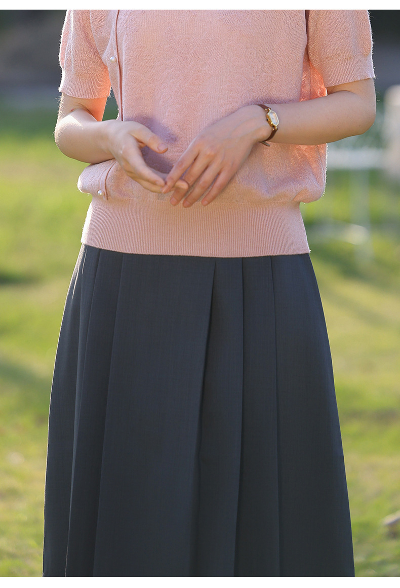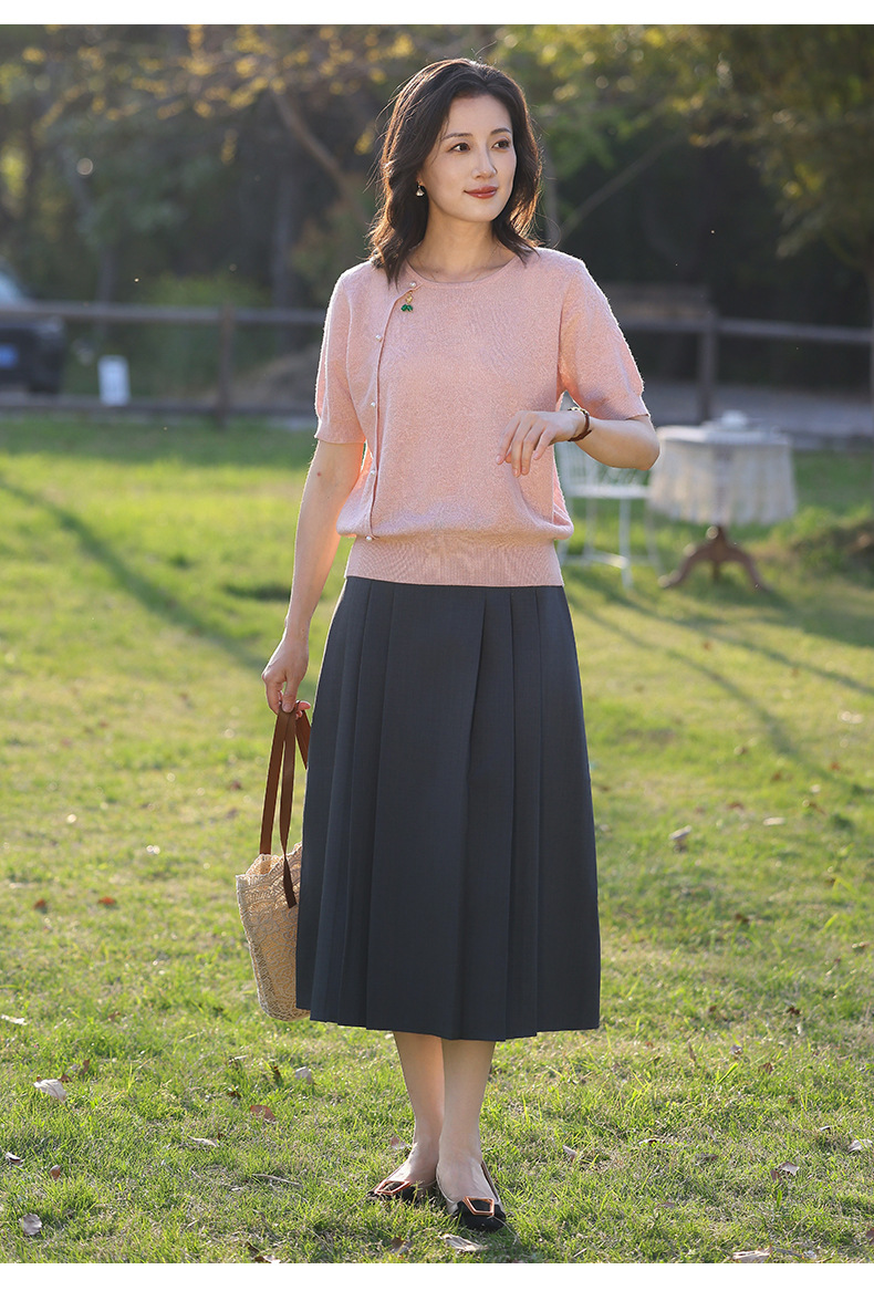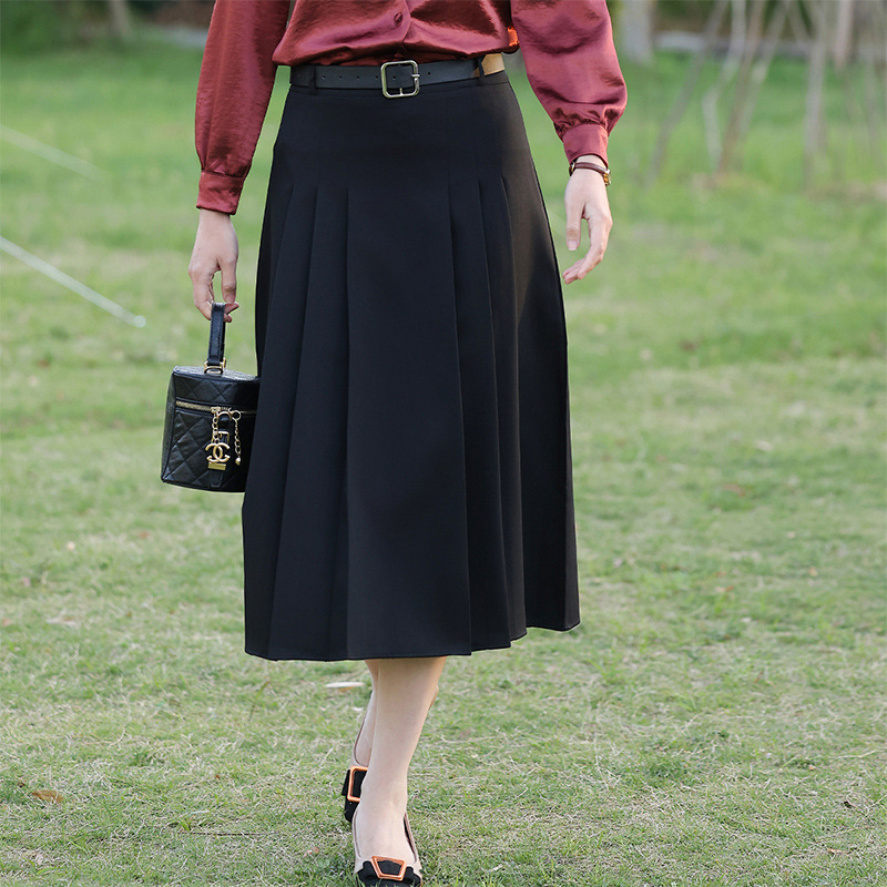 Qianbai Yilian Mom Летняя черная женская юбка средней длины с высокой талией, новый пригородный стиль, закрывающая бедра, утягивающая, элегантная юбка.