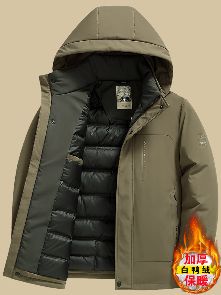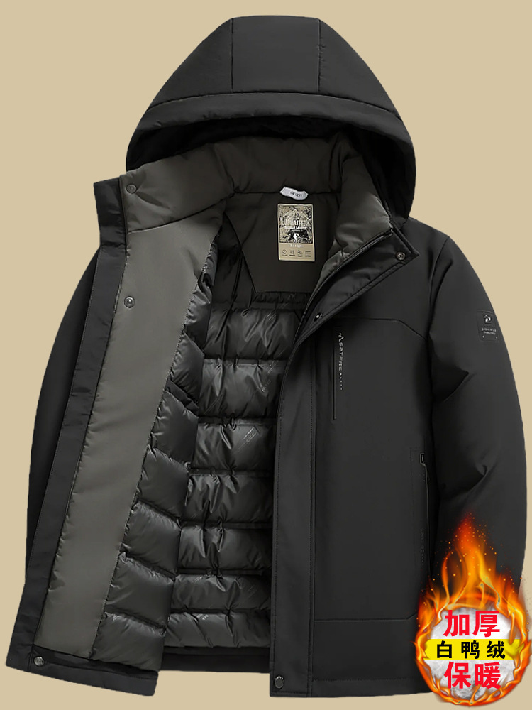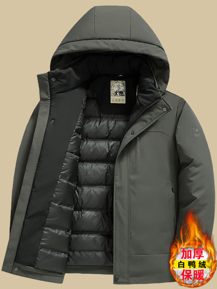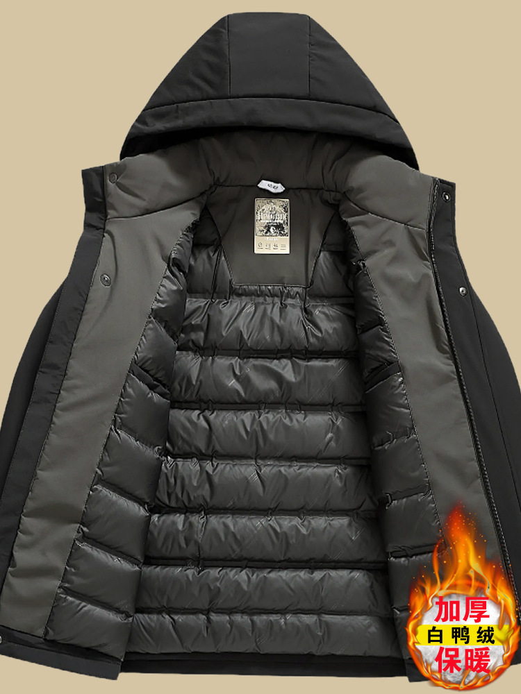 Мужская зимняя новая белая куртка на утином пуху с капюшоном для папы, деловая повседневная пуховая куртка, теплая ветрозащитная свободная зимняя куртка