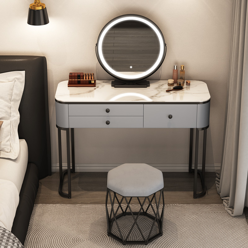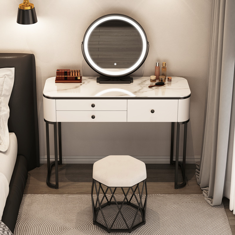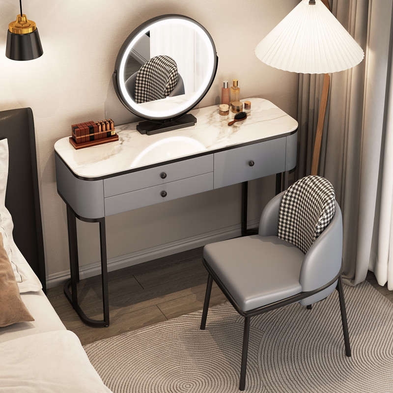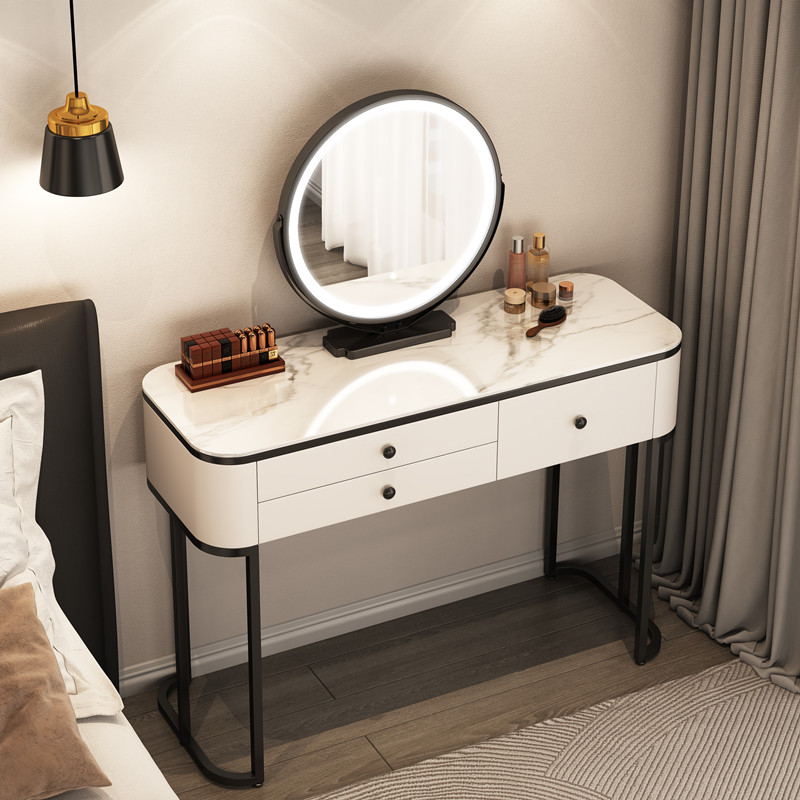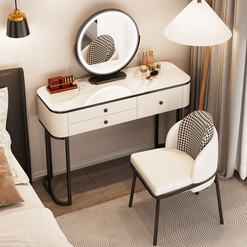 Туалетный столик из цельной деревянной плиты для спальни, легкий роскошный современный минималистичный туалетный столик для маленькой квартиры в кремовом стиле, интернет-знаменитости.