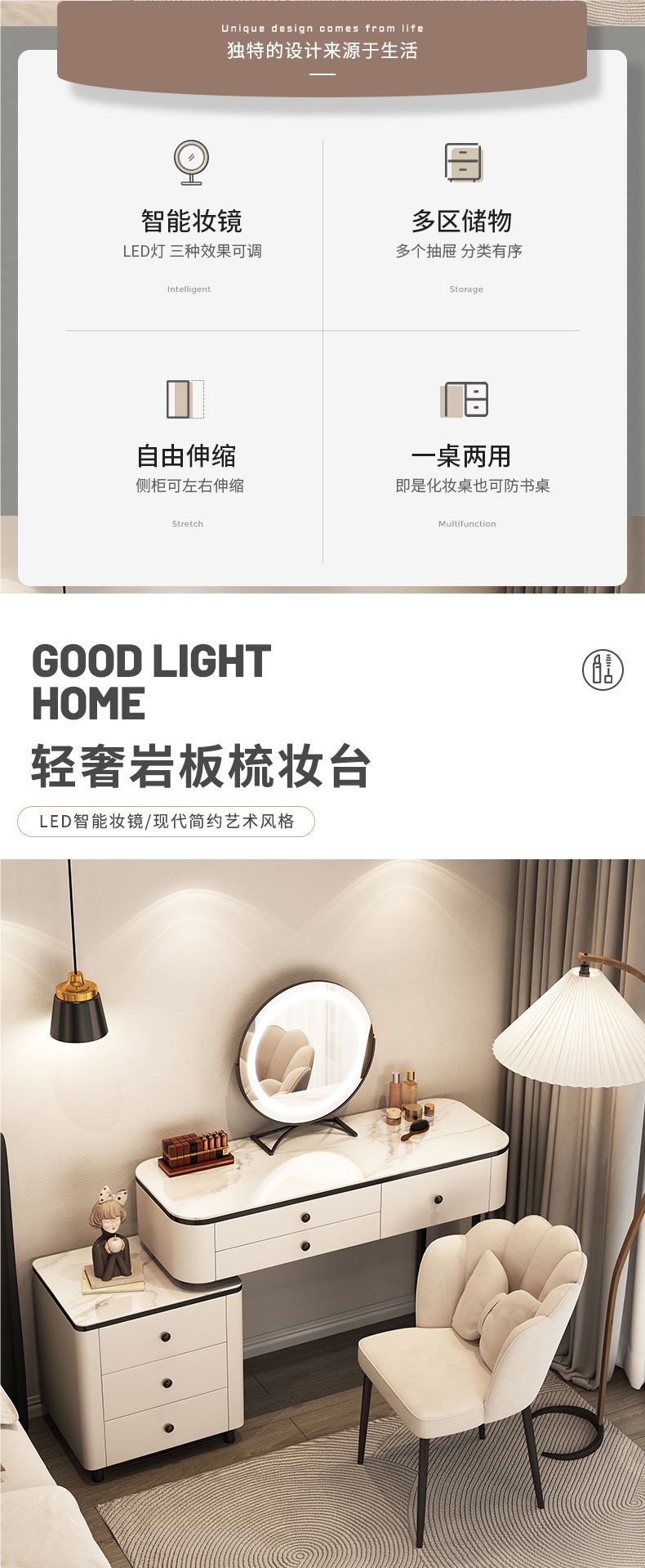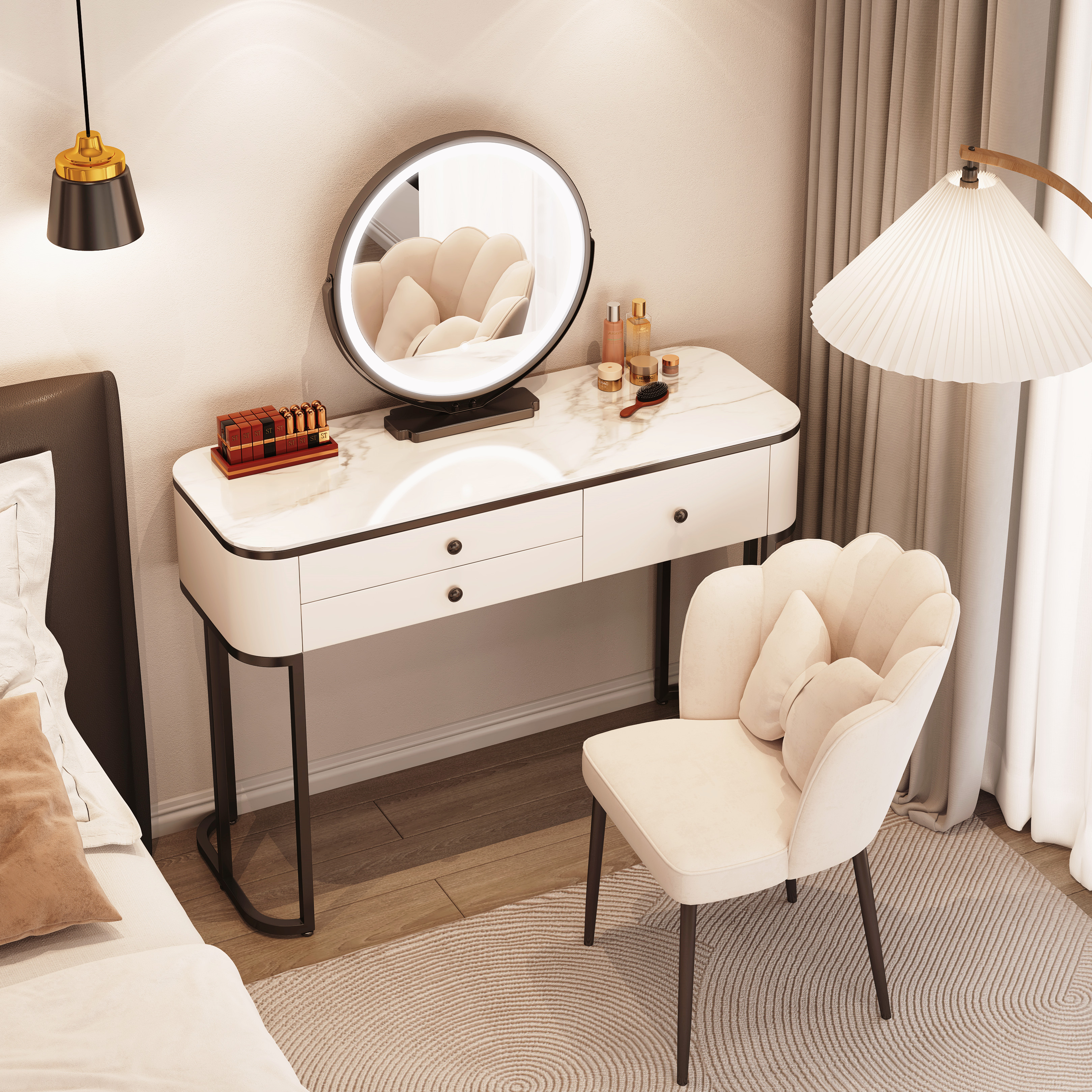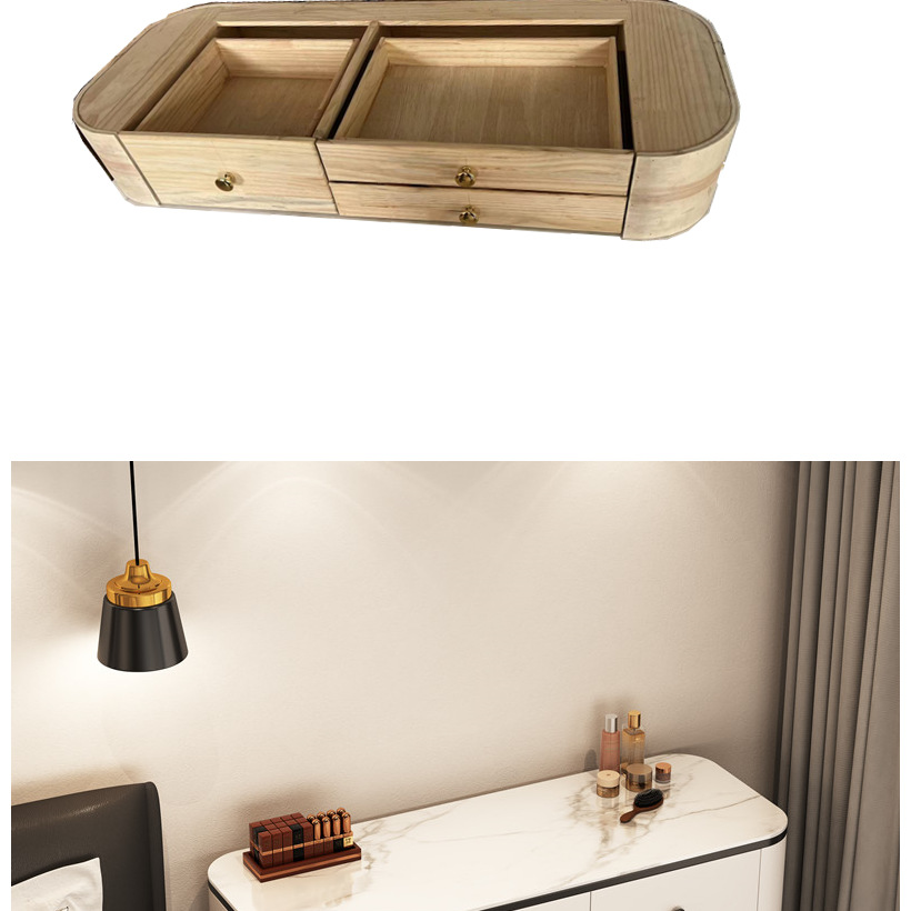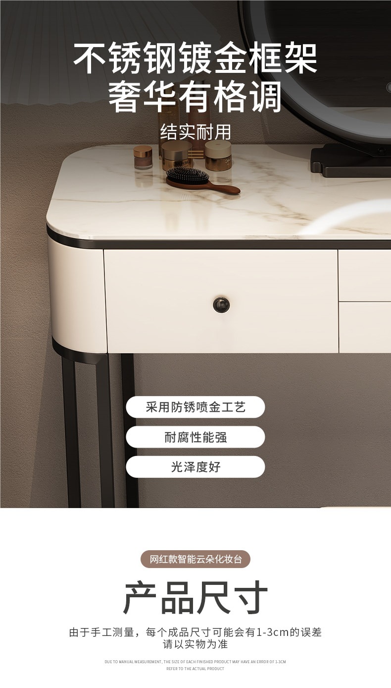 Туалетный столик из цельной деревянной плиты для спальни, легкий роскошный современный минималистичный туалетный столик для маленькой квартиры в кремовом стиле, интернет-знаменитости.