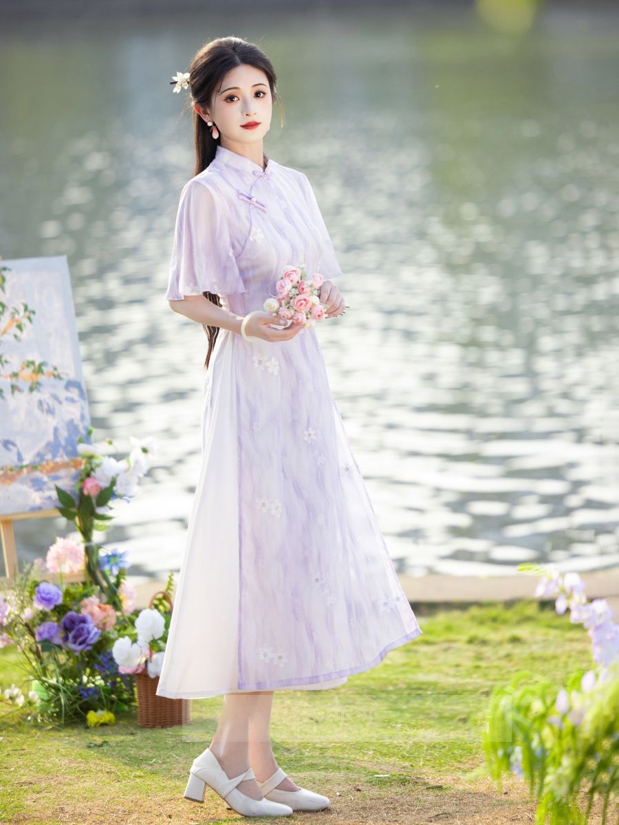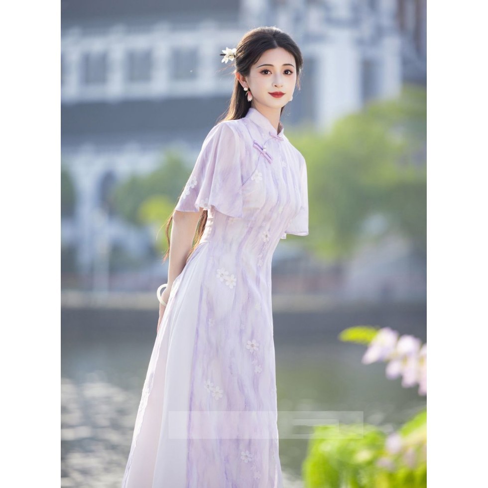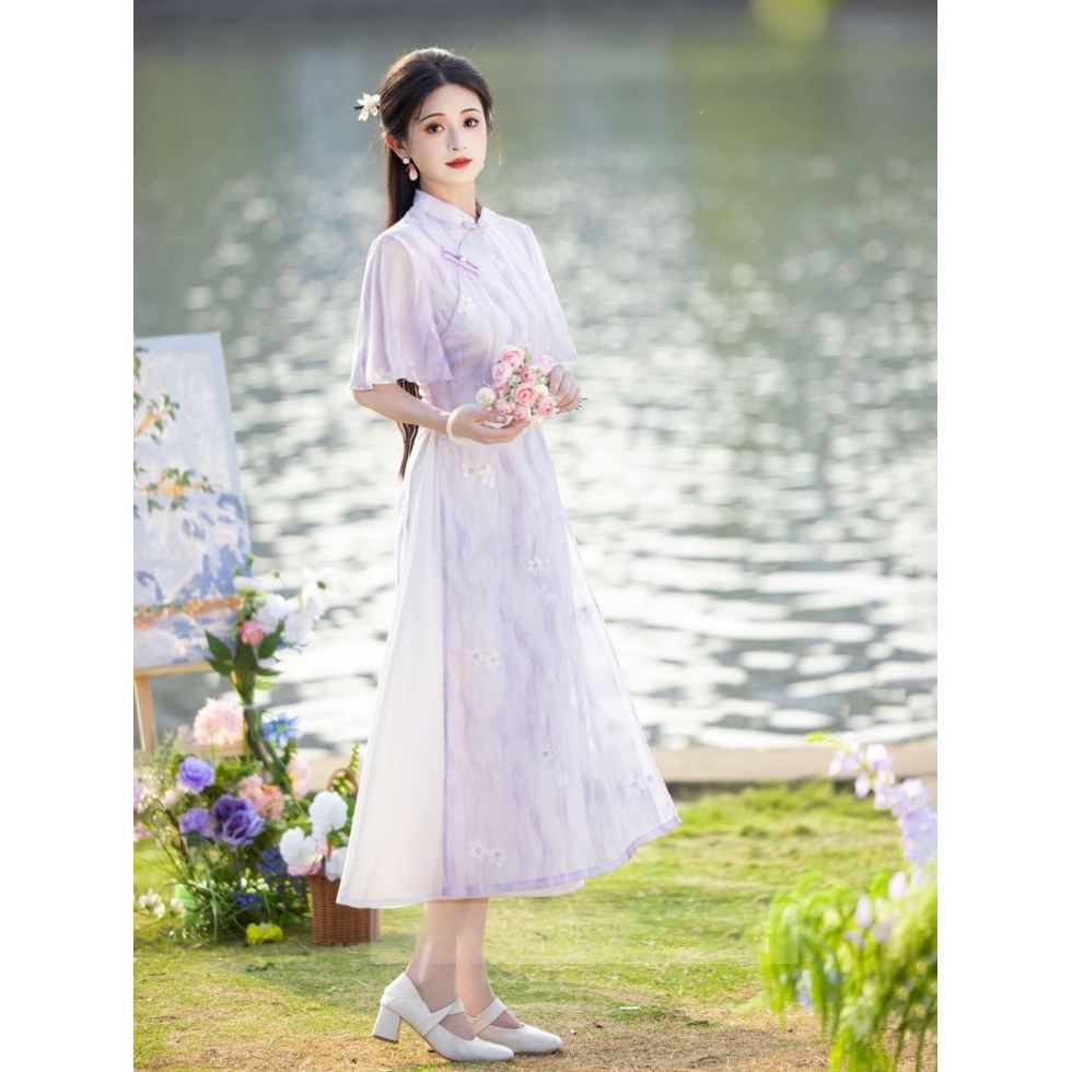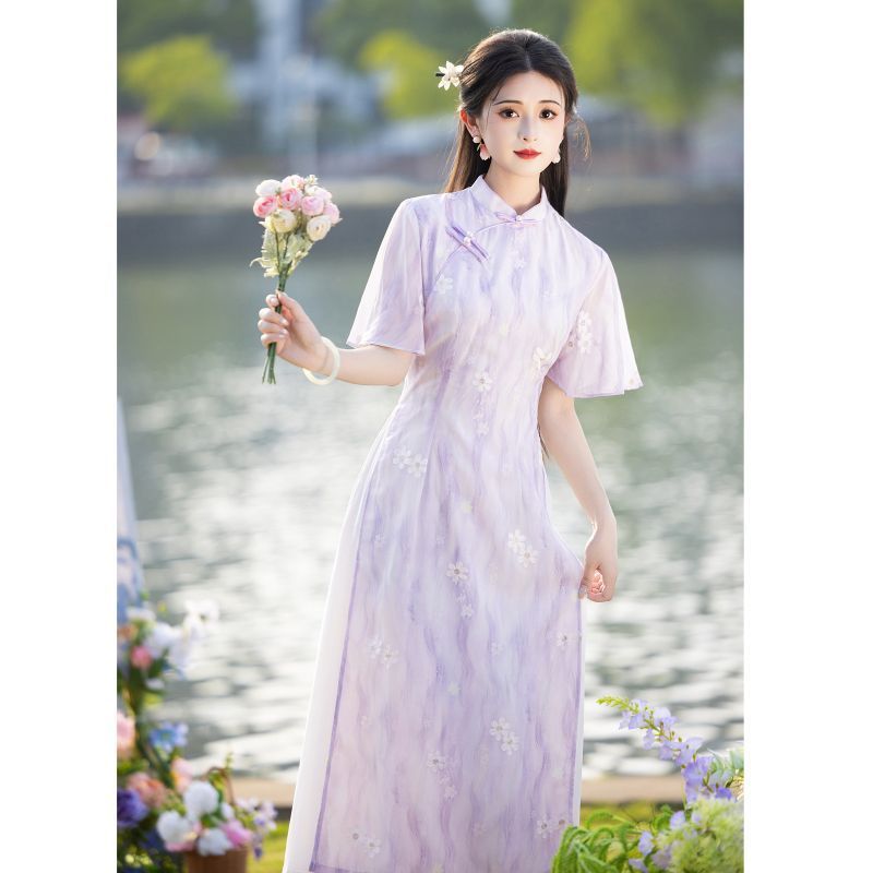 Свежее и элегантное платье Ao Dai Cheongsam 2025, новое летнее лавандовое улучшенное молодежное женское китайское платье