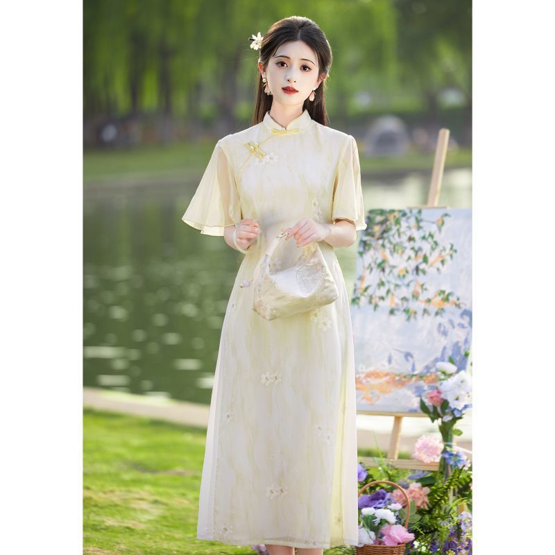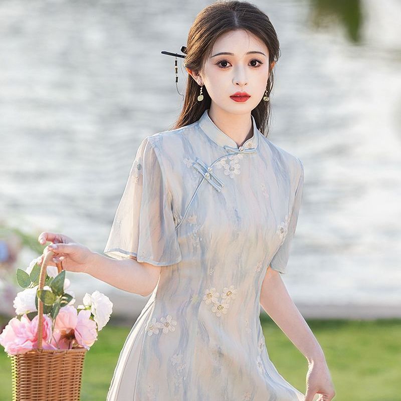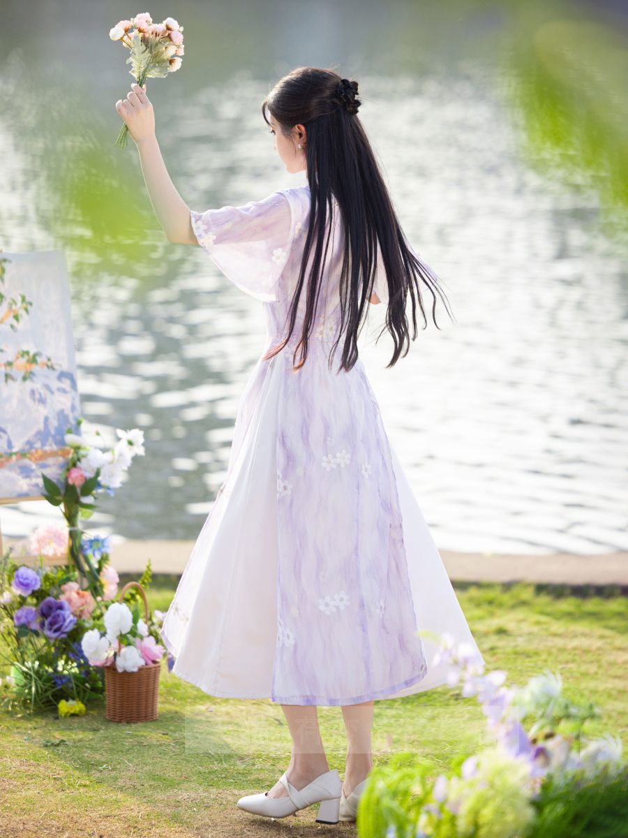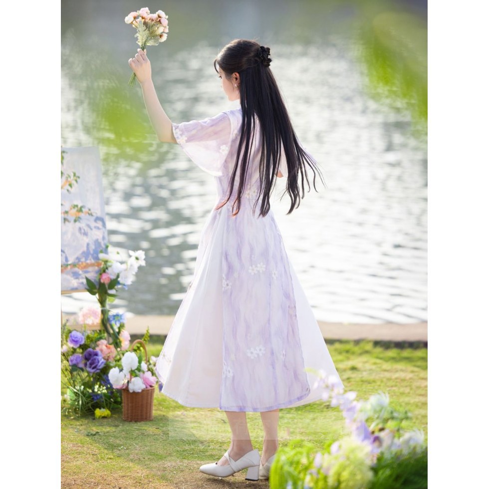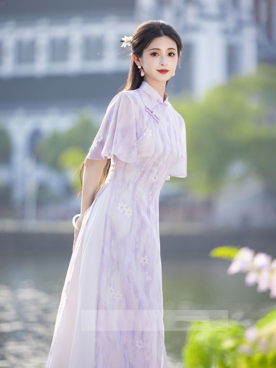 Свежее и элегантное платье Ao Dai Cheongsam 2025, новое летнее лавандовое улучшенное молодежное женское китайское платье