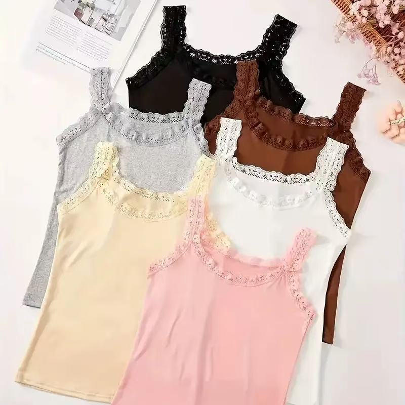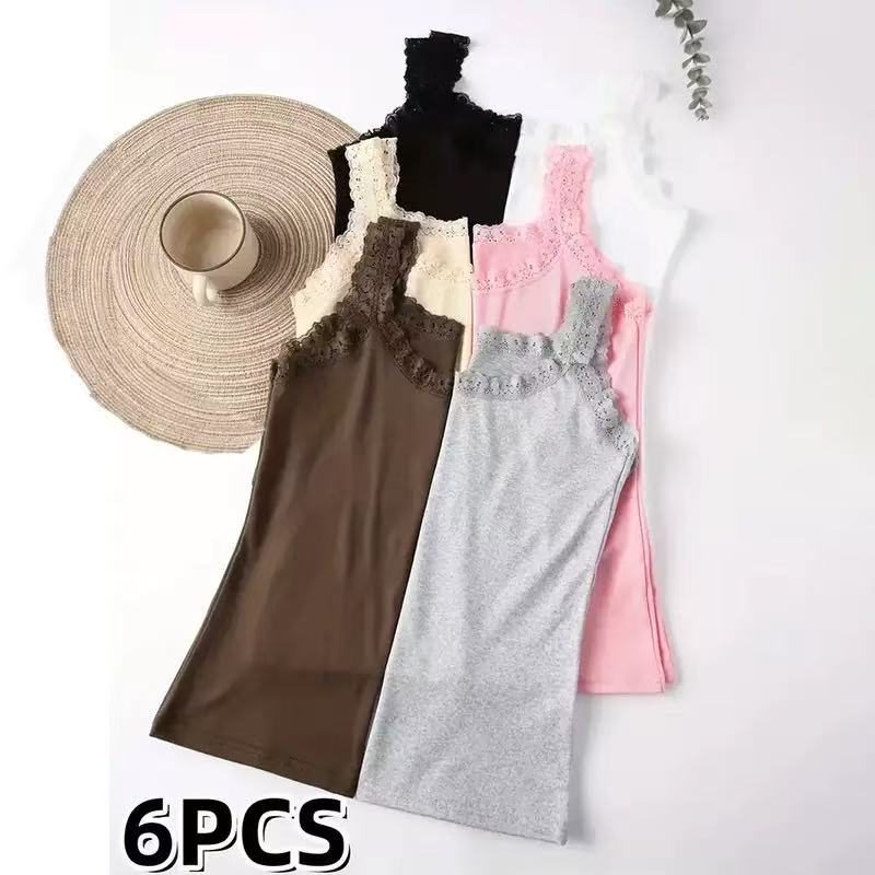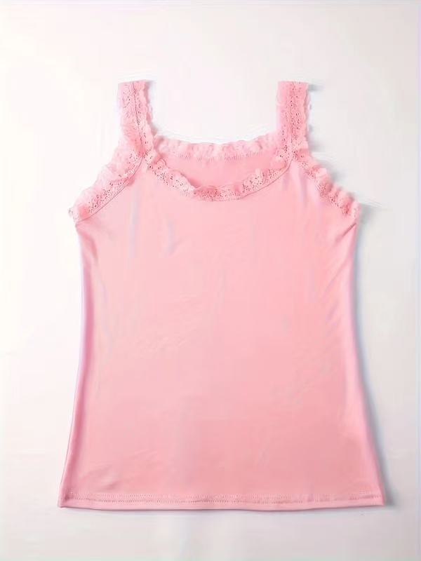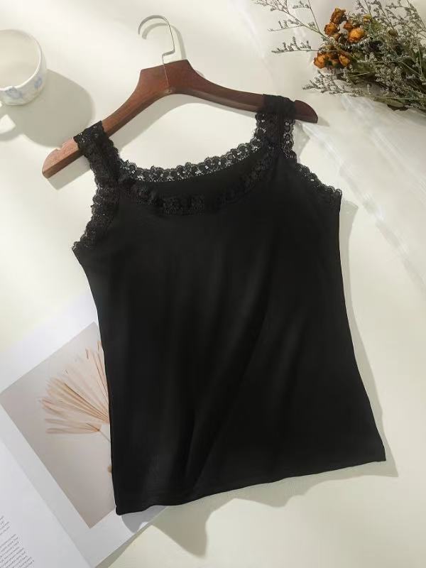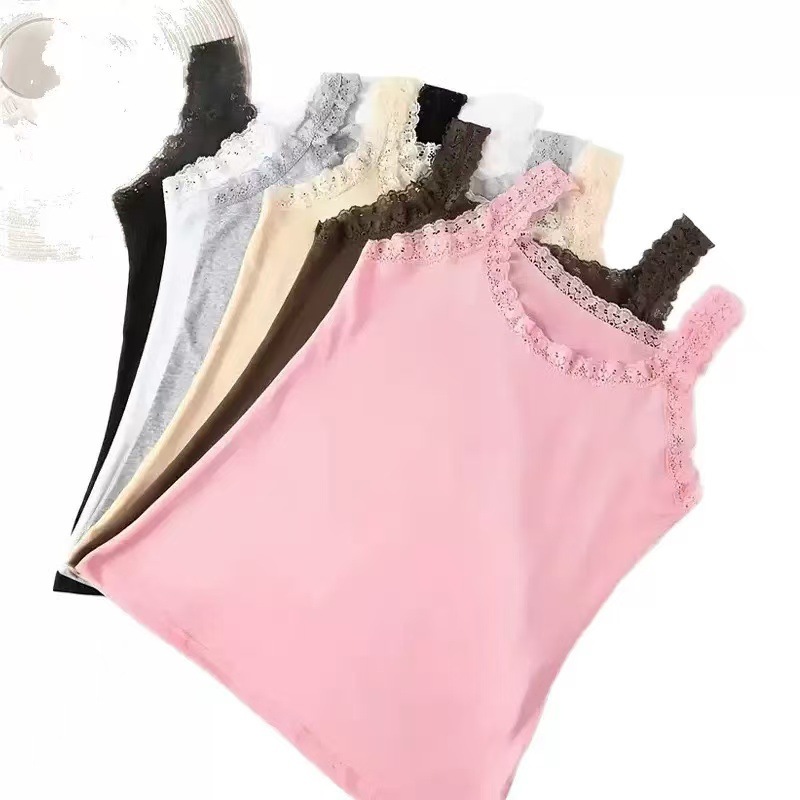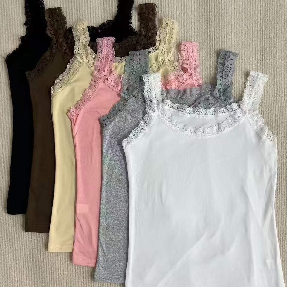 Европейская и американская трансграничная кружевная майка больших размеров, женская верхняя одежда, облегающая базовая рубашка, топ без рукавов, нижнее белье из источника TEMU