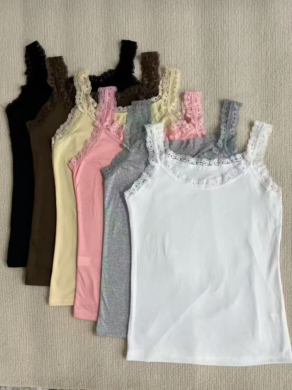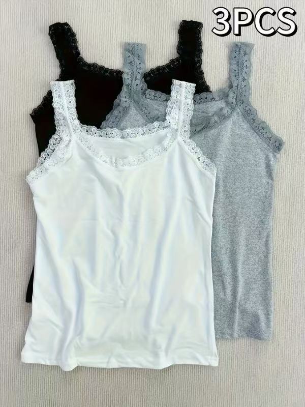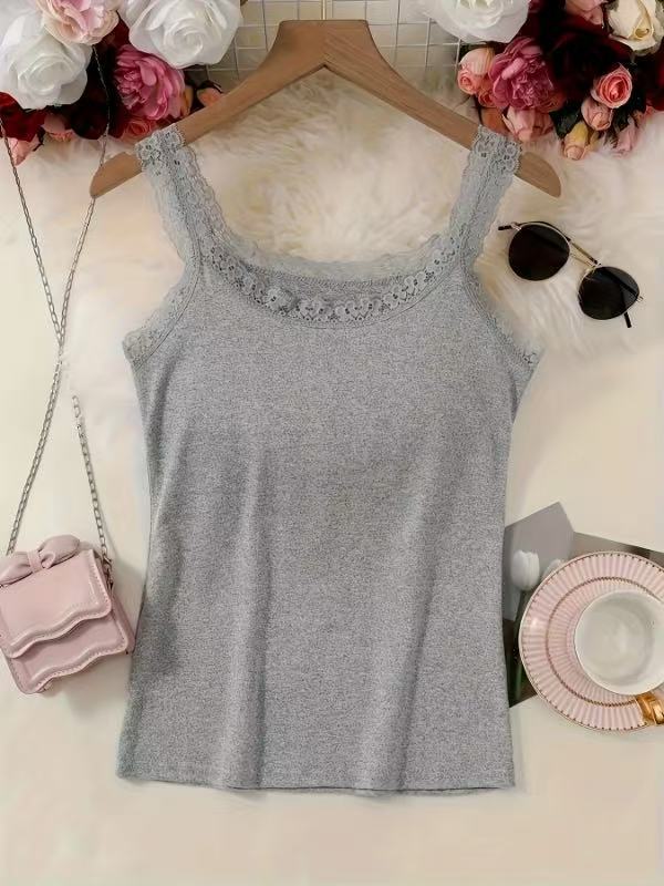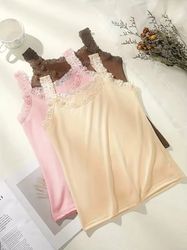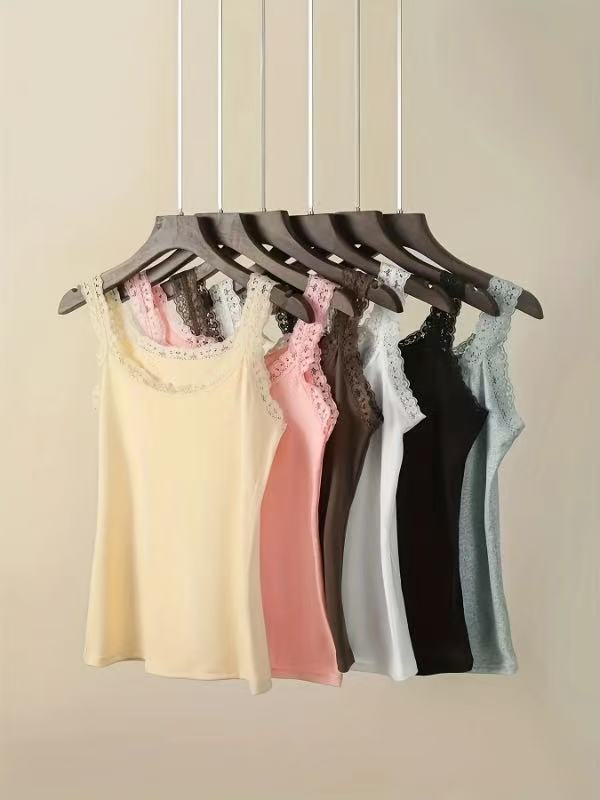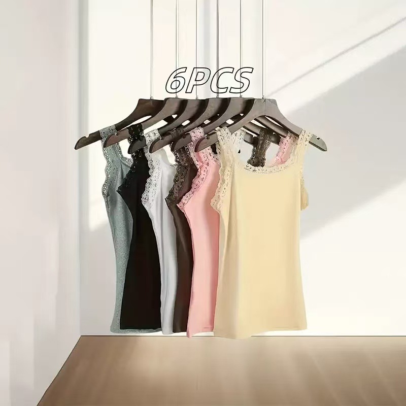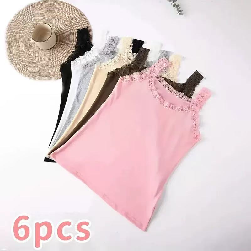 Европейская и американская трансграничная кружевная майка больших размеров, женская верхняя одежда, облегающая базовая рубашка, топ без рукавов, нижнее белье из источника TEMU