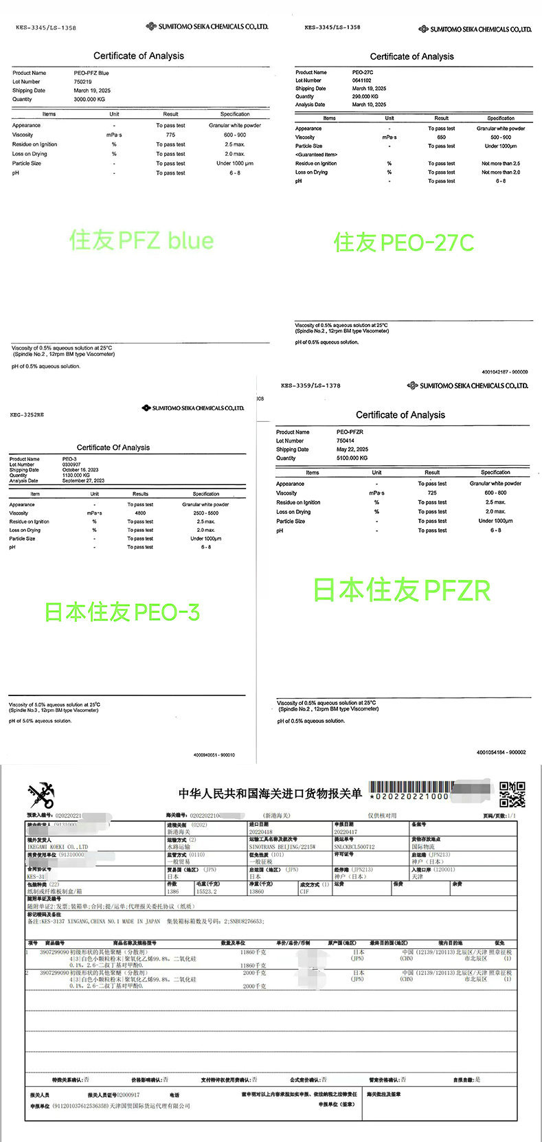 Япония импортировала высокомолекулярный полиэтилен Sumitomo PEO.
