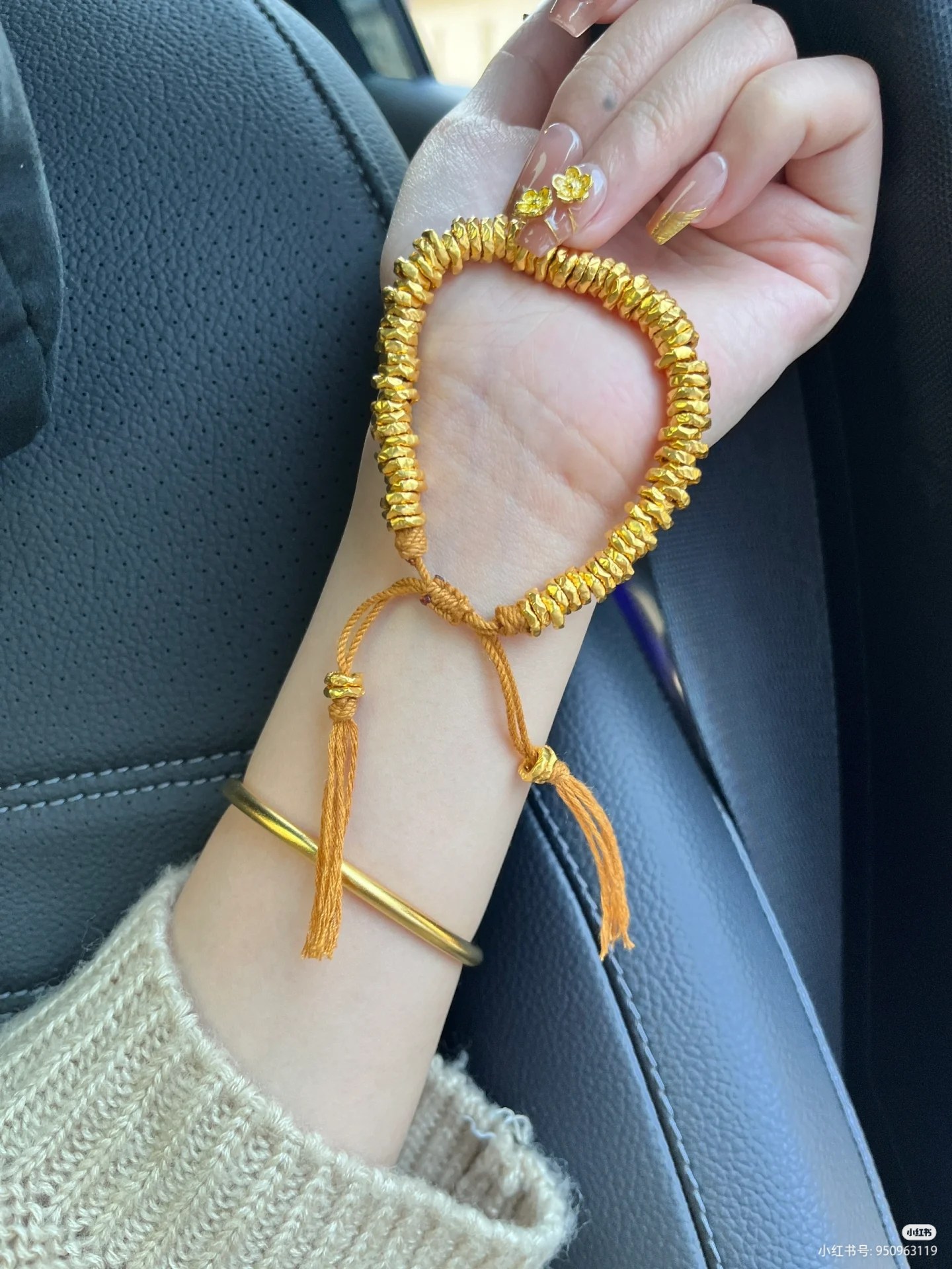 Золотые плетеные свободные бусины 3D из твердого золота, чистое золото 999 пробы, плетеные золотые бусины-разделители, браслетные бусины, золотые плетеные аксессуары, разделительное кольцо