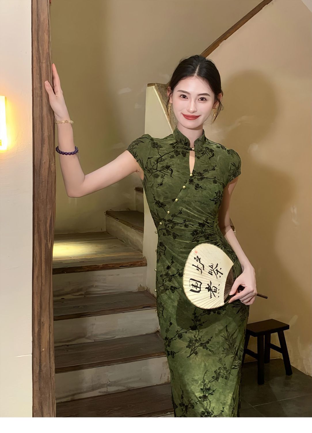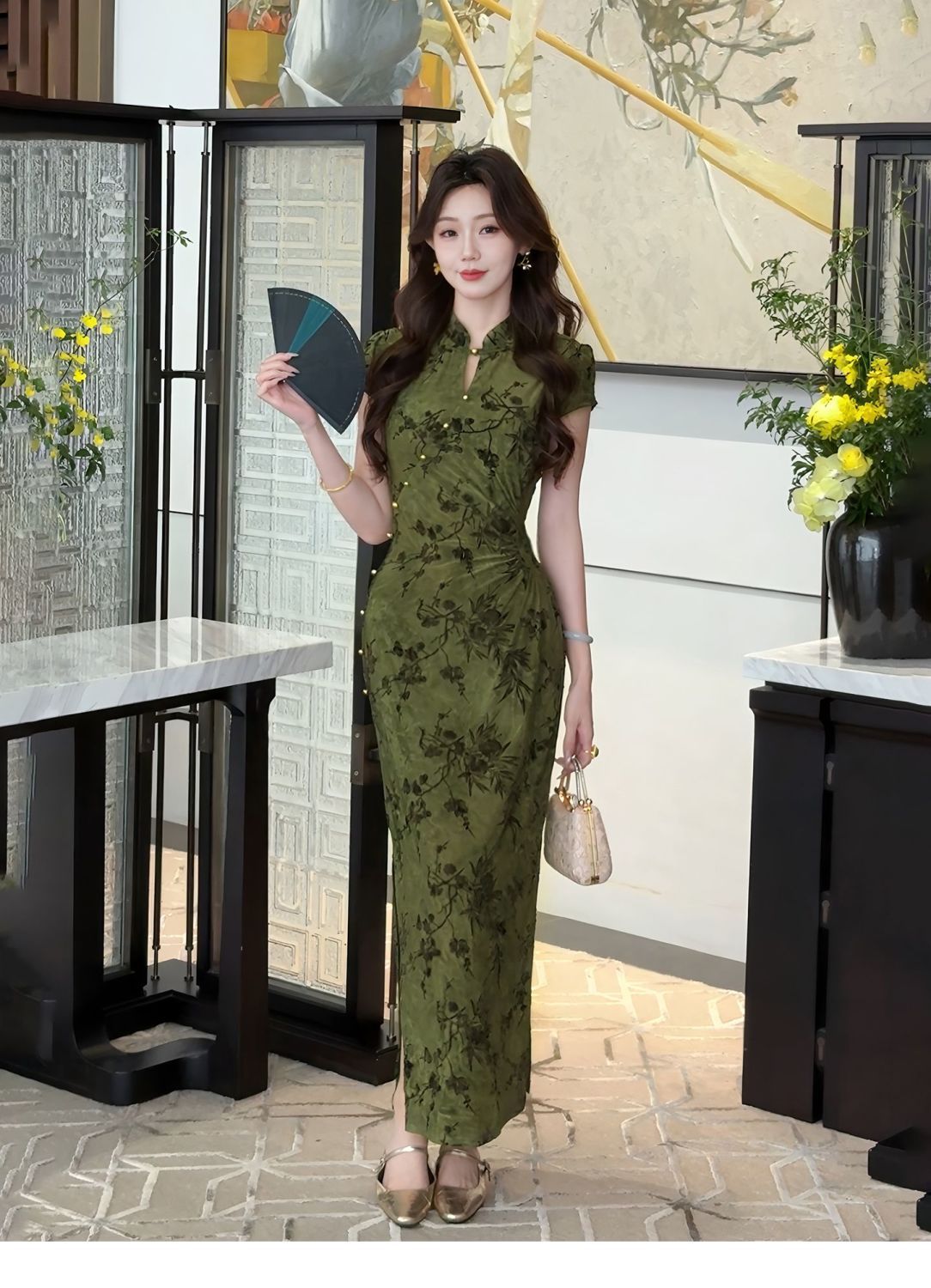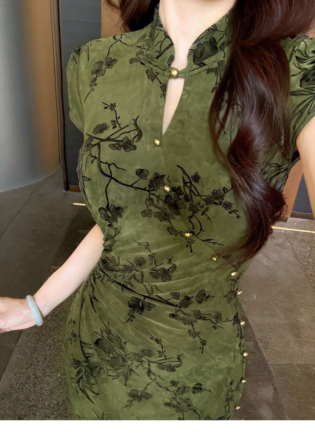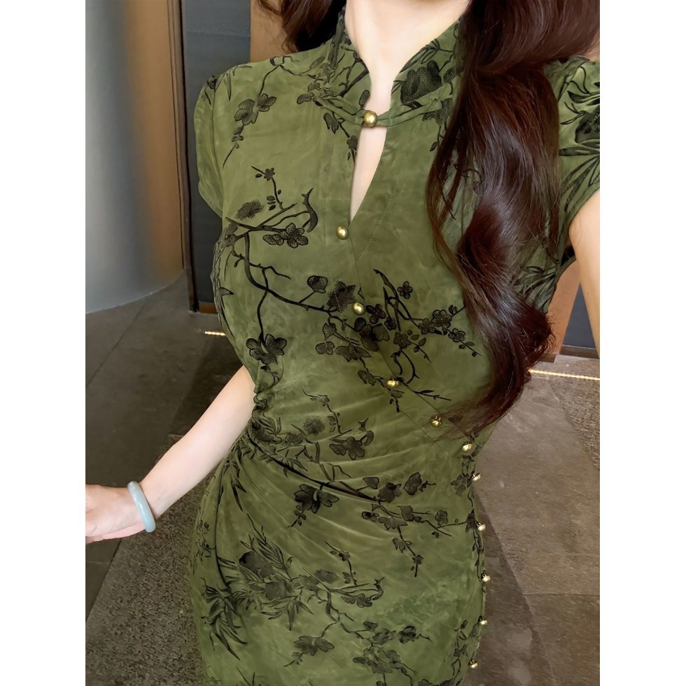 Новое китайское платье с вышивкой и воротником чонсам, улучшенное женское платье чонсам, весна-лето 2025, новый стиль, платье с вырезом на талии, утягивающее платье