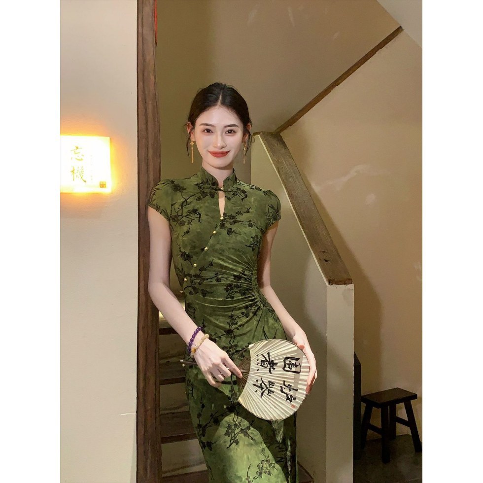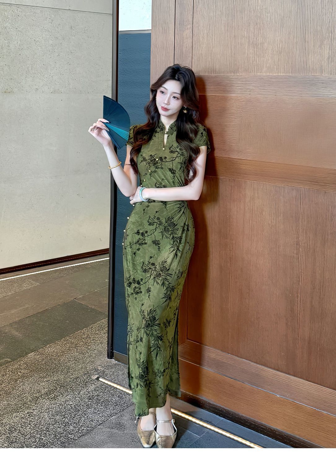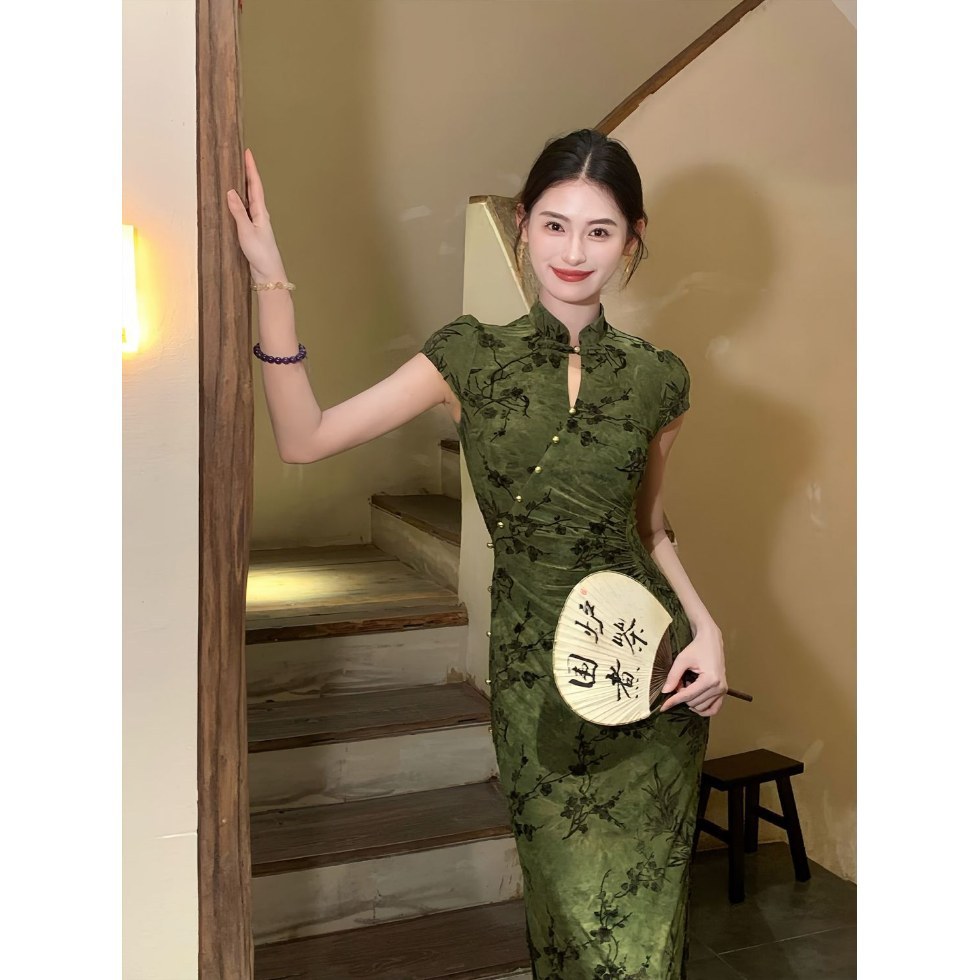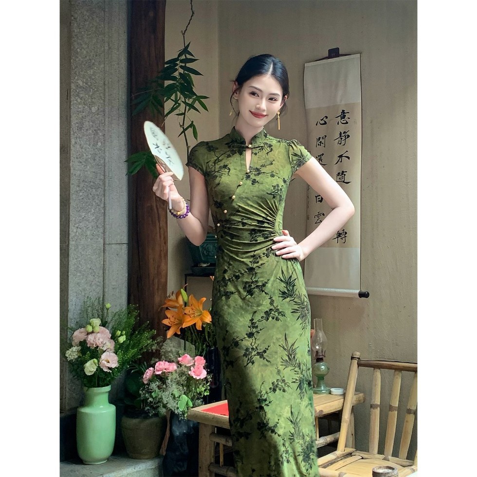 Новое китайское платье с вышивкой и воротником чонсам, улучшенное женское платье чонсам, весна-лето 2025, новый стиль, платье с вырезом на талии, утягивающее платье
