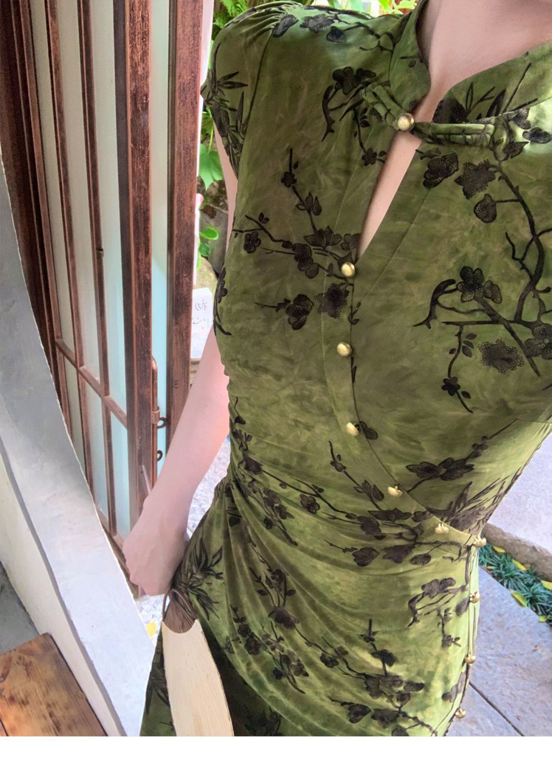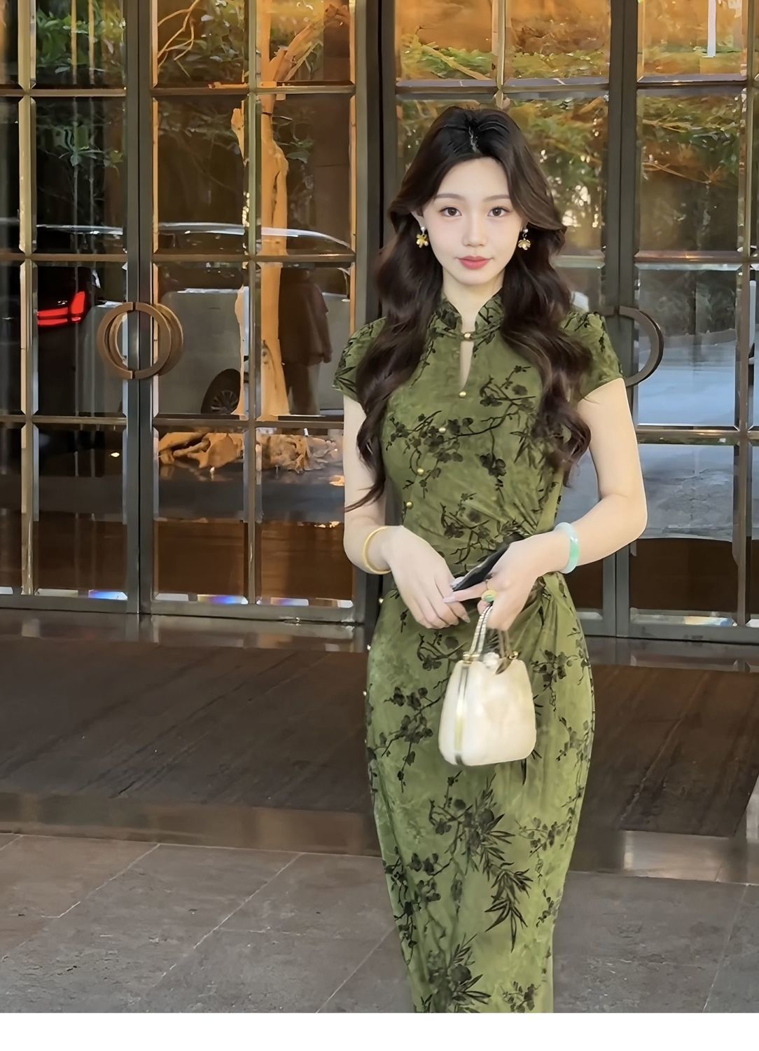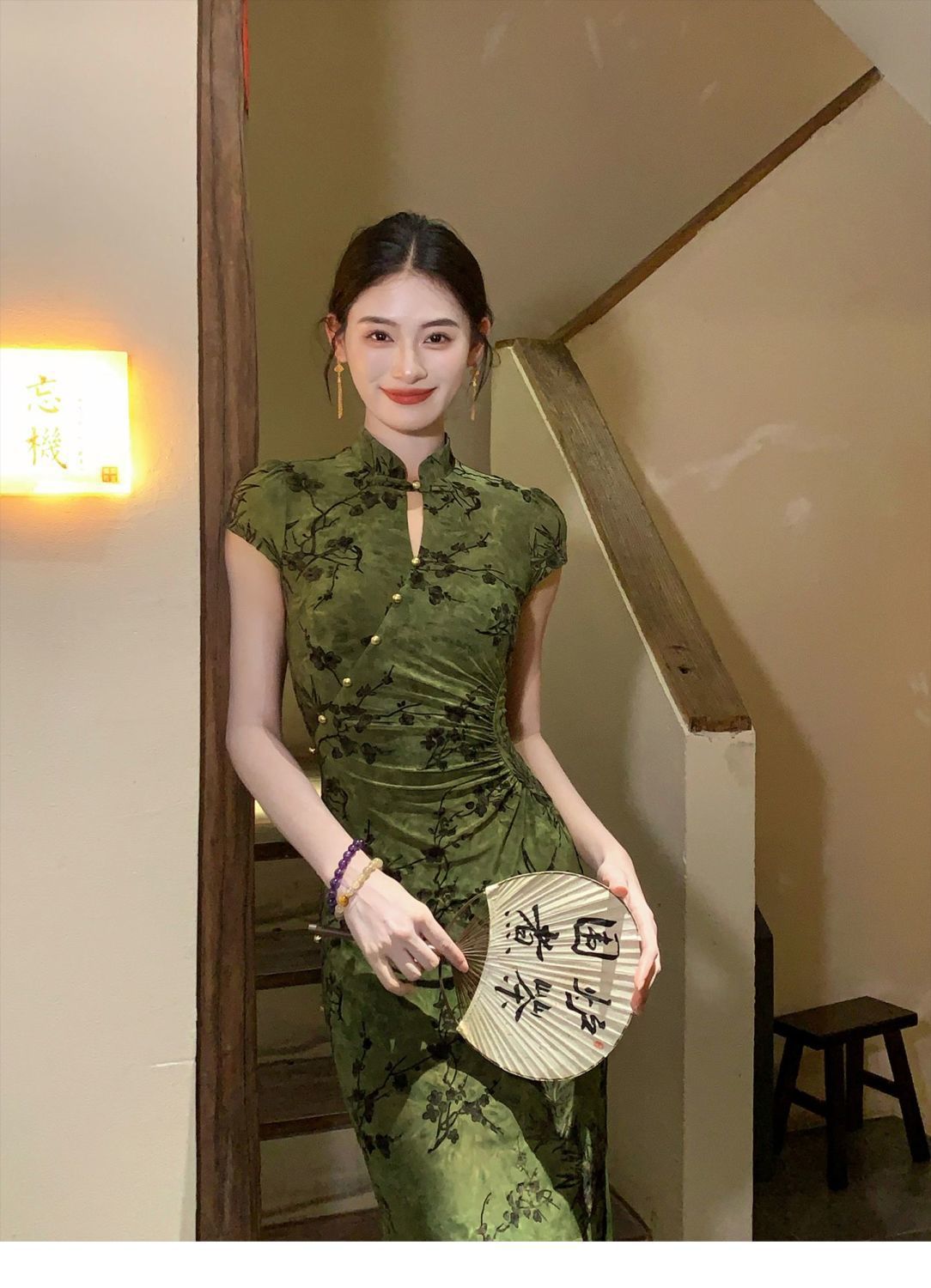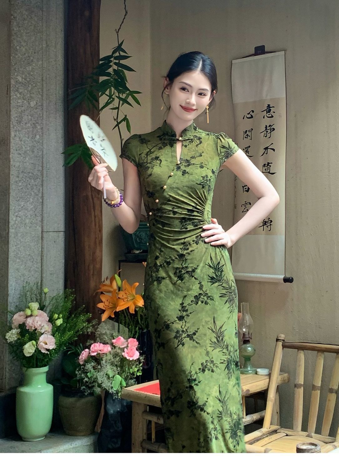 Новое китайское платье с вышивкой и воротником чонсам, улучшенное женское платье чонсам, весна-лето 2025, новый стиль, платье с вырезом на талии, утягивающее платье