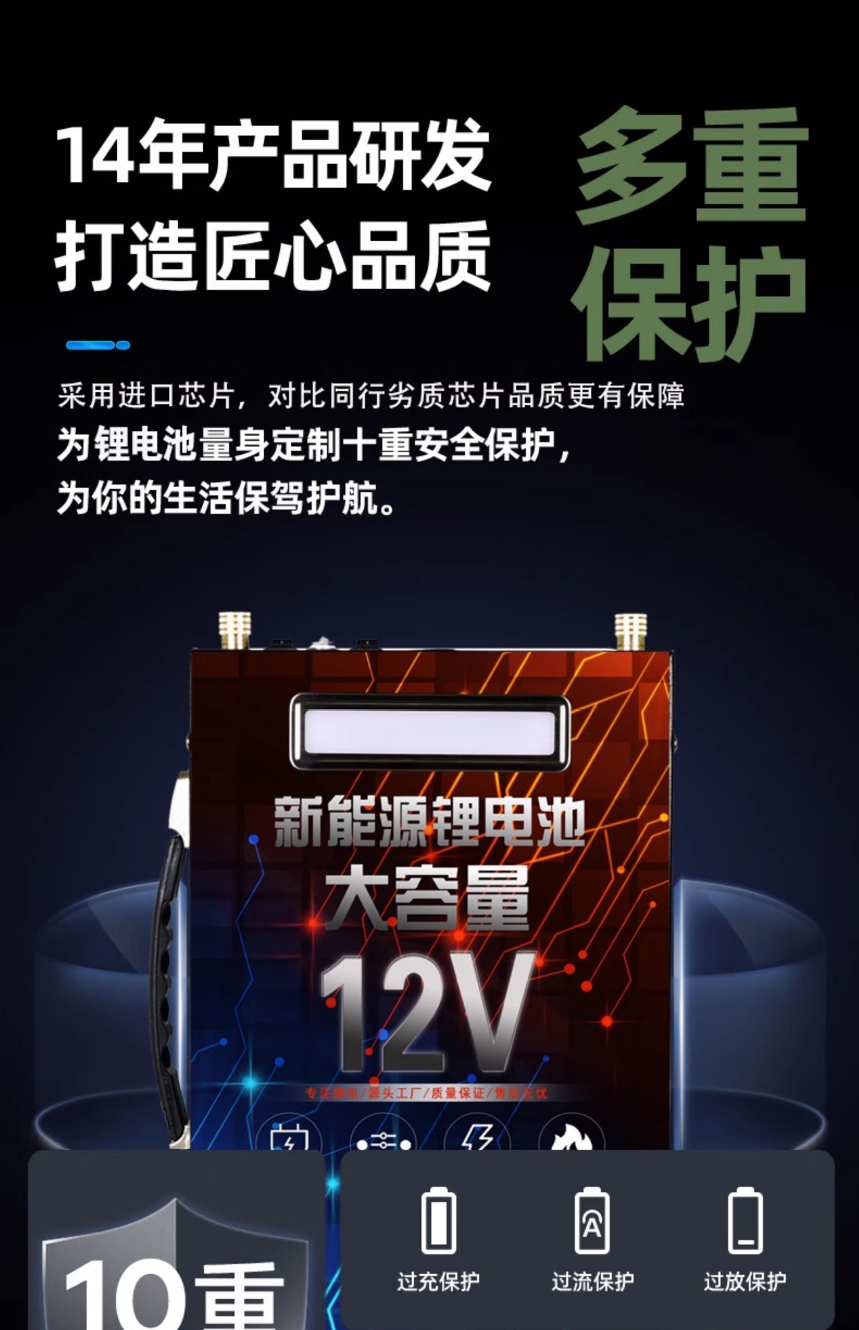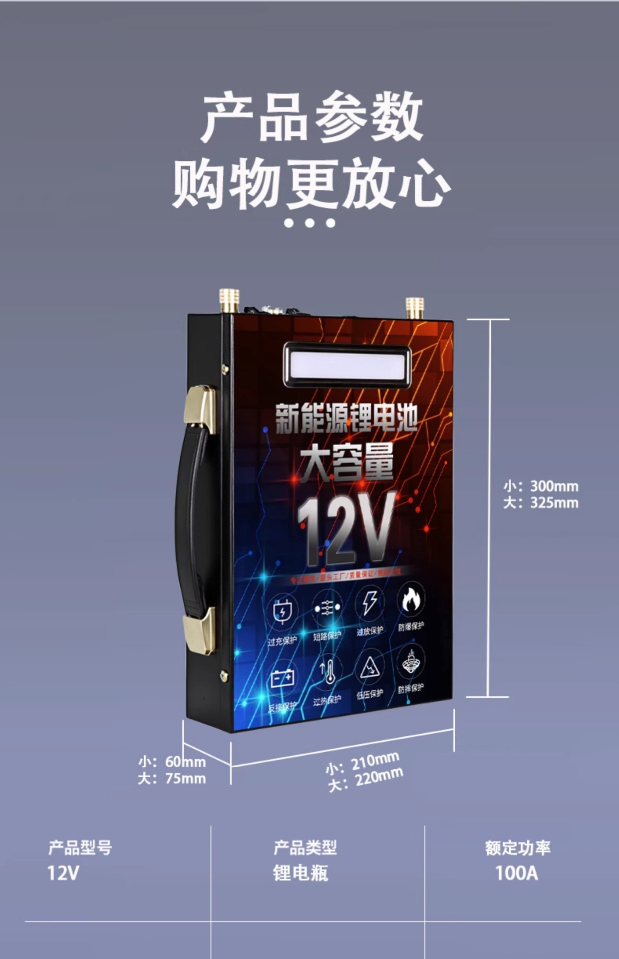 Литиевая батарея 12 В большой емкости, высокая мощность, 100 ампер, сверхлегкая уличная тринадцатая литий-железо-фосфатная батарея с тяговым двигателем