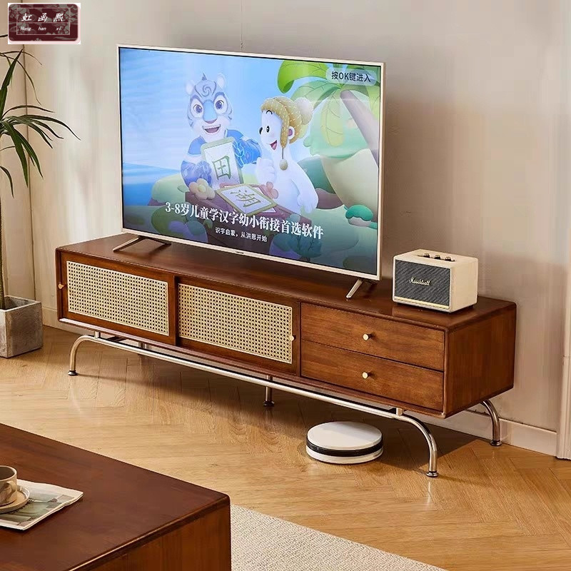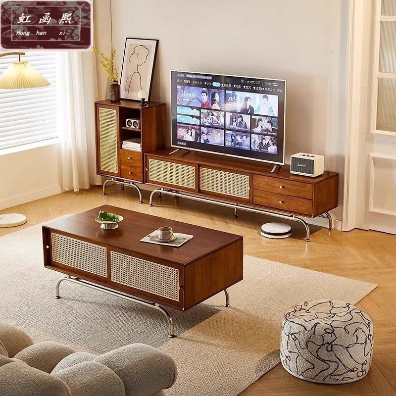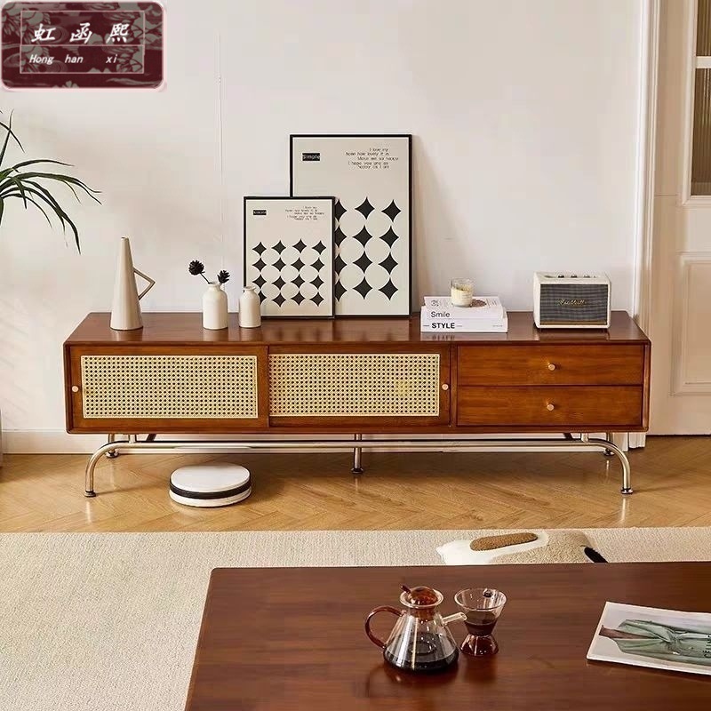 Скандинавский шкаф для телевизора из цельного дерева, журнальный столик, комбинированный домашний маленький шкаф для хранения в стиле ретро из ротанга для гостиной