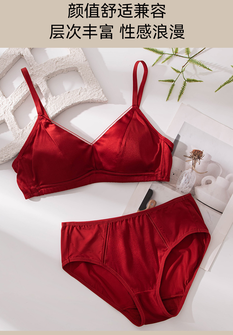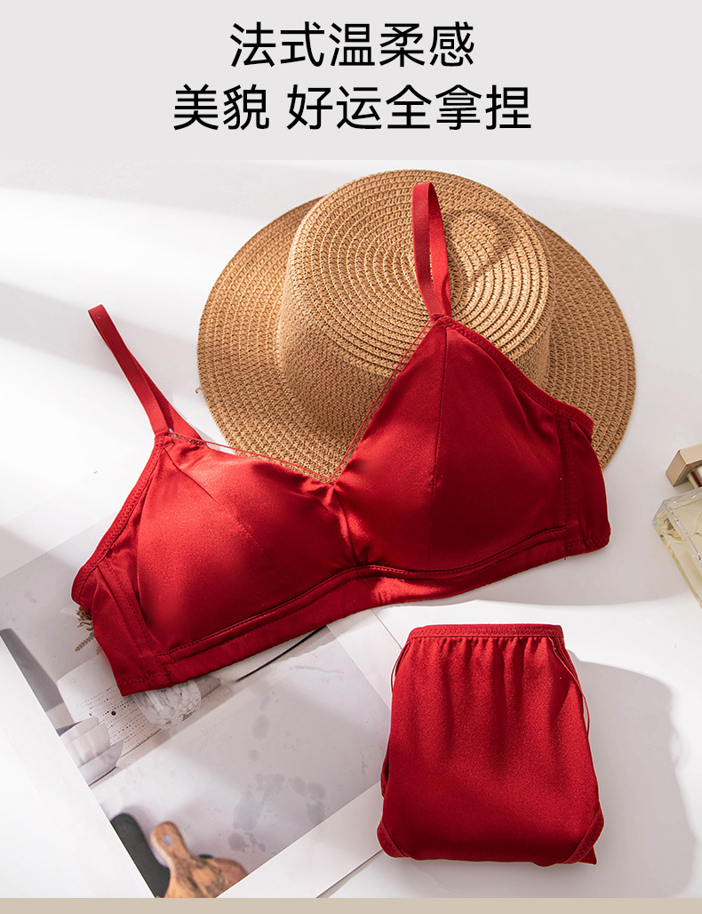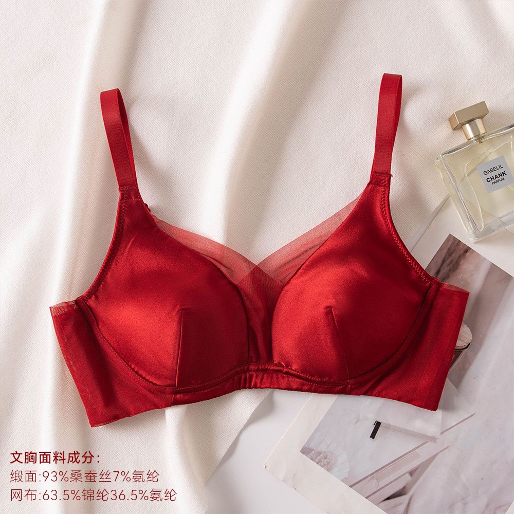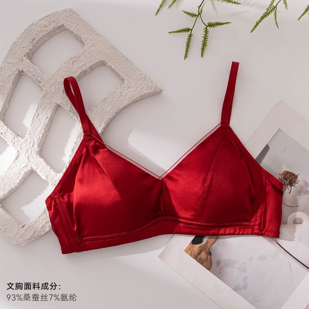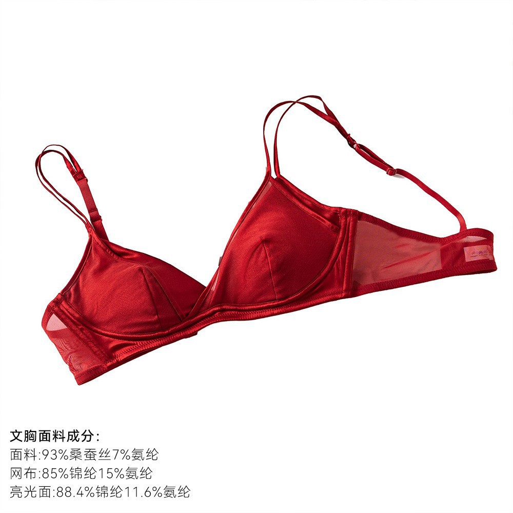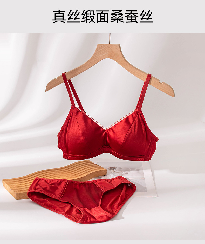 Новый стильный комплект женского белья из красного шелка, тонкий, сексуальный бюстгальтер из тутового шелка для свадебных невест.