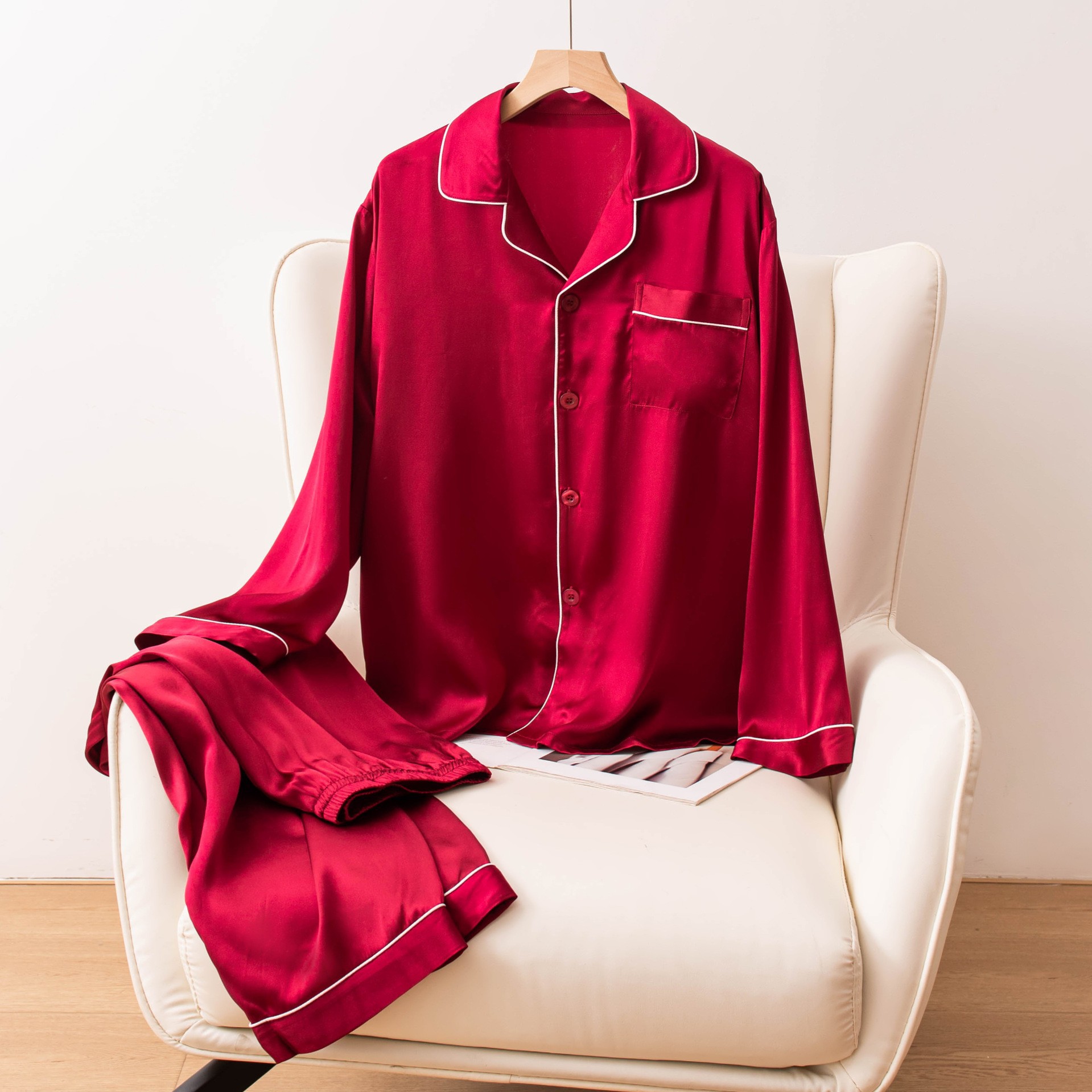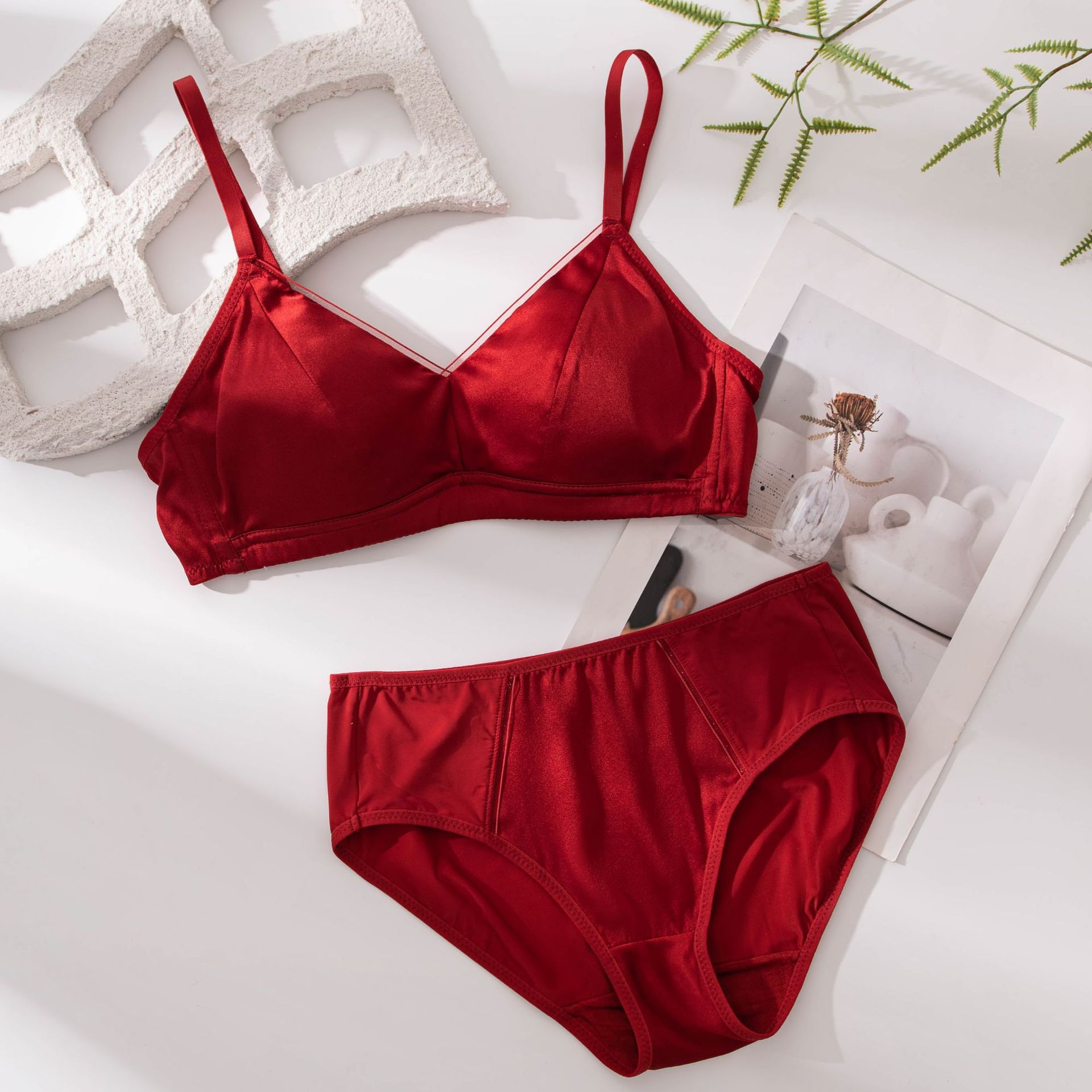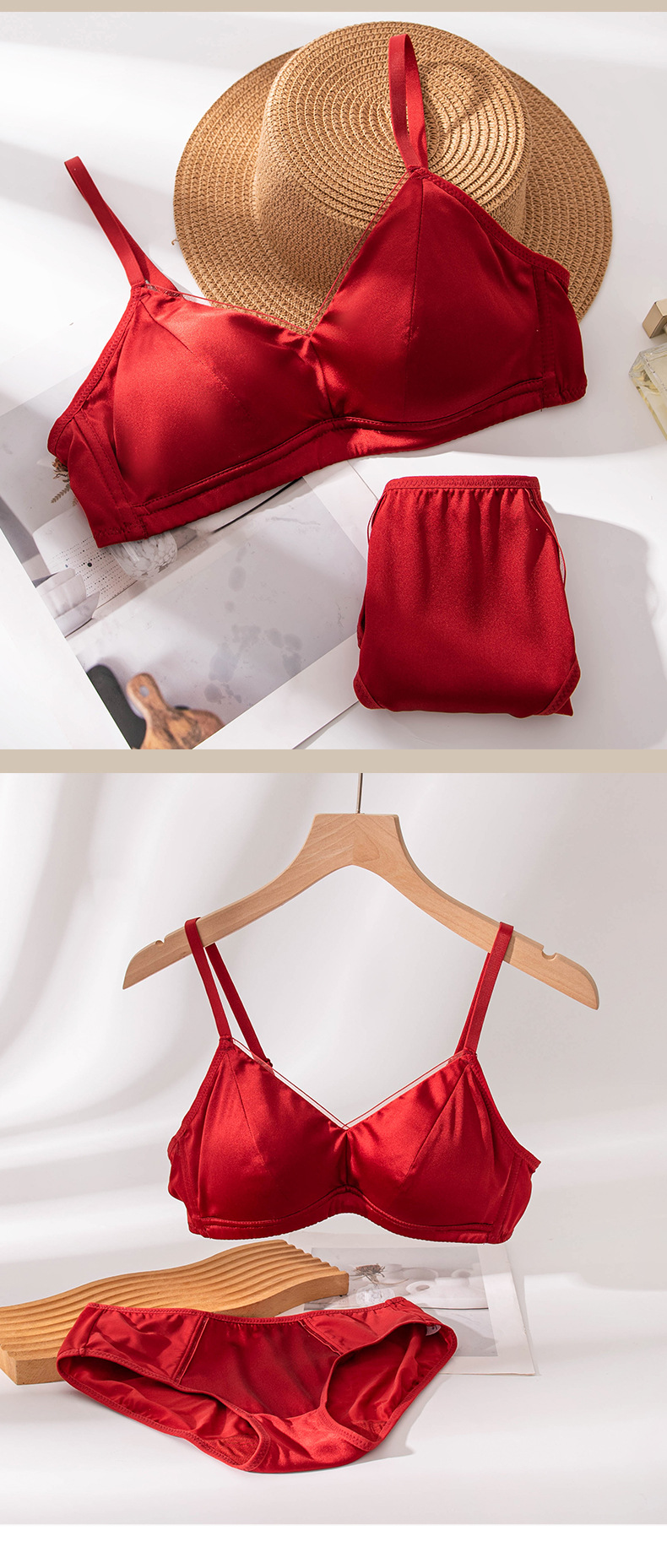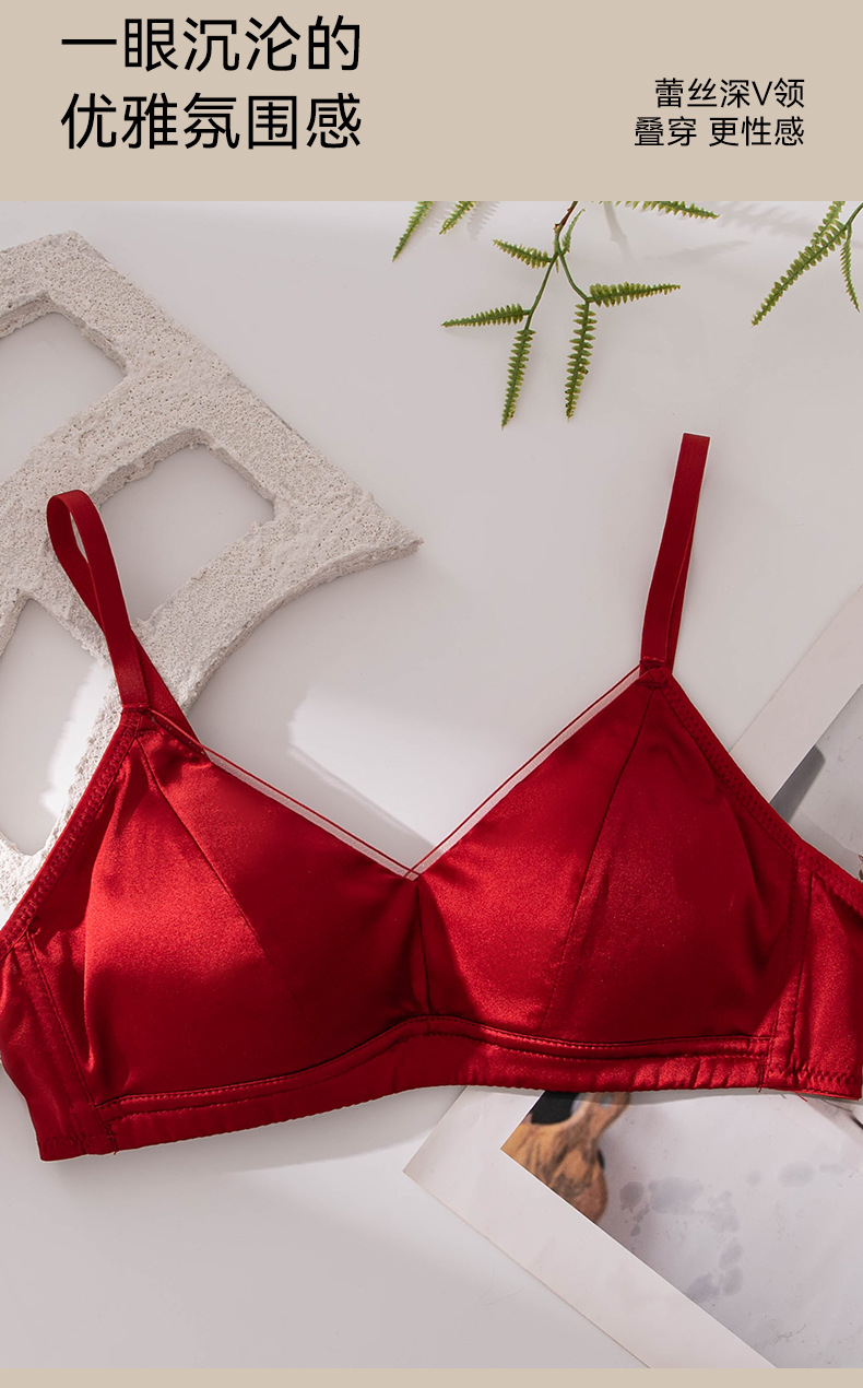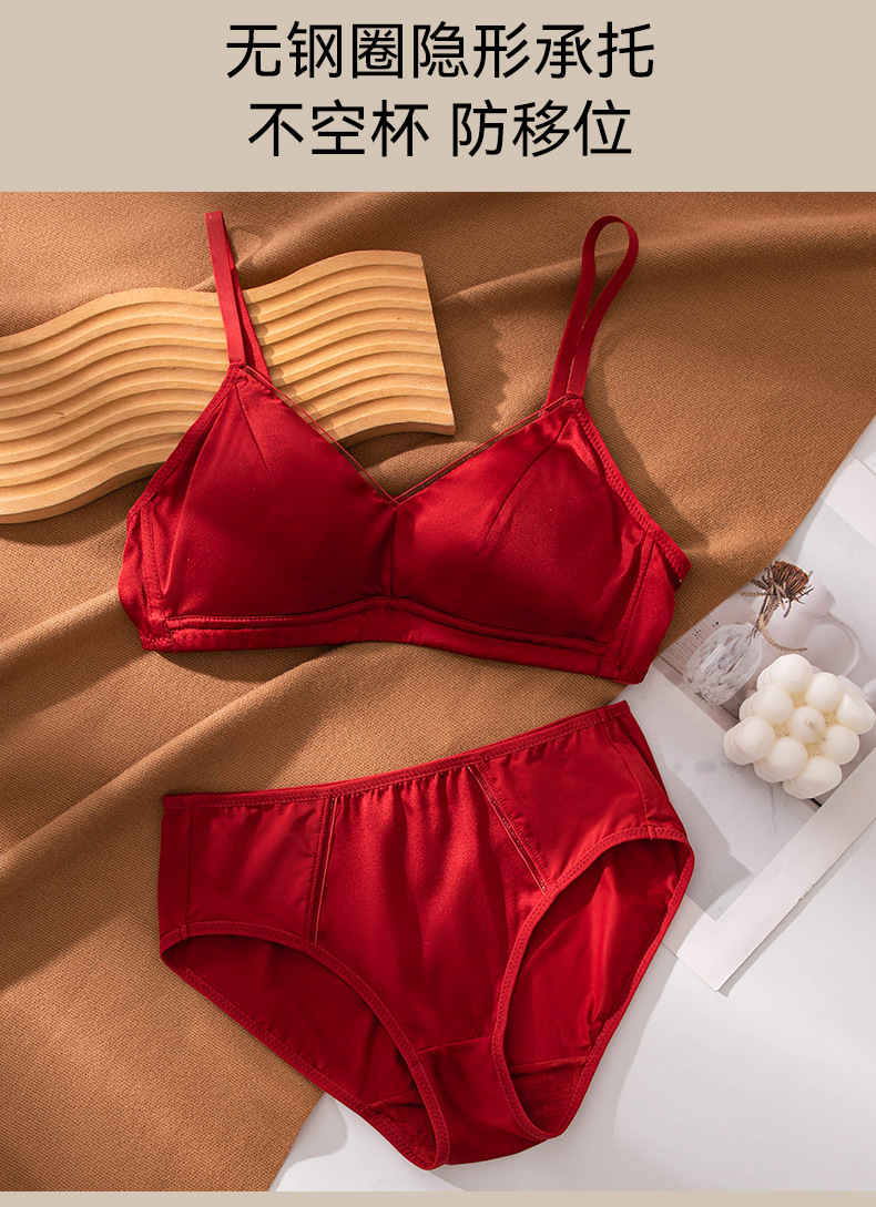 Новый стильный комплект женского белья из красного шелка, тонкий, сексуальный бюстгальтер из тутового шелка для свадебных невест.