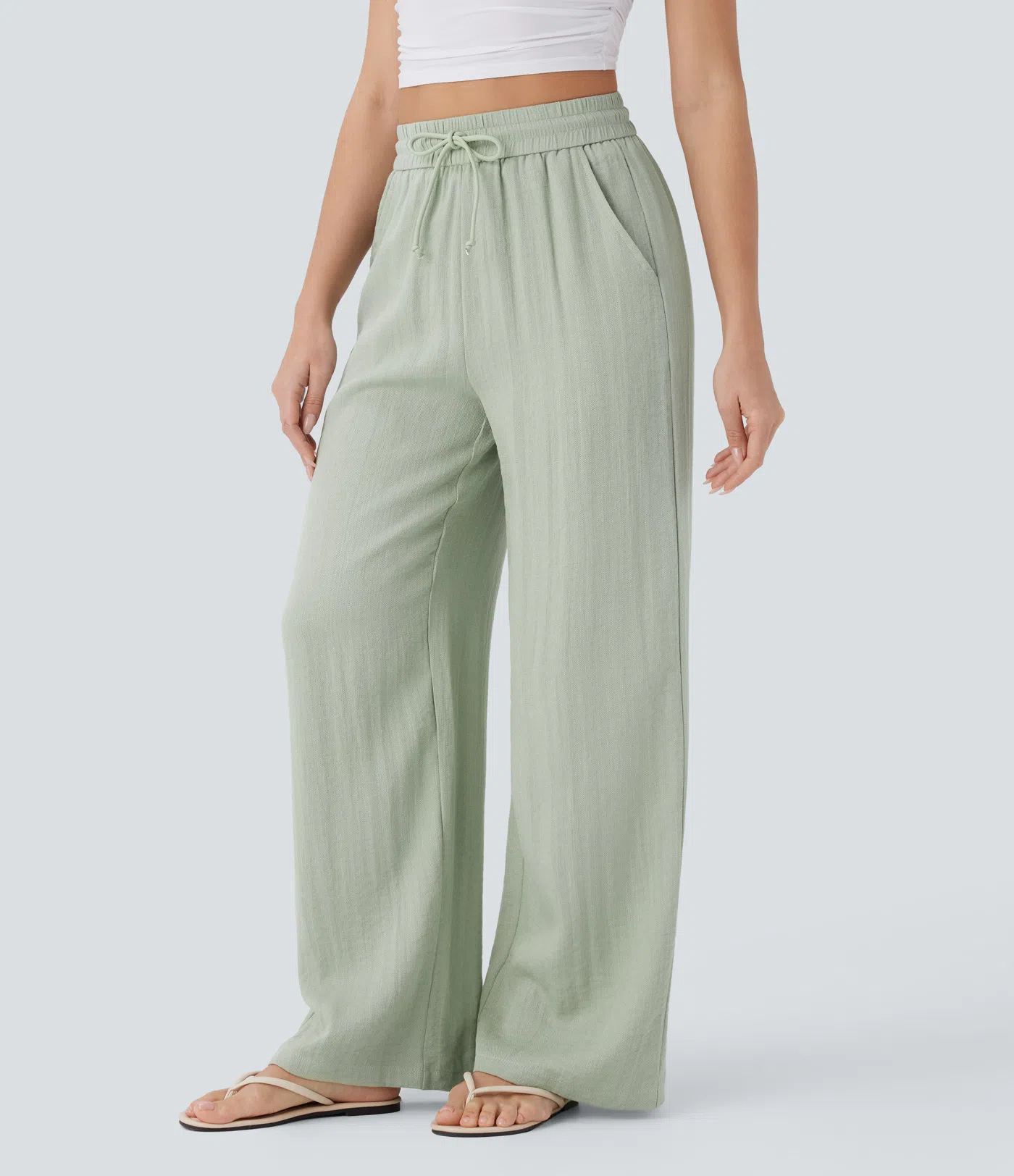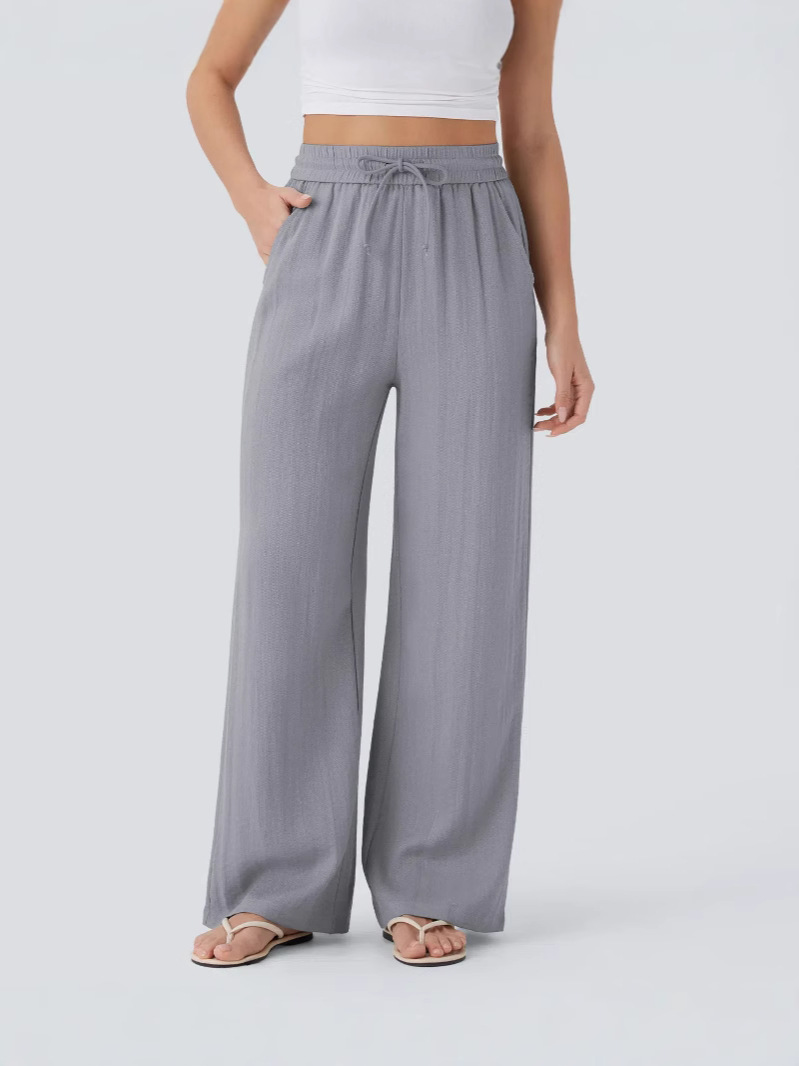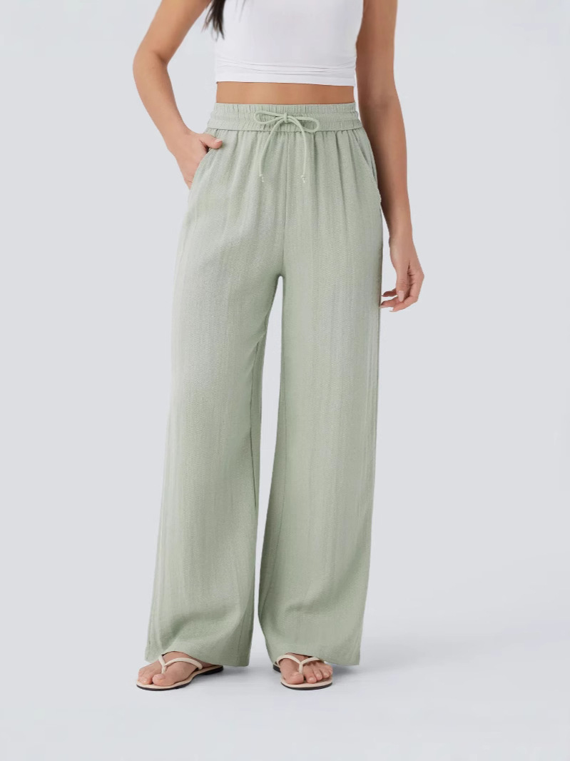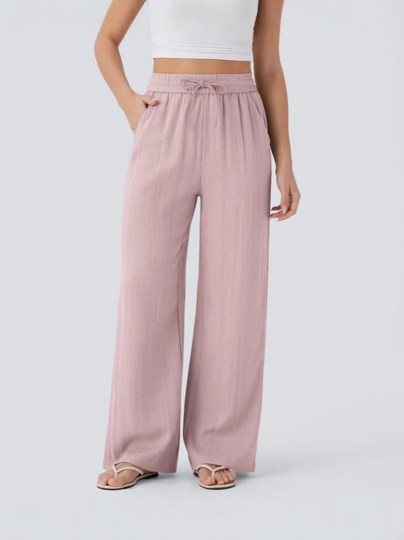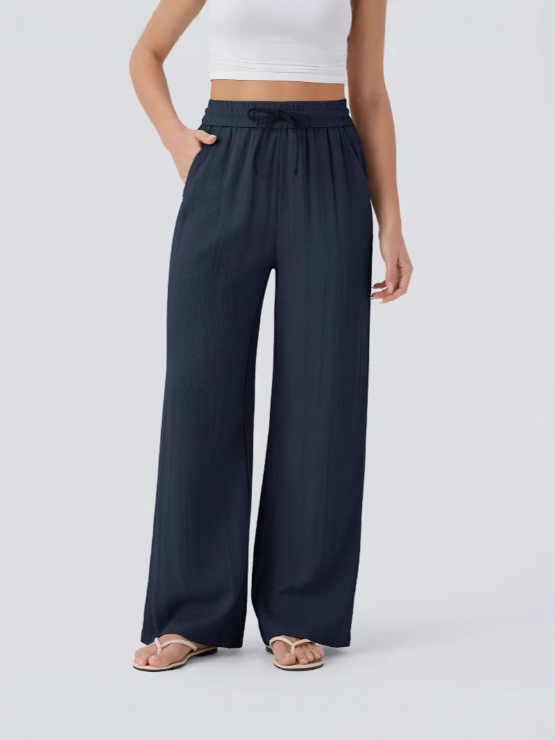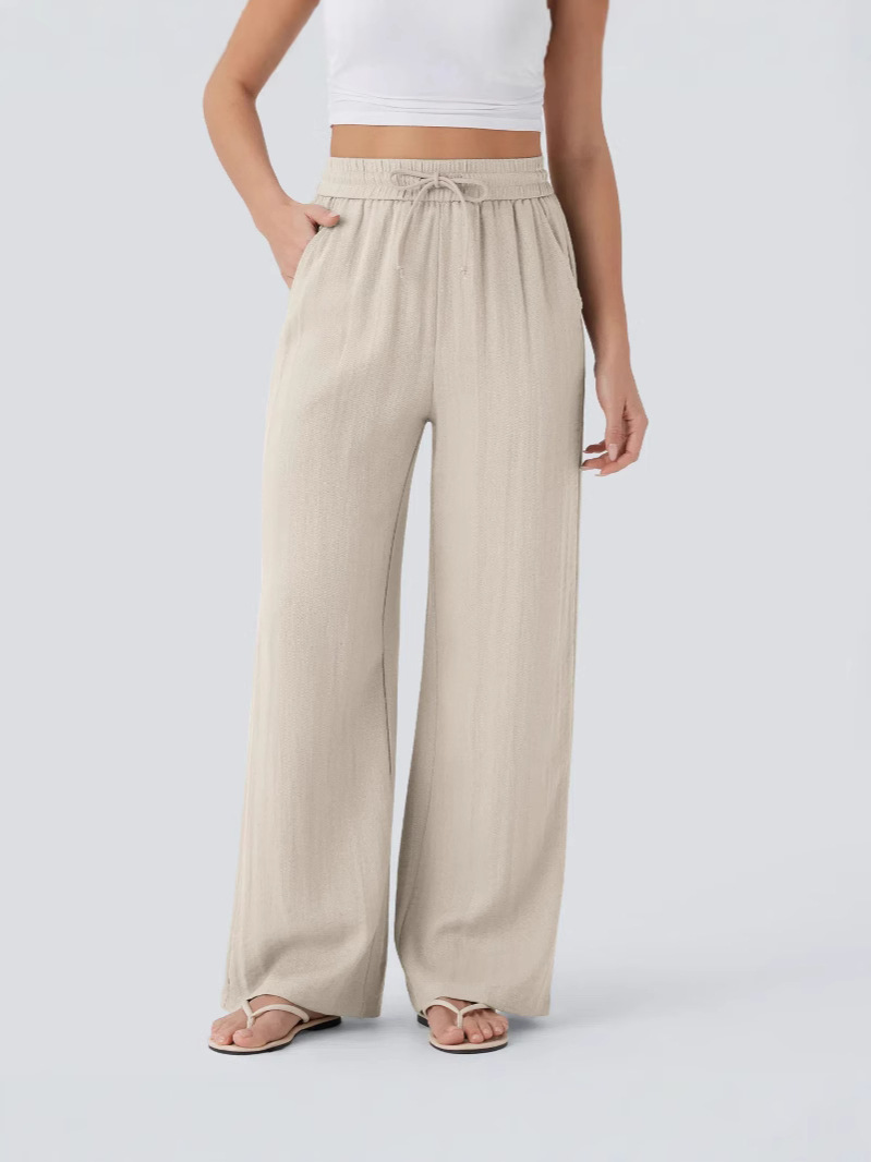 2025 Amazon, повседневные льняные брюки с высокой талией и завязками по бокам, широкие брюки, струящиеся широкие пляжные брюки, эластичные