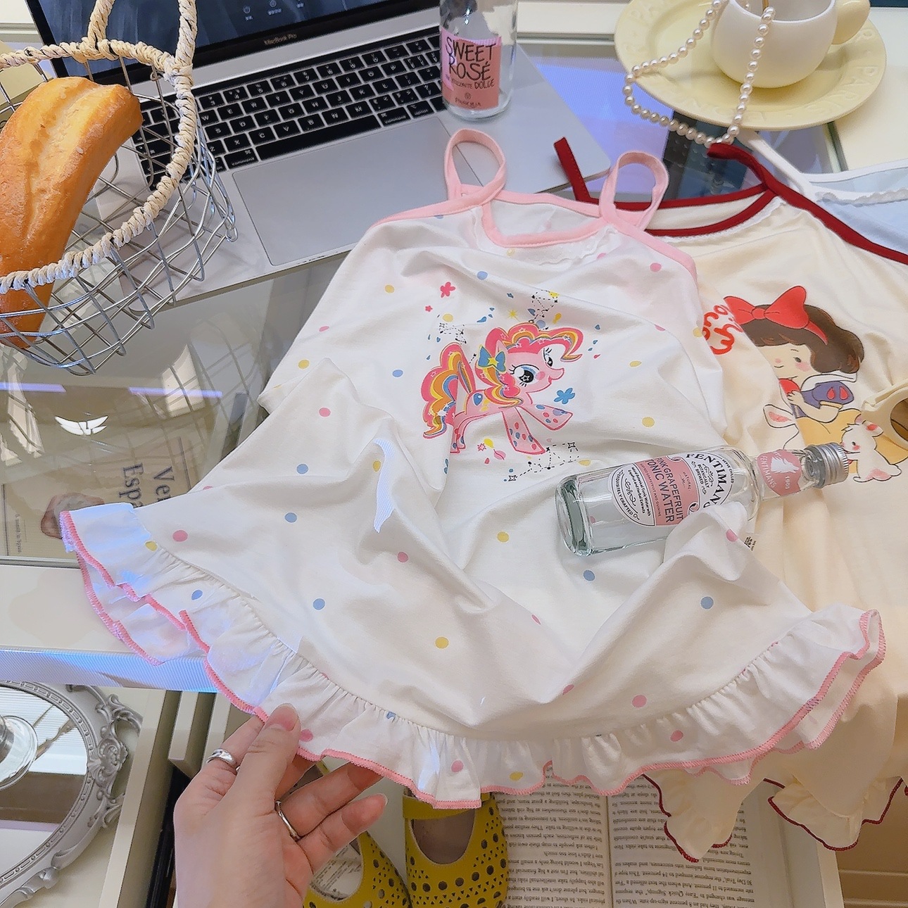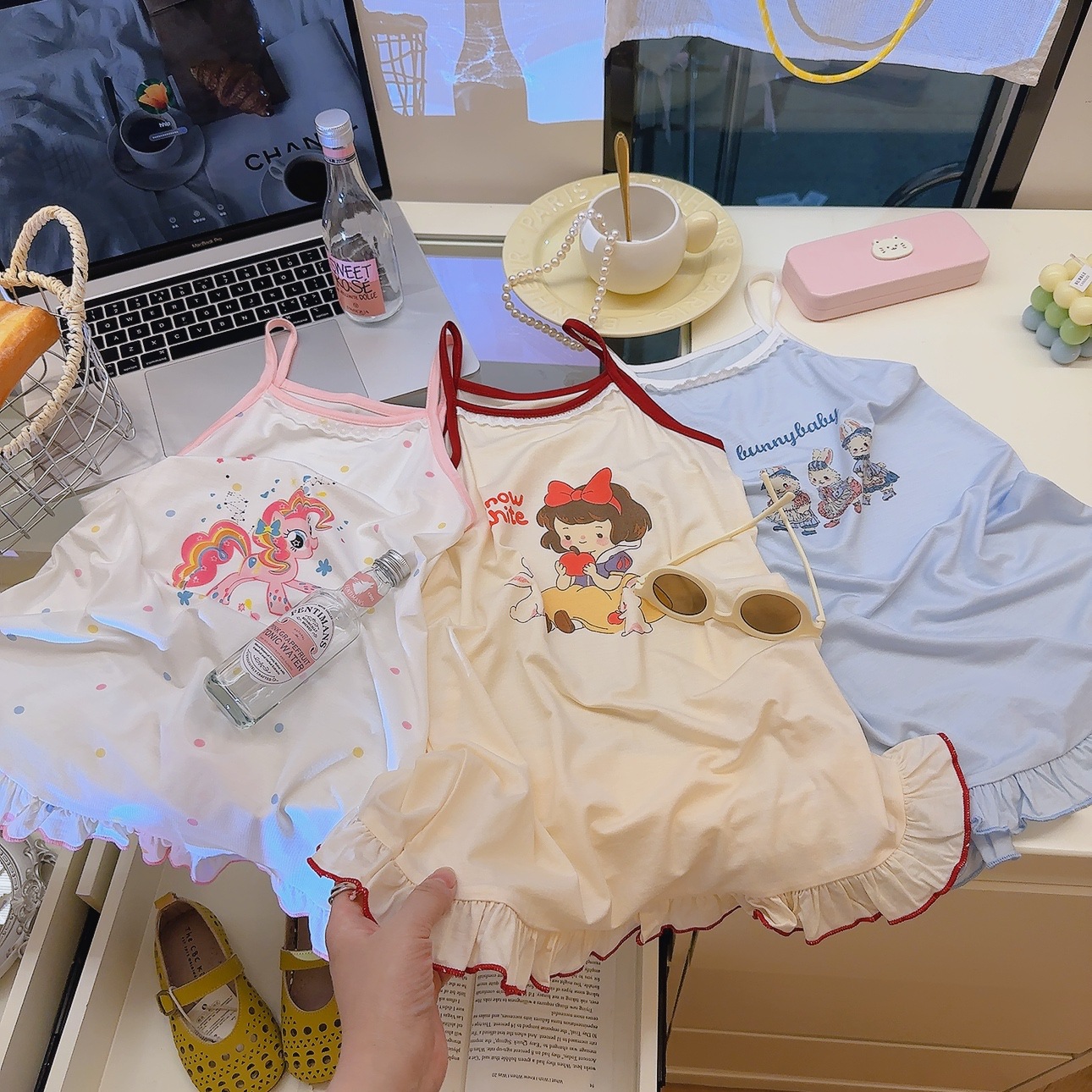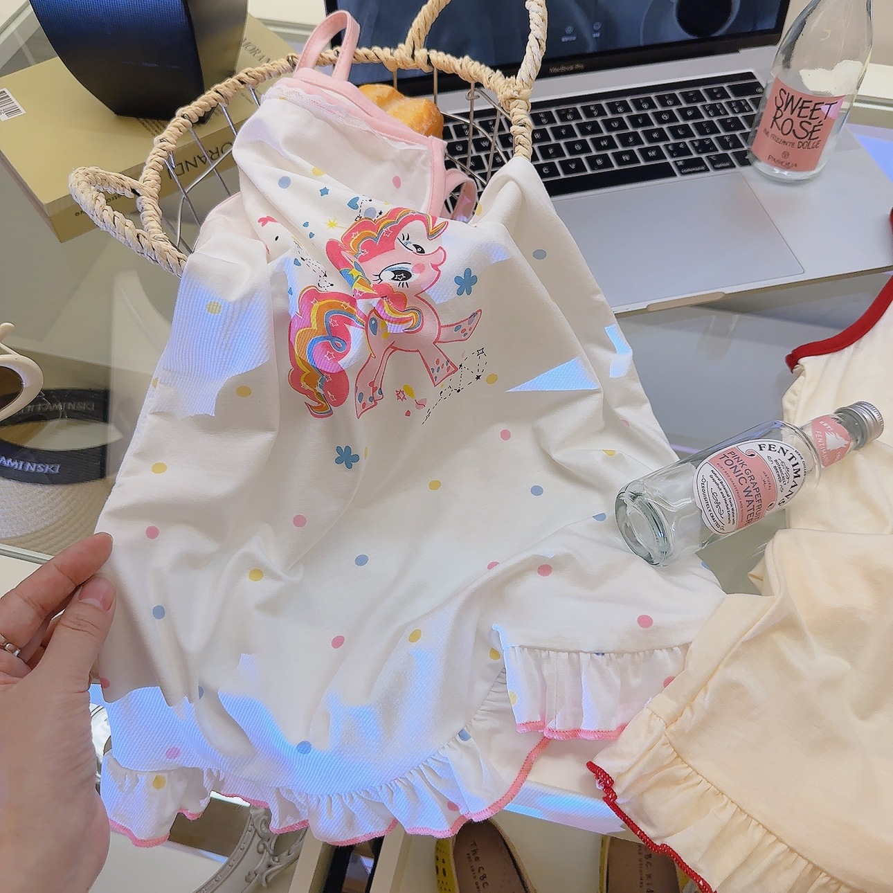 Детская ночная рубашка на подтяжках, детское летнее тонкое платье, средние и большие детские милые пижамы принцессы, домашнее платье для маленькой девочки