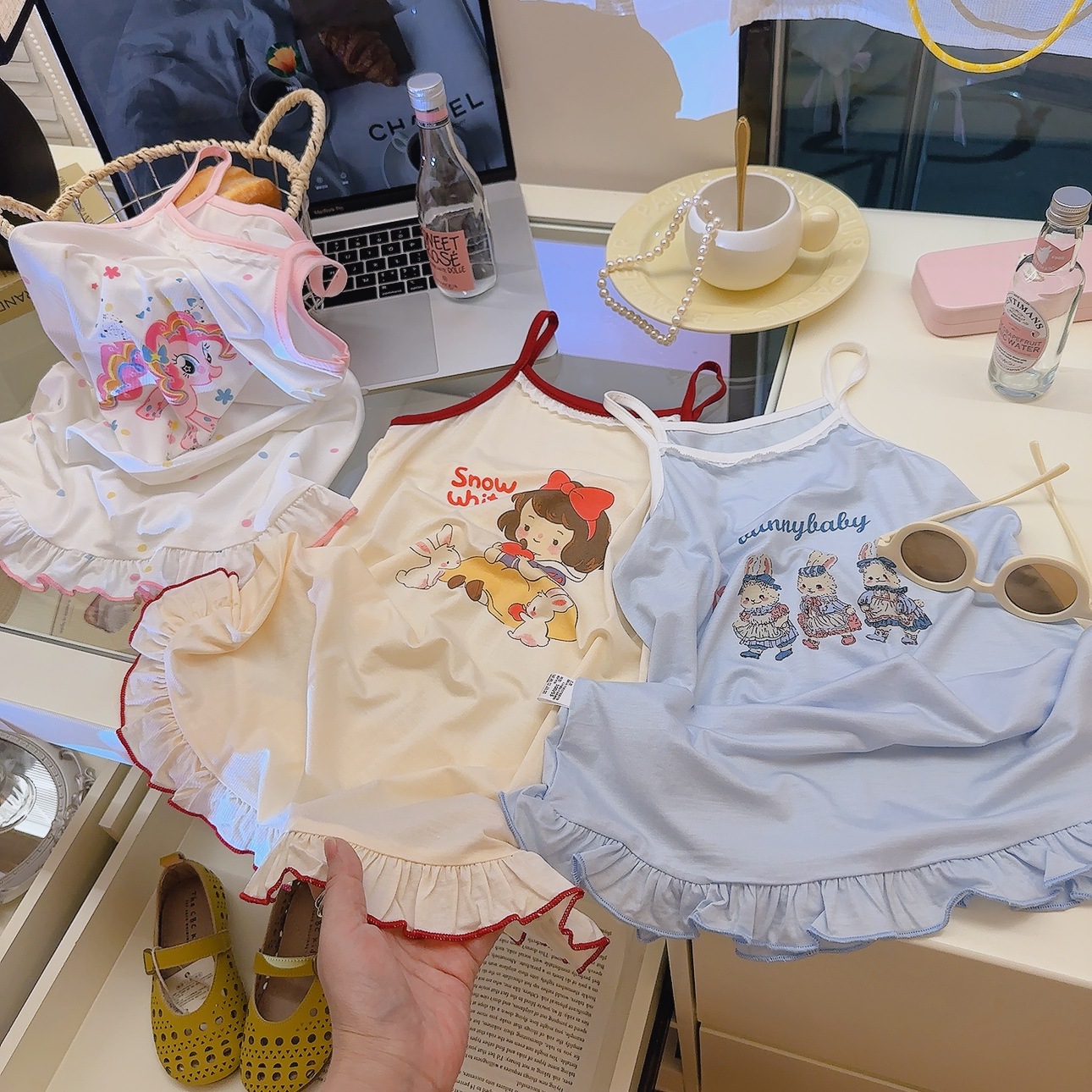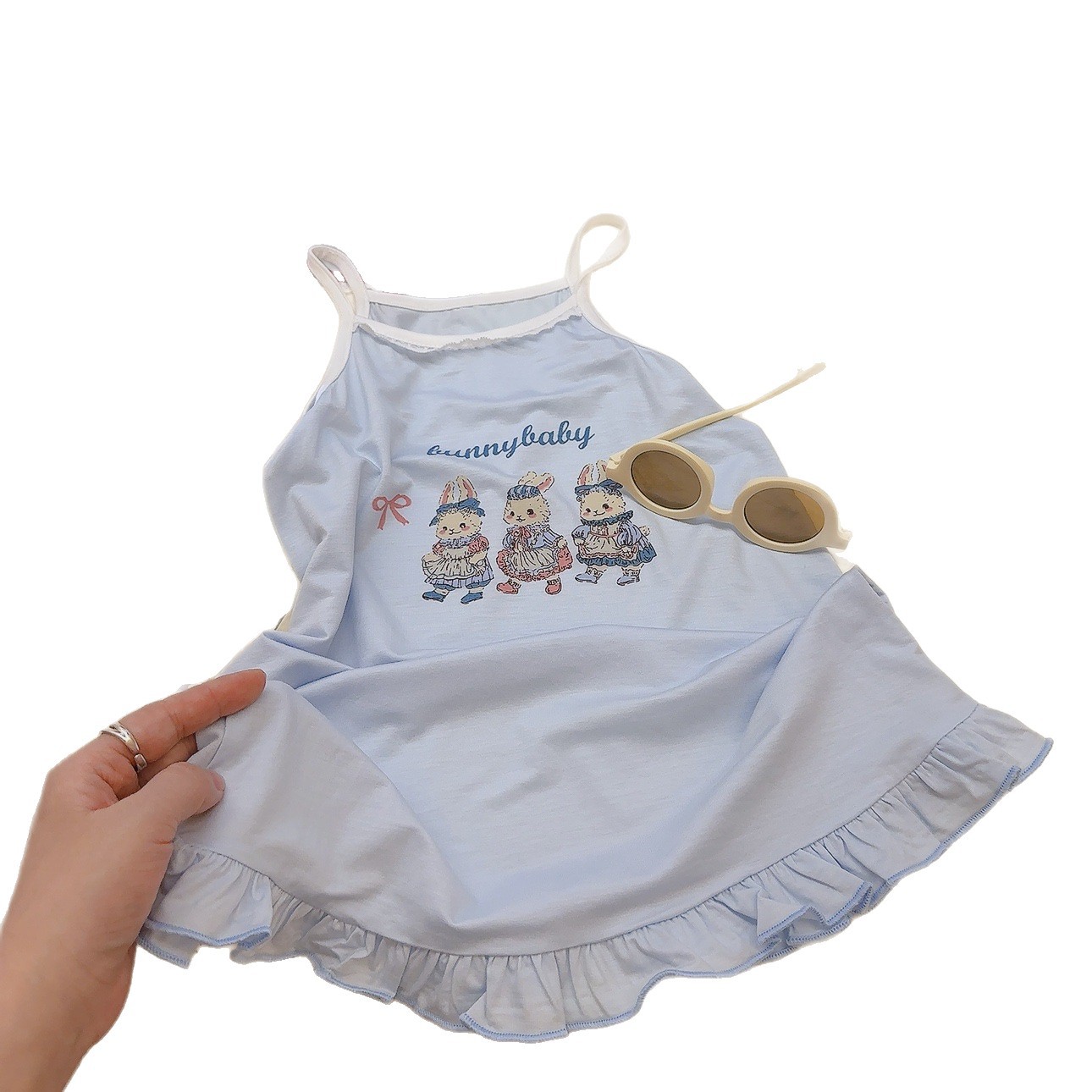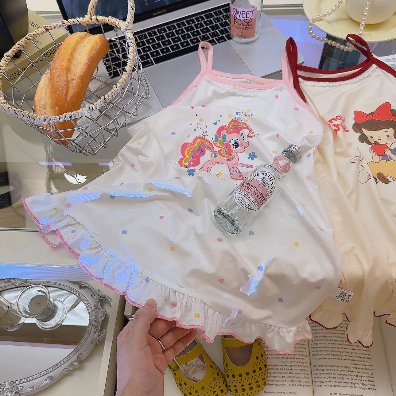 Детская ночная рубашка на подтяжках, детское летнее тонкое платье, средние и большие детские милые пижамы принцессы, домашнее платье для маленькой девочки