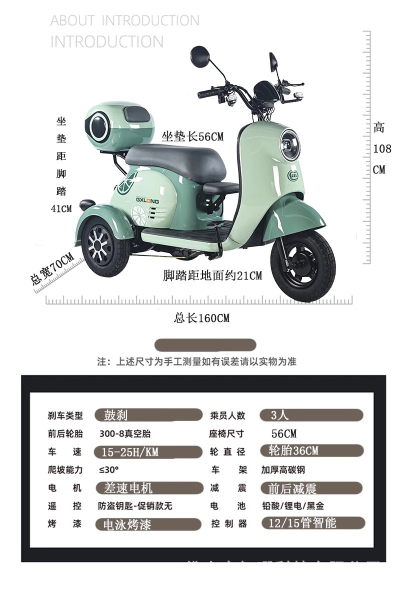 Комфортабельный и просторный электромобиль, пассажирский электрический трицикл, малогабаритное транспортное средство для перевозки детей, женский транспорт, электрический трицикл для пожилых людей.