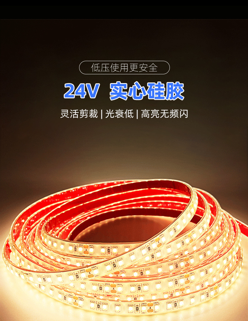 Светодиодная лента низкого напряжения 24 В, твердый силикон IP68, уличная водонепроницаемая, высокая яркость, подводная световая лента, освещение для бассейна, ландшафтное освещение