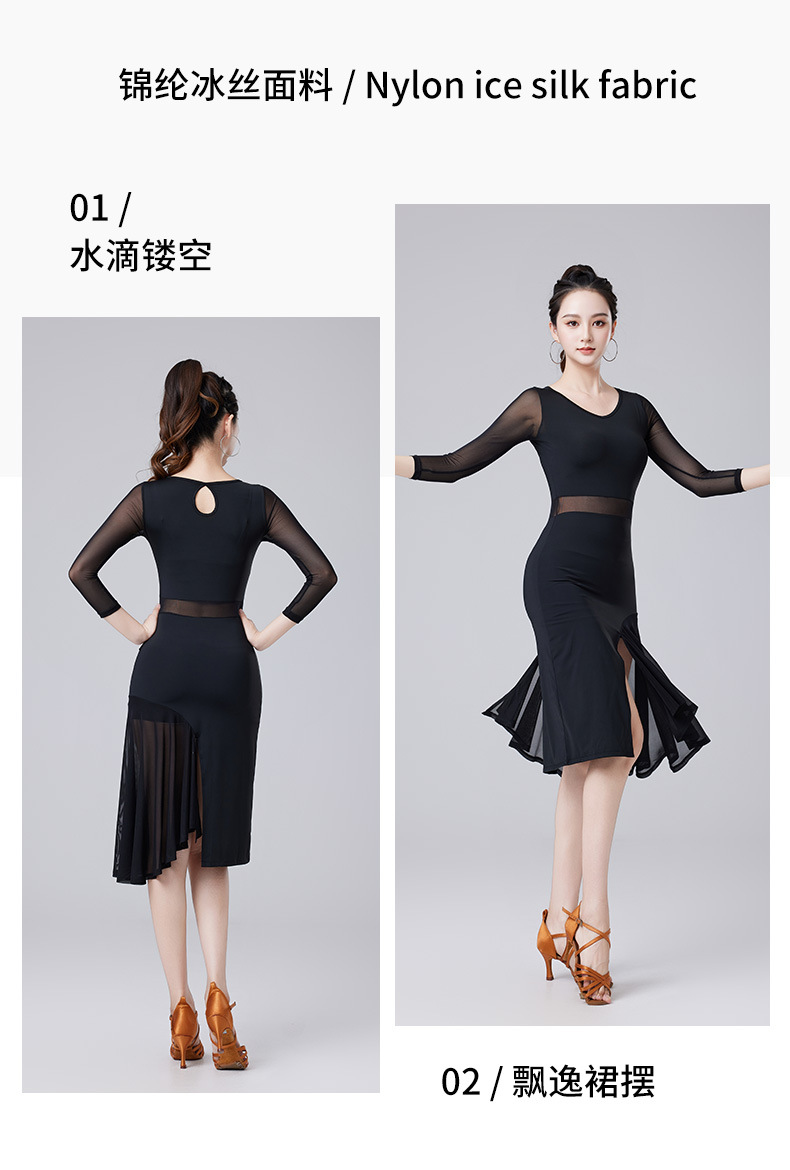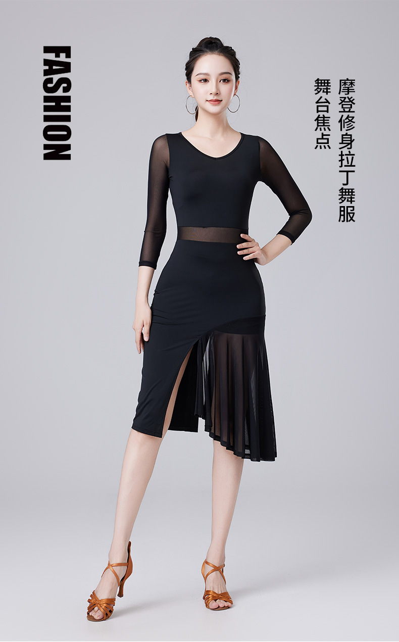 Платье для латинских танцев для взрослых, новая одежда для танцевальной практики, профессиональная сексуальная танцевальная юбка, стильная танцевальная одежда для тренировок
