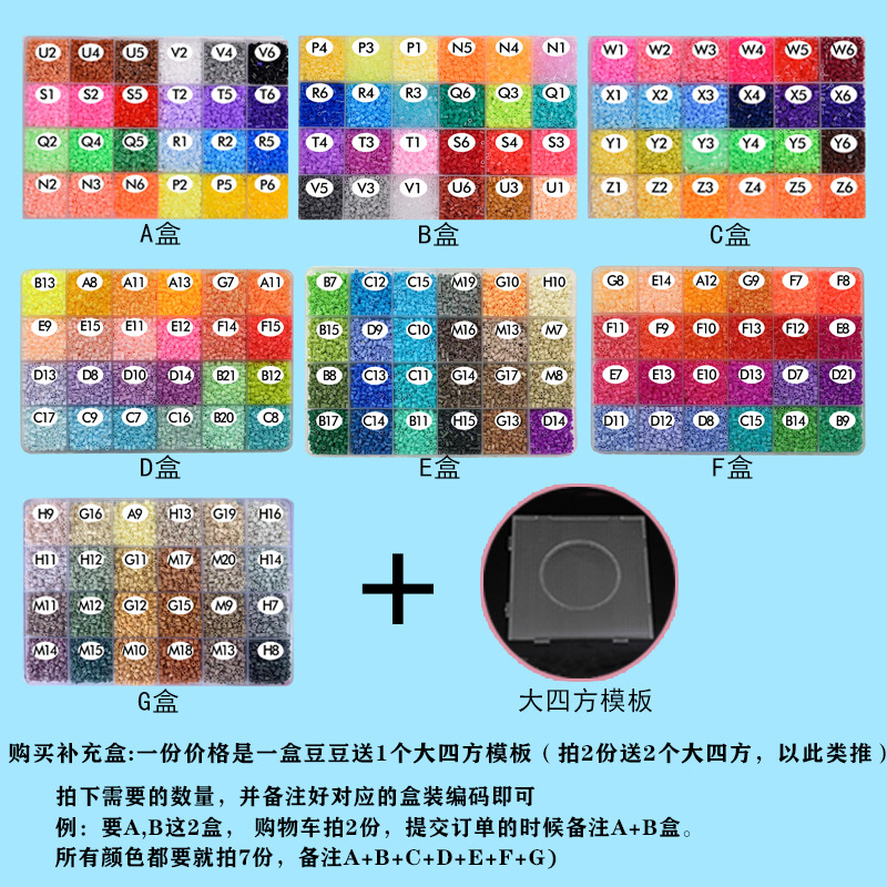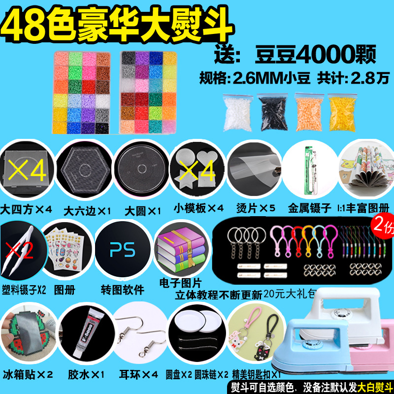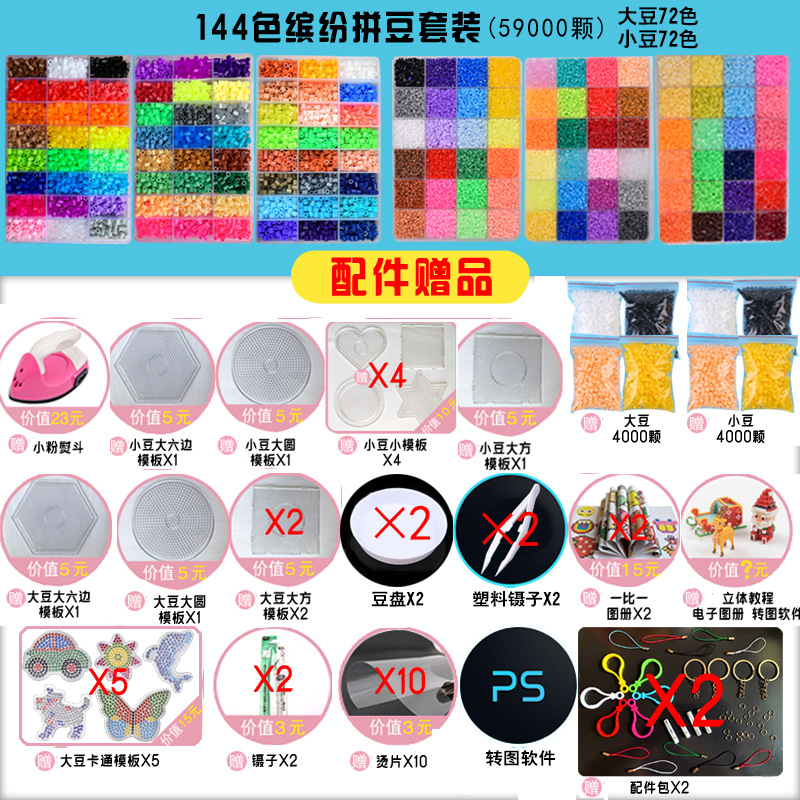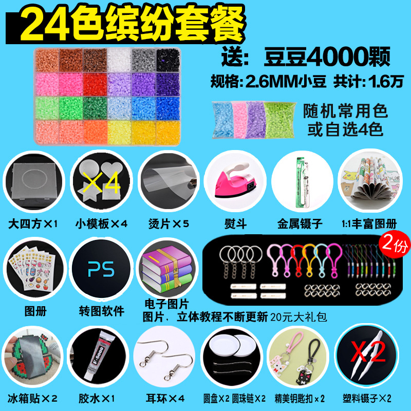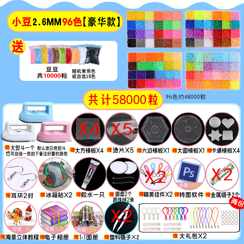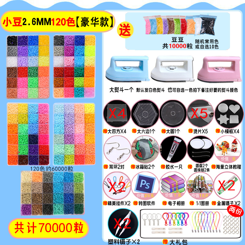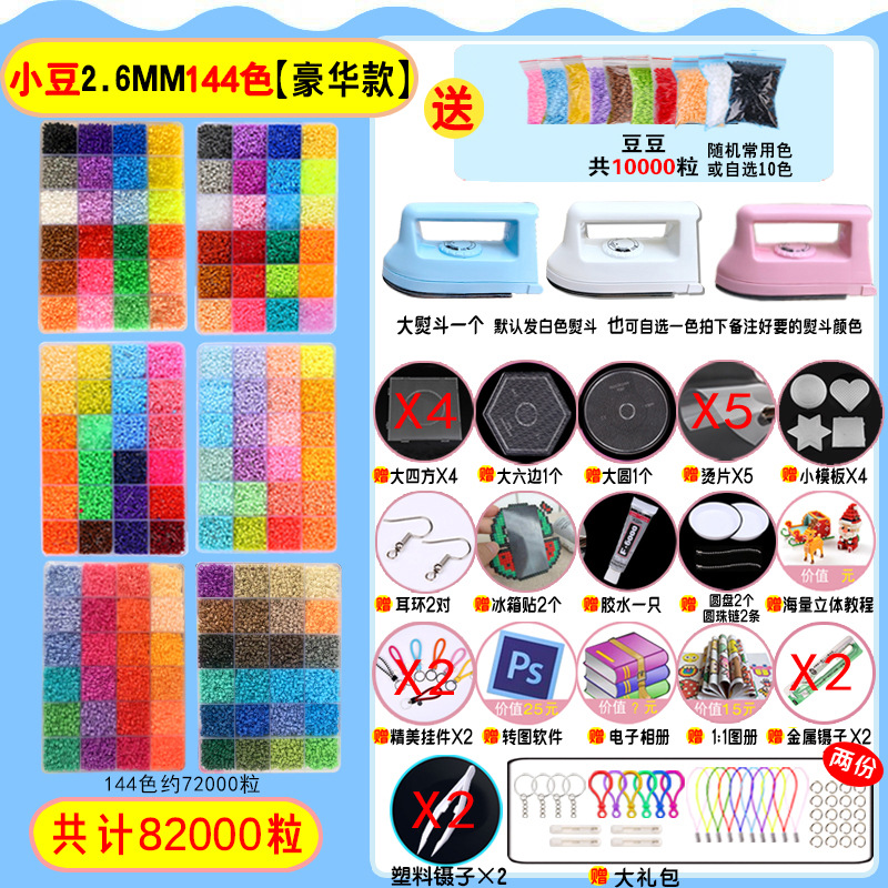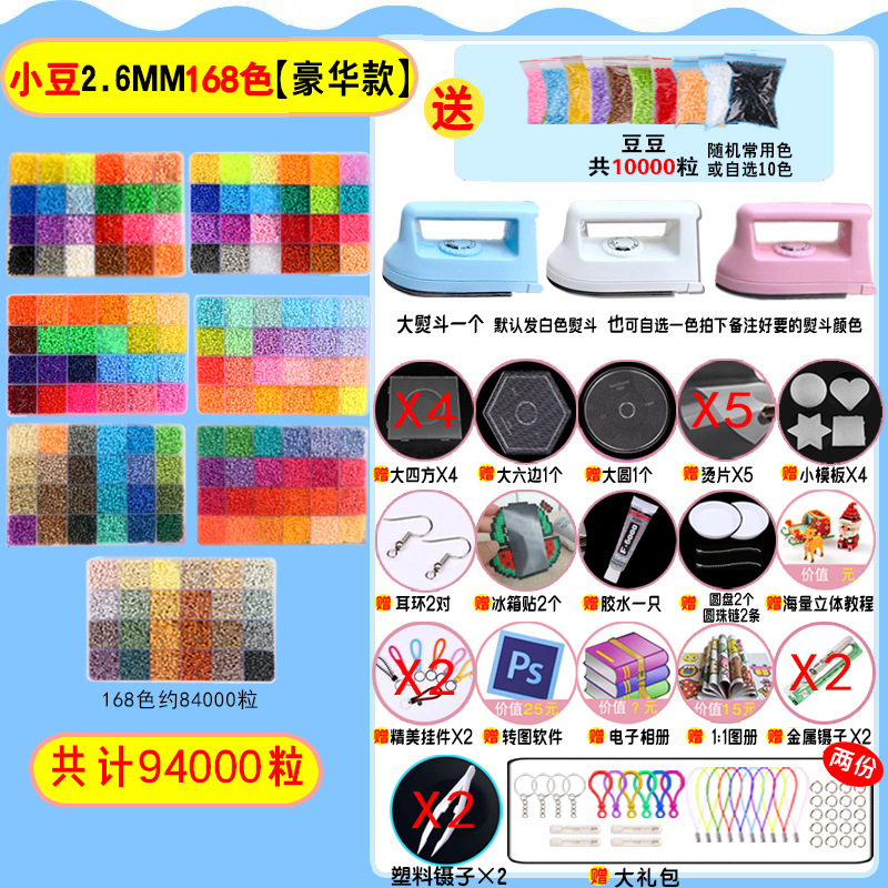 2,6 мм, упаковка из 24 цветов; Базовый набор 2,6 мм, 48 цветов, в комплекте 2000 штук.; 2,6 мм, 48 цветов, красочная упаковка; 2,6 мм, 48 цветов, модернизированных для получения большого белого утюга; Красочная упаковка 2,6 мм72; 2,6 мм, 72 цвета, модернизированные для получения большого белого утюга; 2,6 мм, обновление до 96 цветов с бесплатным большим белым утюгом; Обновление 2,6 мм, 120 цветов, чтобы получить большое белое железо; 2,6 мм, обновление до 144 цветов с бесплатным термозапайщиком; Обновление цвета 2,6 мм 168 поставляется с большим белым железом; Дополнительный блок расширения 2,6 мм; 144-цветный роскошный набор для родителей и детей 59 000 с железом