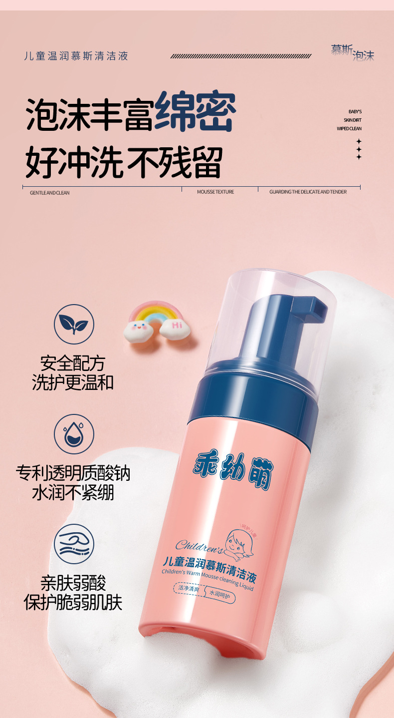 Милый и милый детский теплый мусс-очищающее средство для ежедневного очищения ягодиц, нежный и не раздражающий детский мусс-гель для душа.