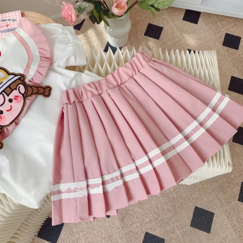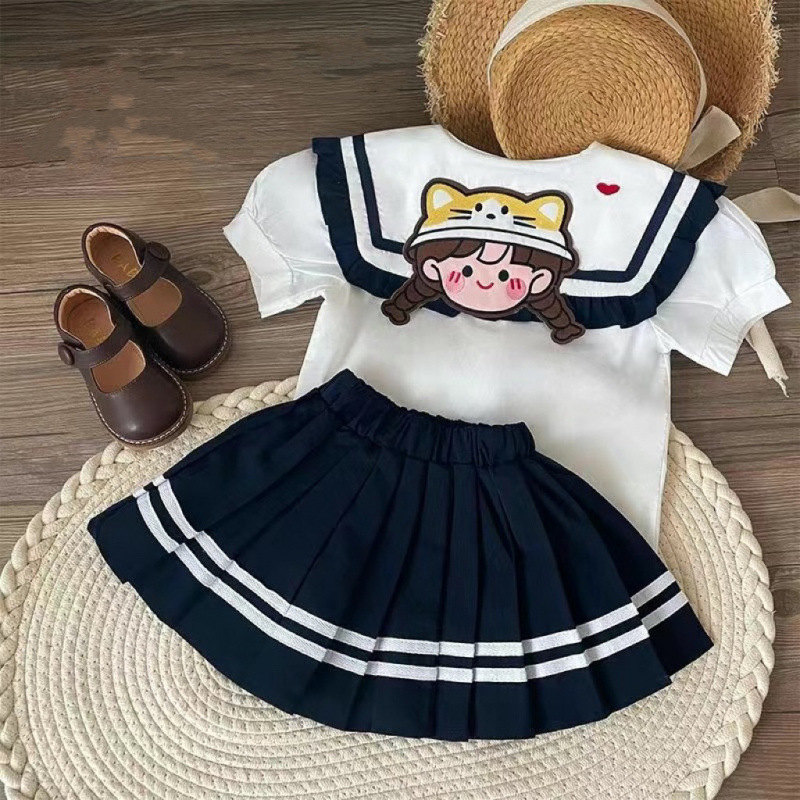 Летний костюм для девочек 2025, детская форма JK, модный стиль преппи, двухкомпонентный комплект с юбкой для малышек