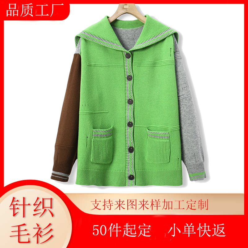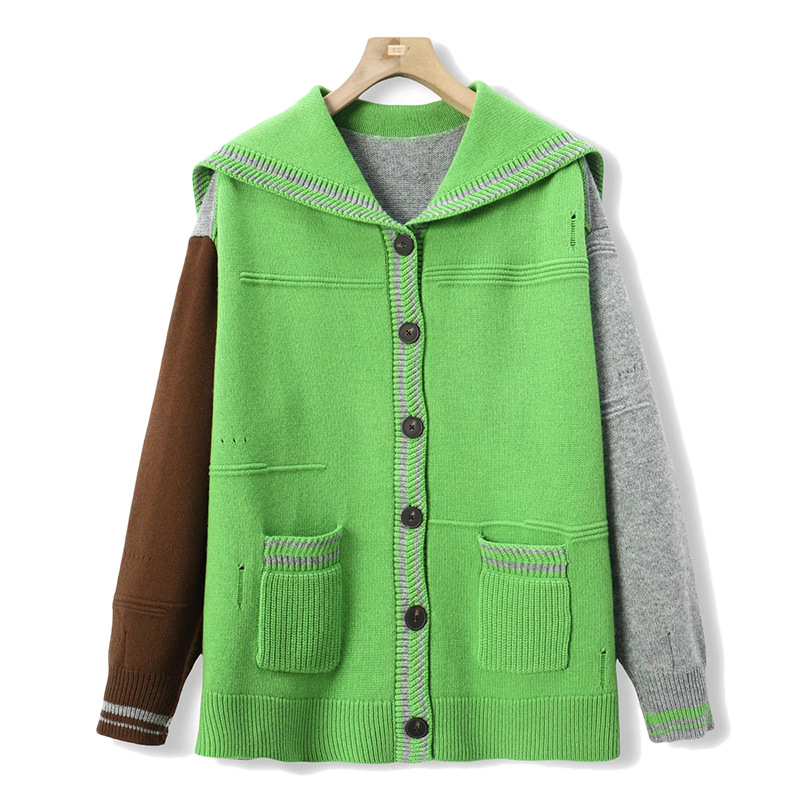 Женский шерстяной кардиган на заказ, разноцветный вязаный свитер с лацканами и длинными рукавами, стройнящий, эксклюзивно для трансграничных продаж