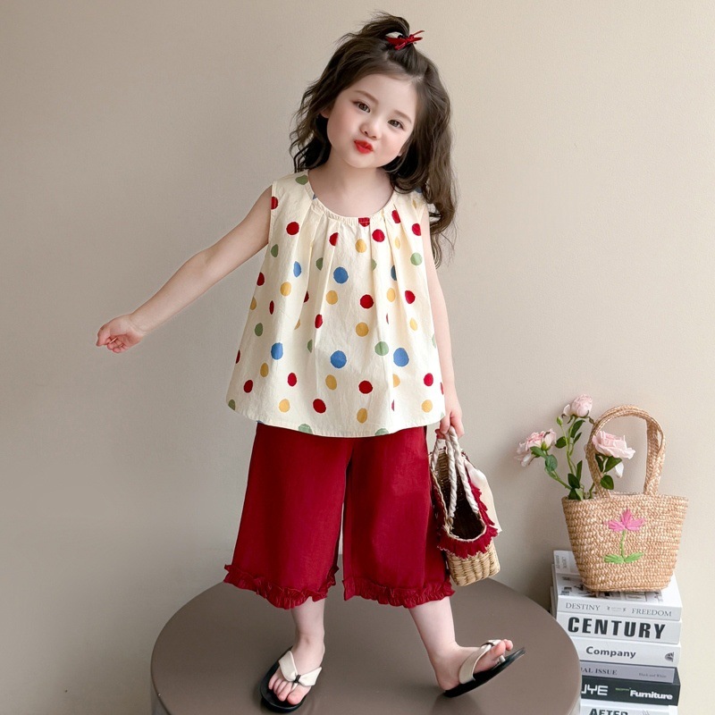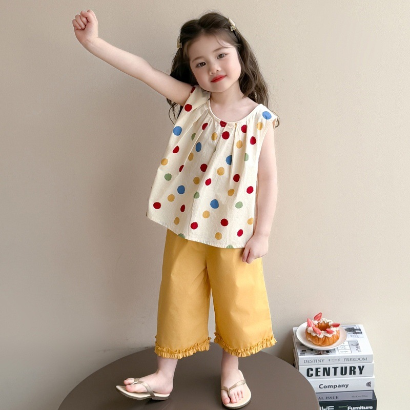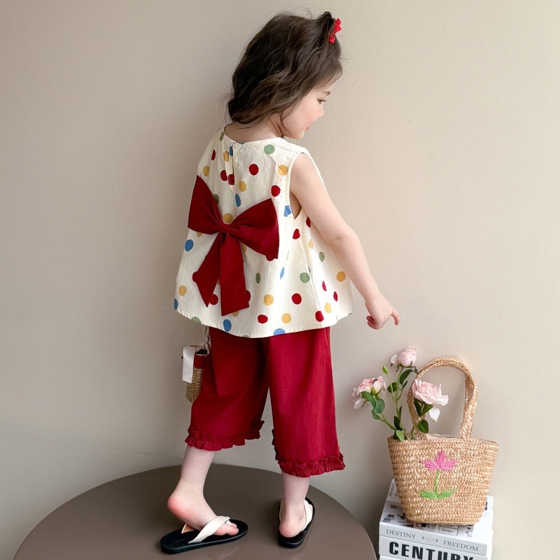 Летний сладкий костюм для девочек 2025 новый стиль детская одежда комплект из жилета и тонких брюк для малышек