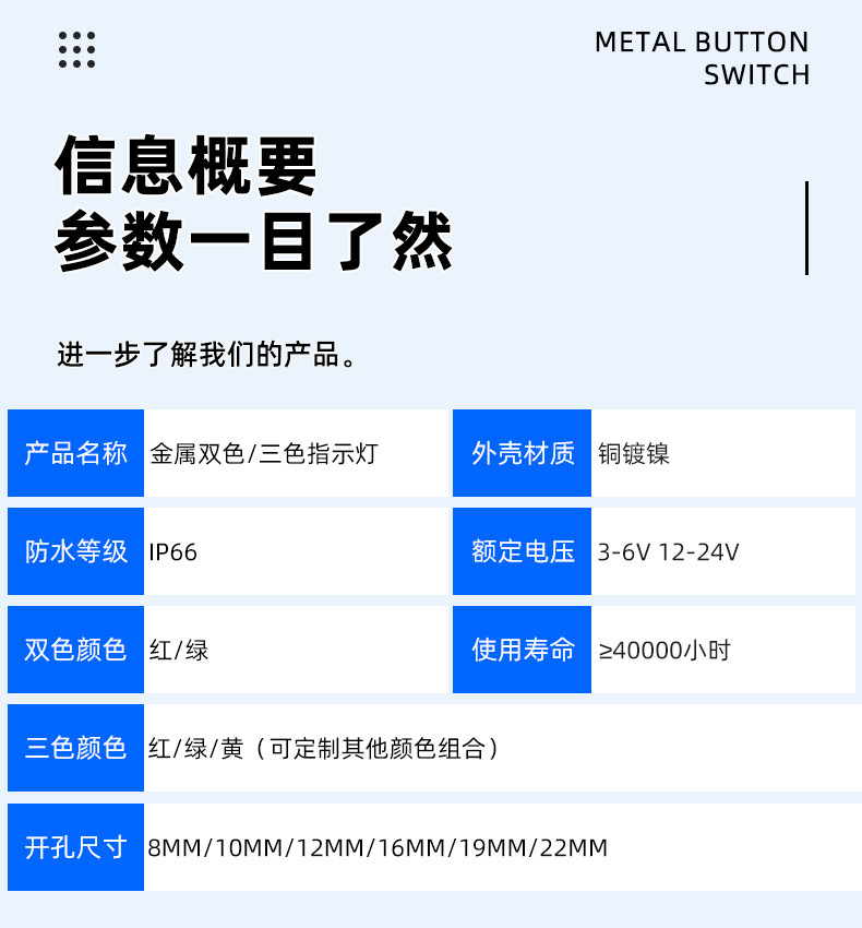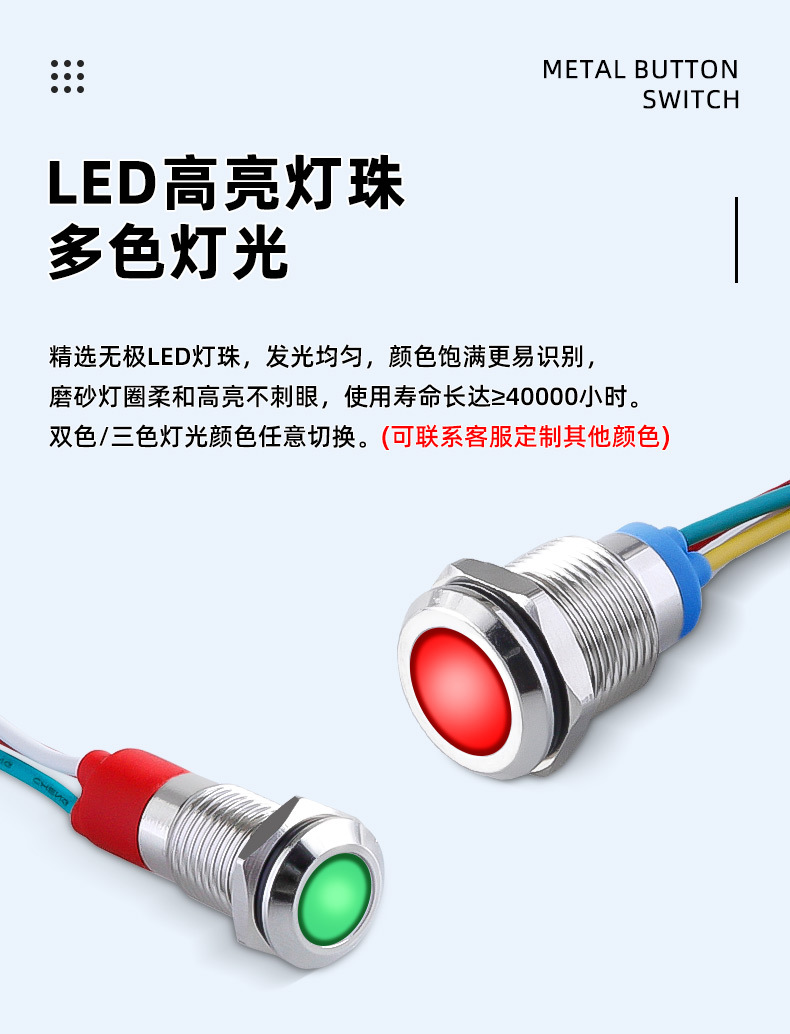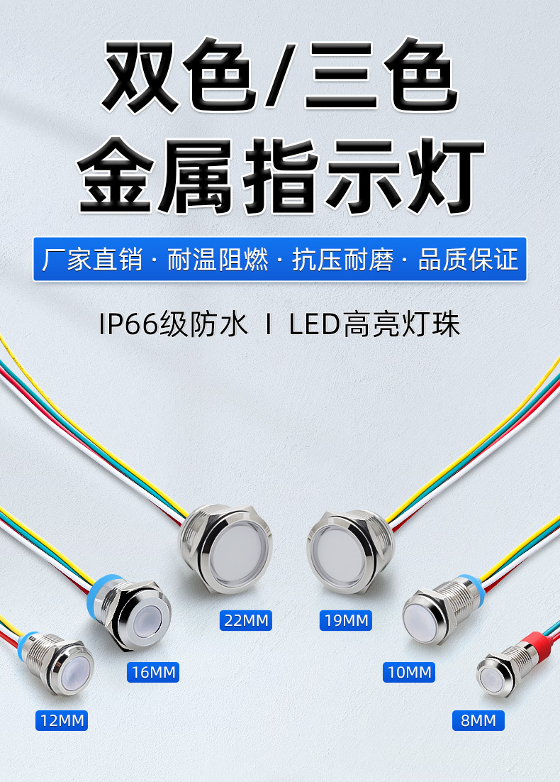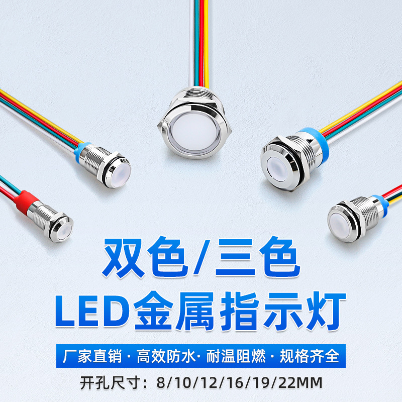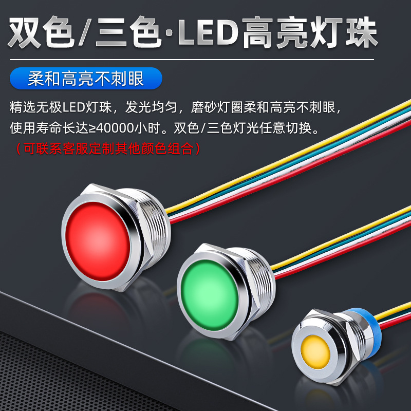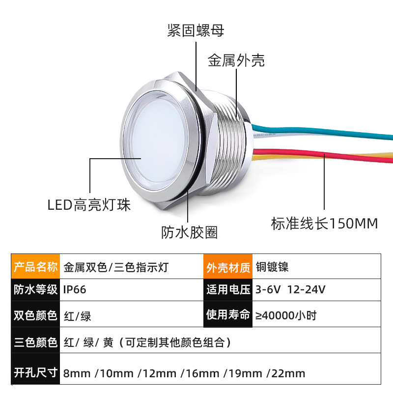Светодиодный двухцветный трехцветный металлический индикатор, водонепроницаемый сигнальный светильник 8/10/12/16/19/22 мм, рабочий источник питания 24 В