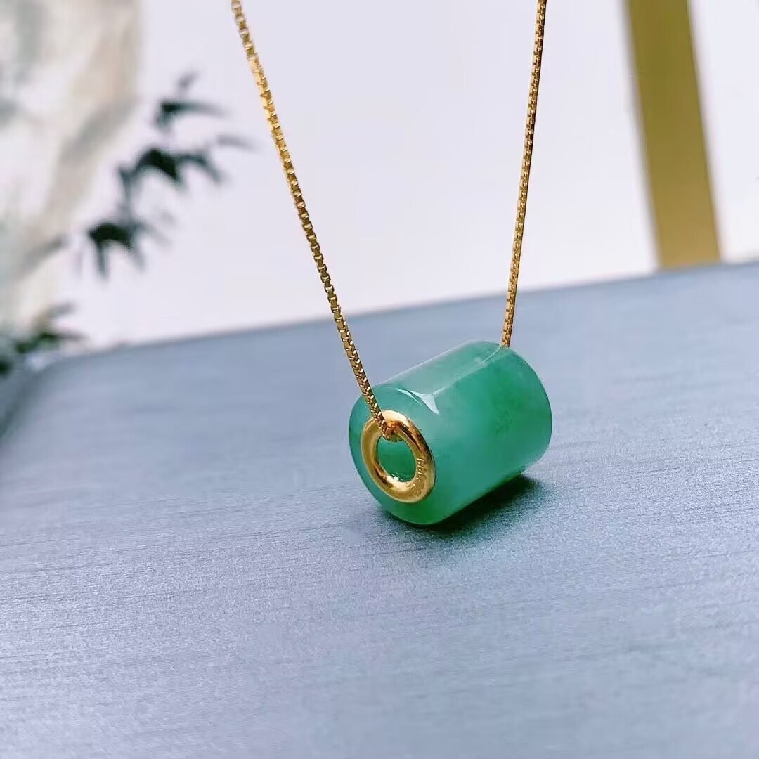 Натуральный африканский изумруд, инкрустированный золотом, нефритовые бусины для переноски, нефритовый кулон Dulong Passepartout для мужчин и женщин, чистое золото, прямые поставки с фабрики, товары из первых рук