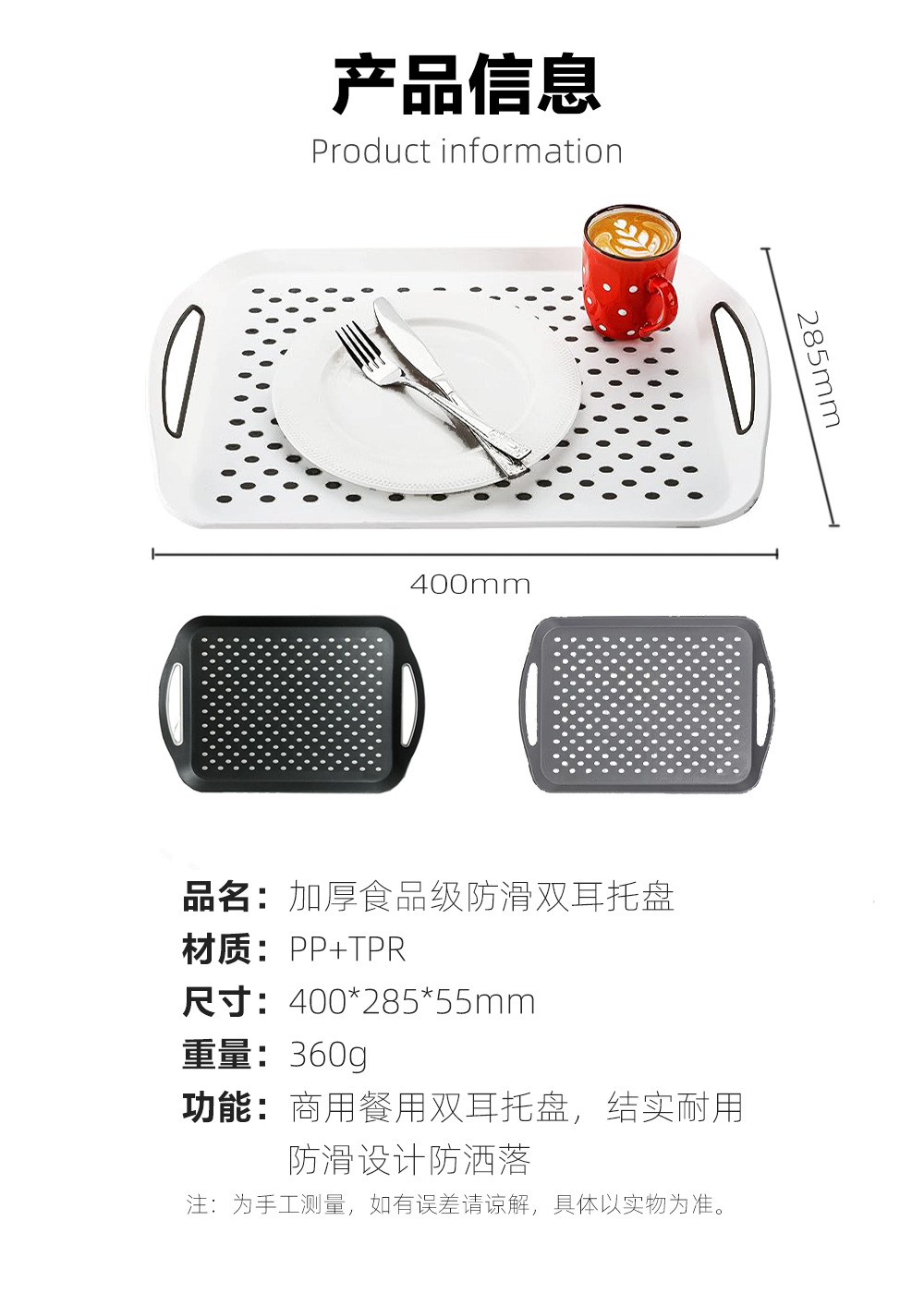 Пластиковый прямоугольный поднос с двумя ручками, поднос для подачи в отелях, поднос для кейтеринга, специальный нескользящий поднос для коммерческих ресторанов