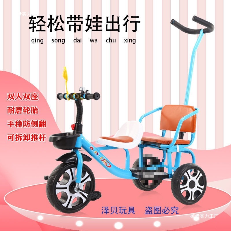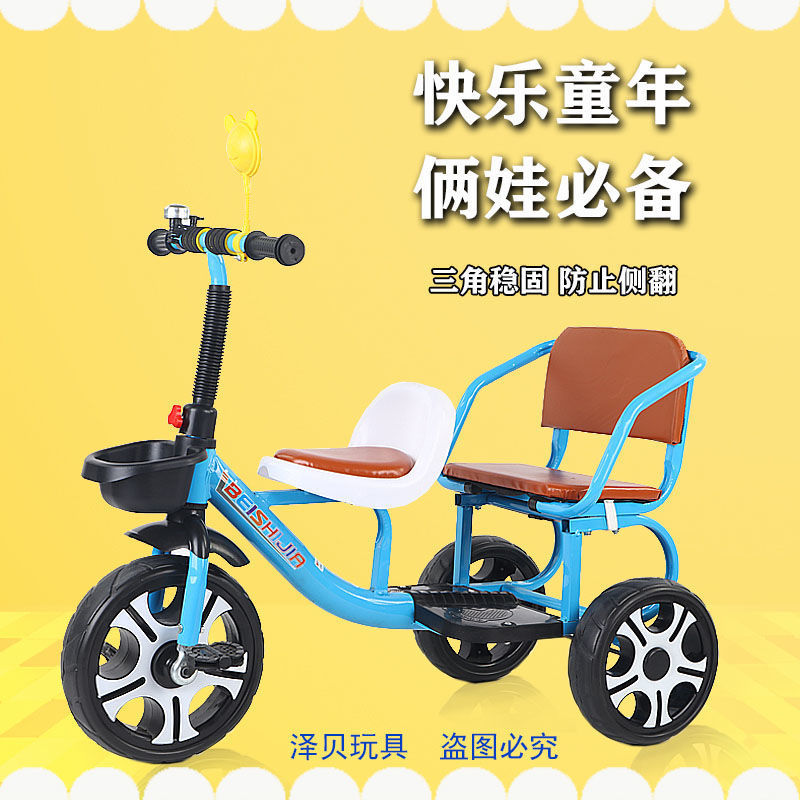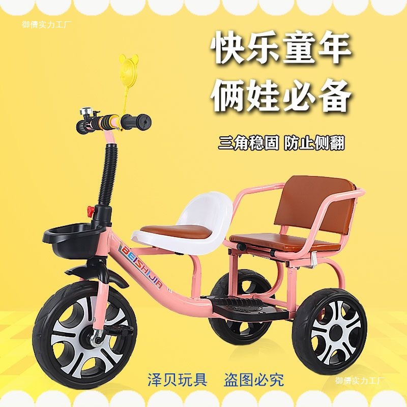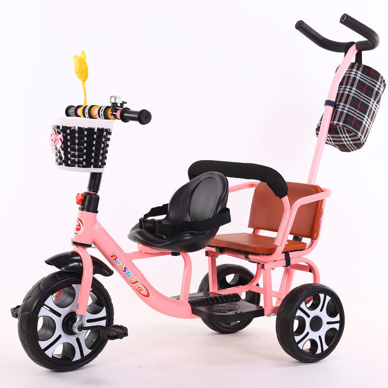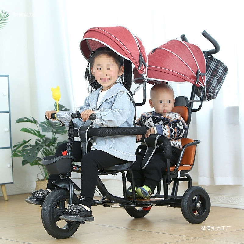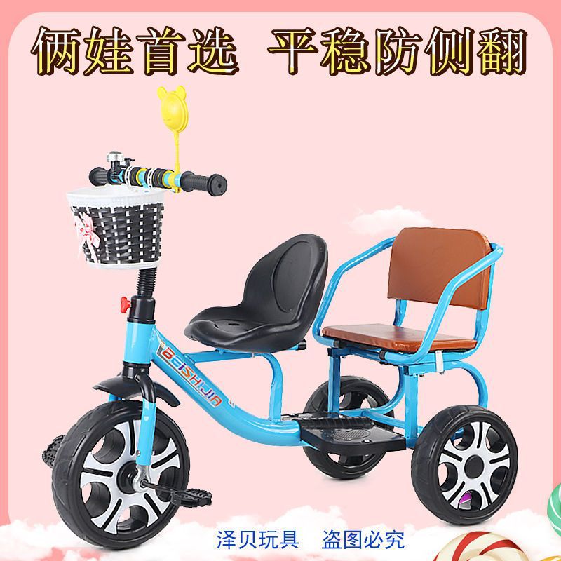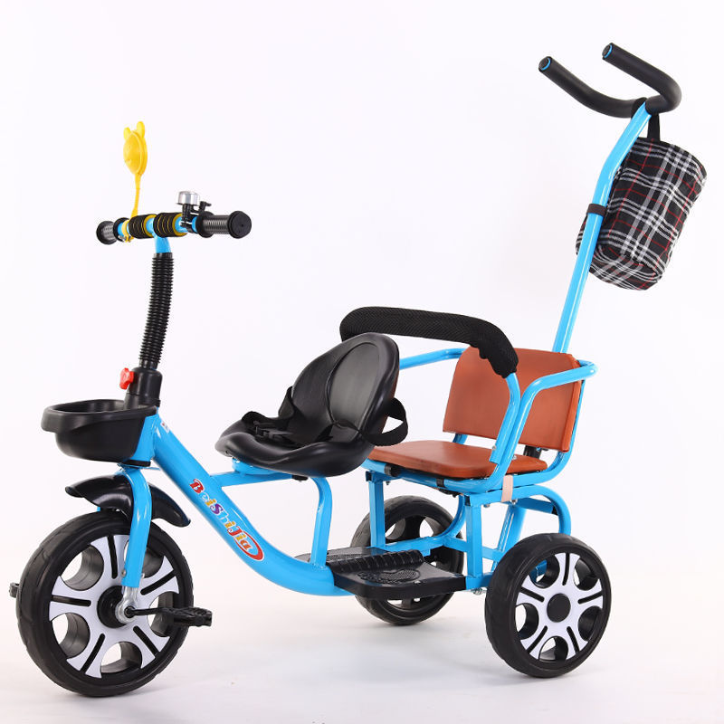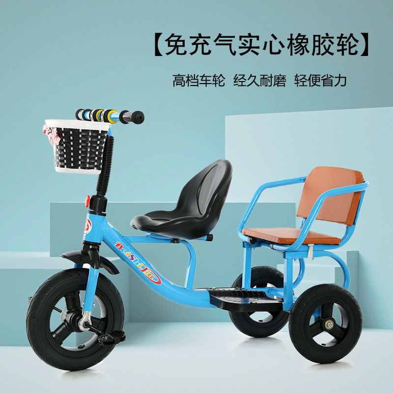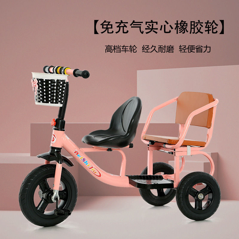 Детский трехколесный велосипед с педалями, двухместный трехколесный велосипед для мальчиков и девочек, с возможностью сидения и езды.