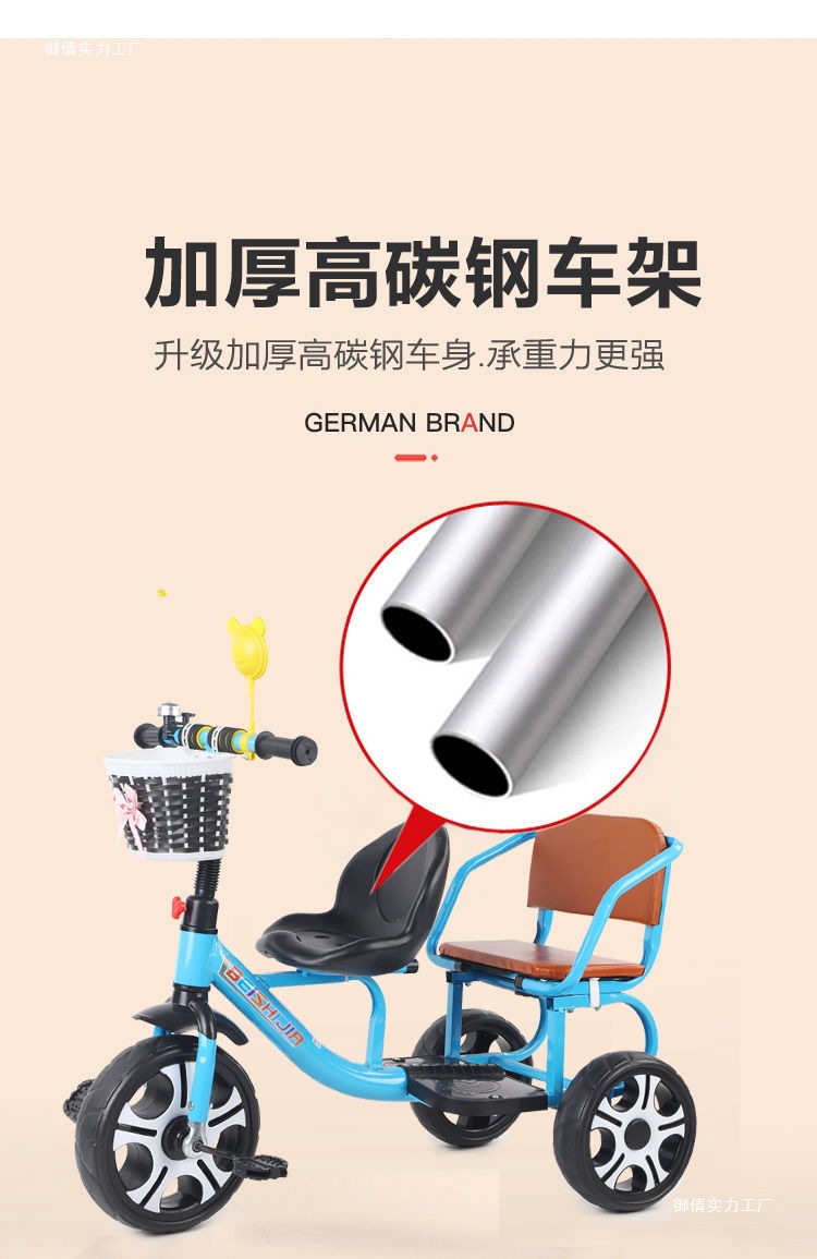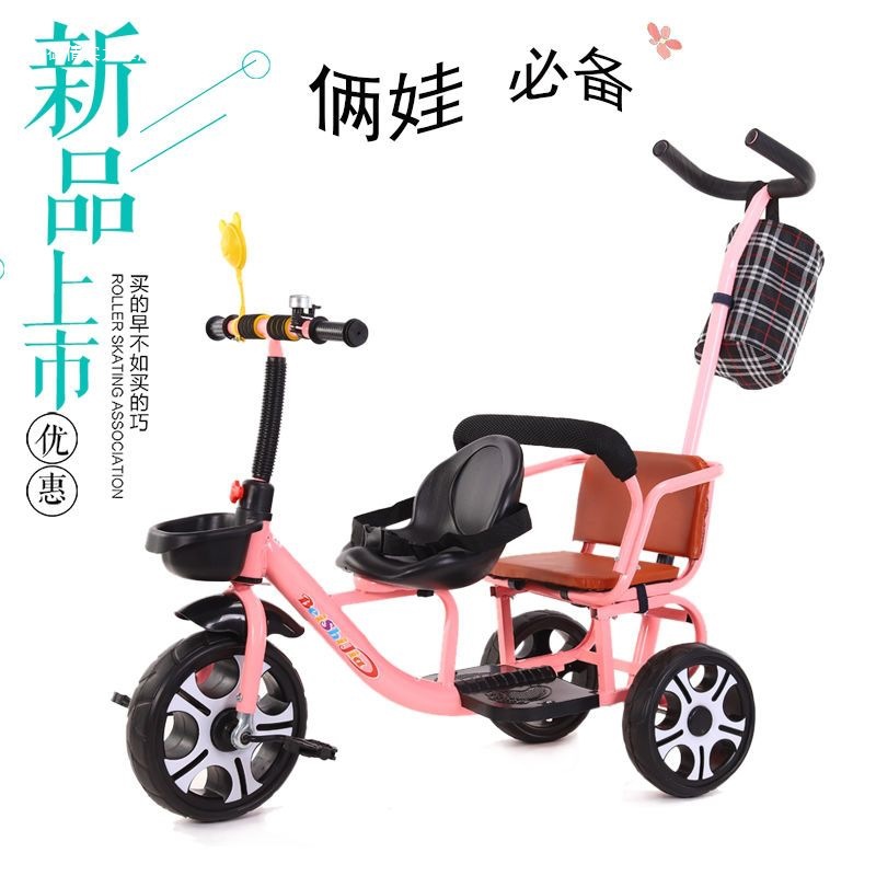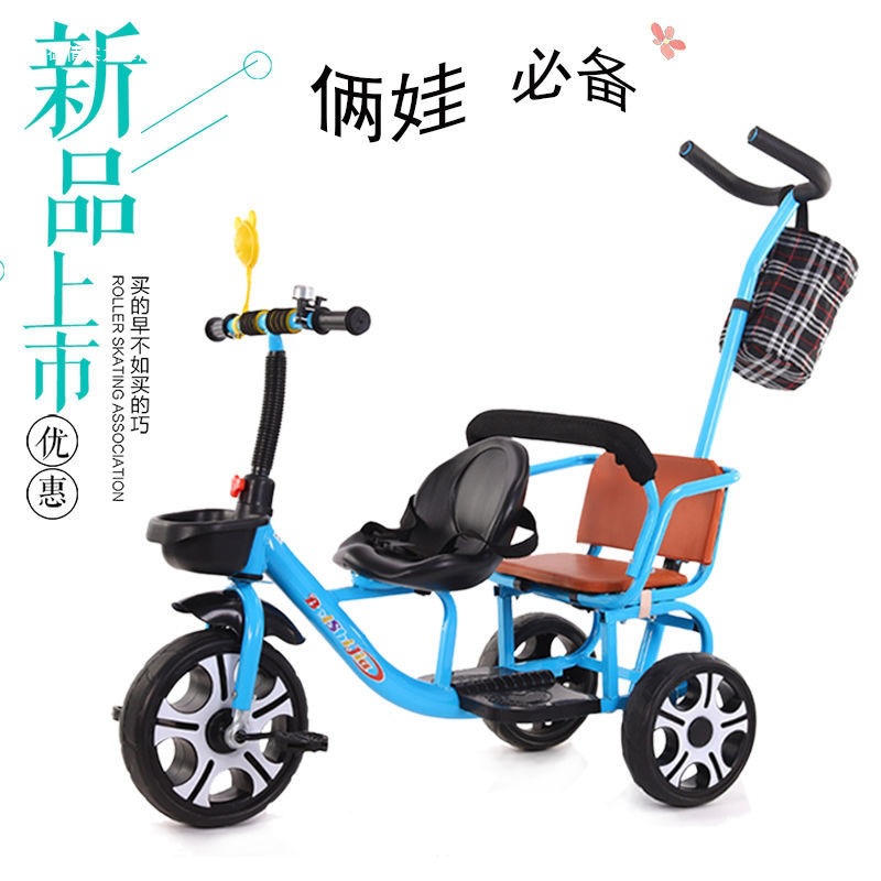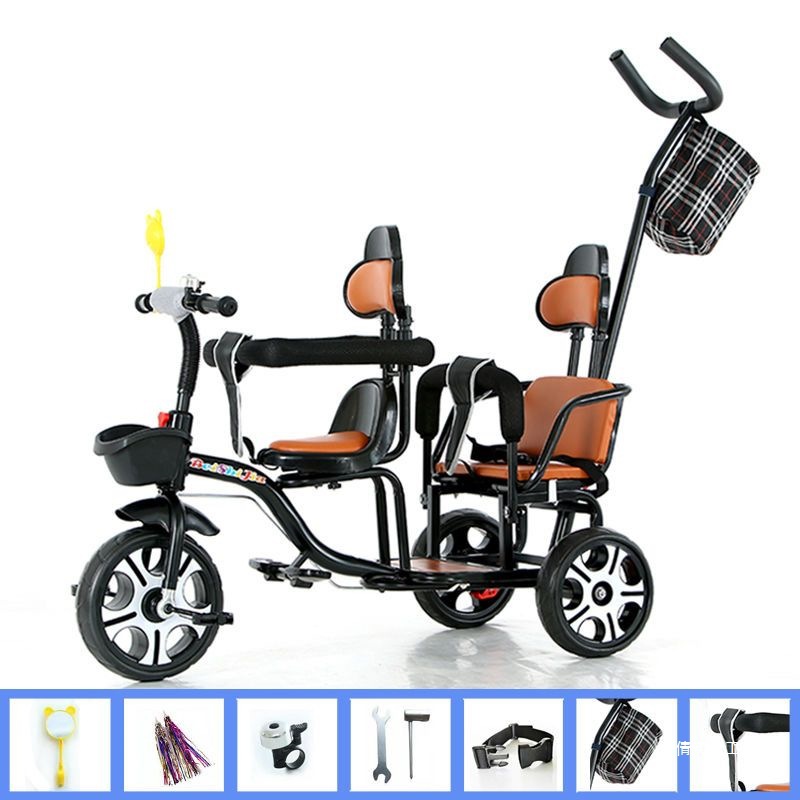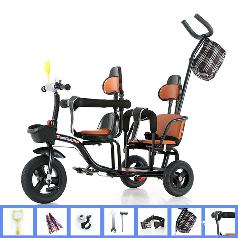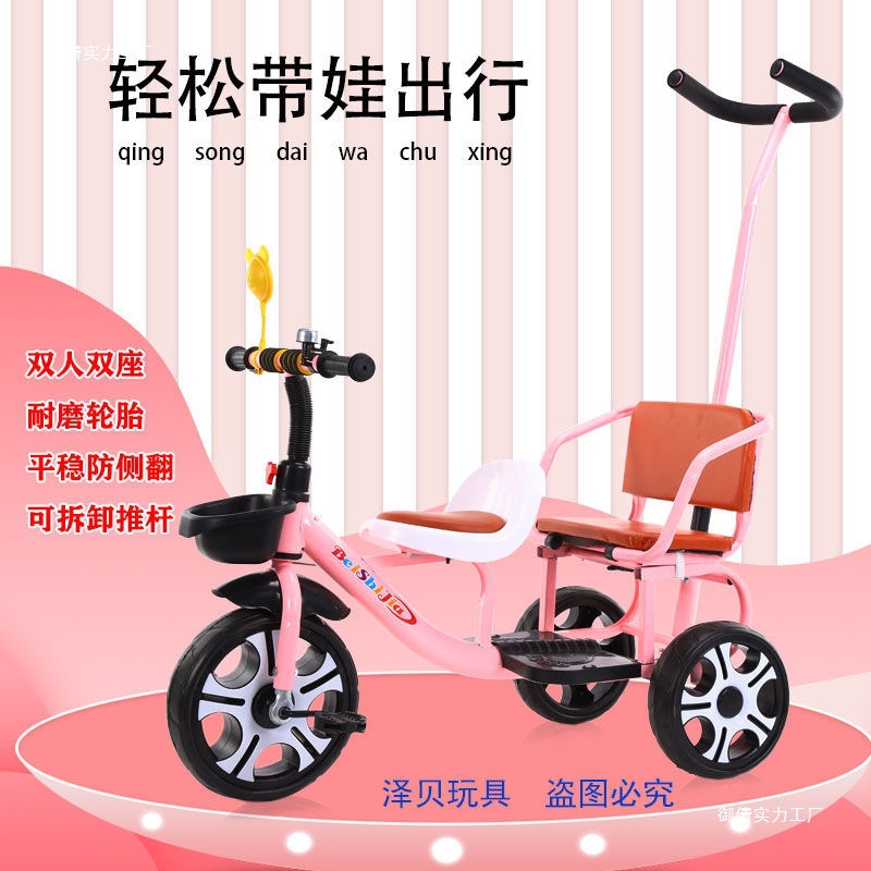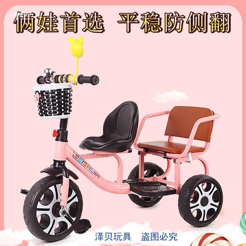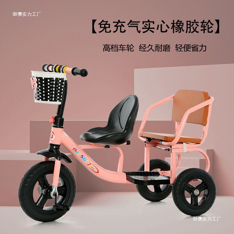 Детский трехколесный велосипед с педалями, двухместный трехколесный велосипед для мальчиков и девочек, с возможностью сидения и езды.
