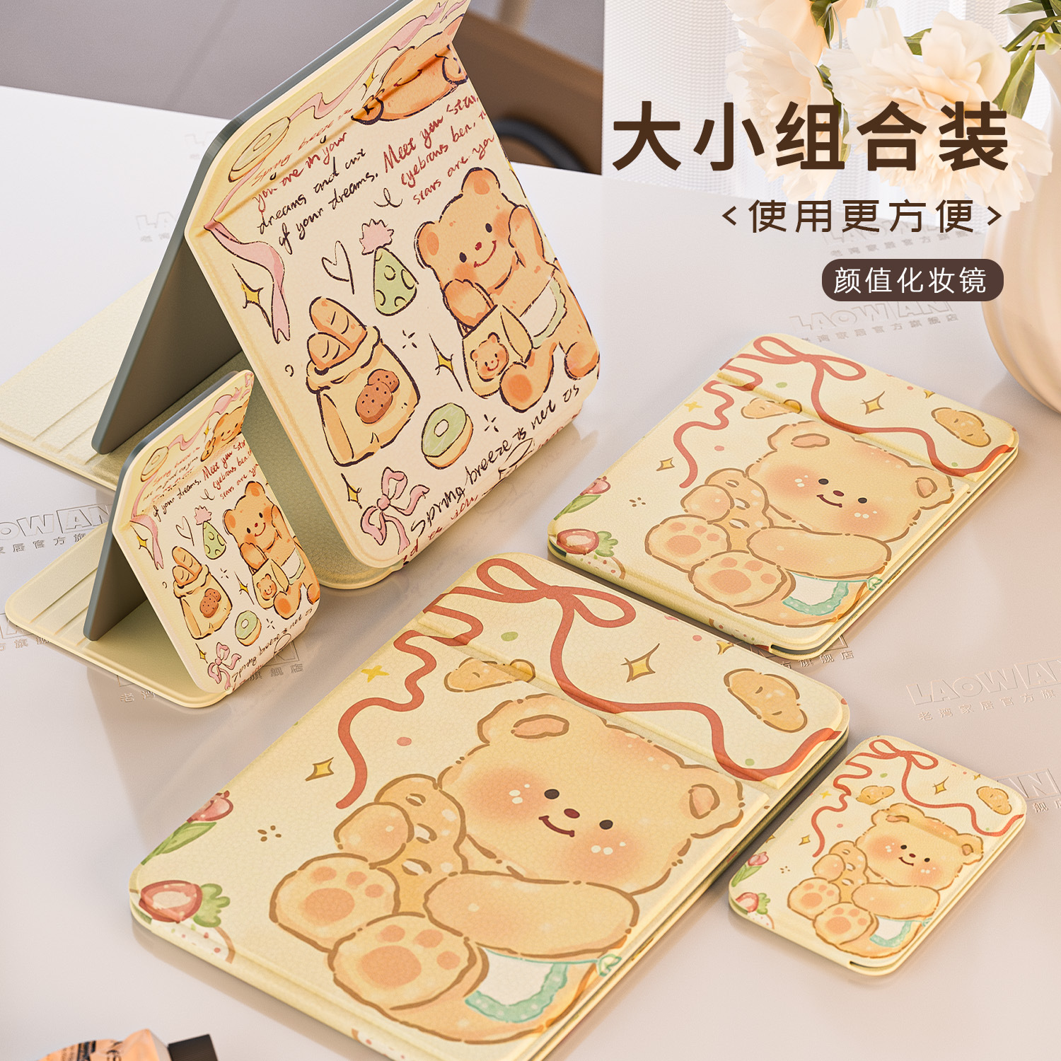 Зеркало Butter Bear, милое зеркало для макияжа, складное зеркало для дома, общежития, офиса, настольное зеркало для макияжа, зеркало для макияжа