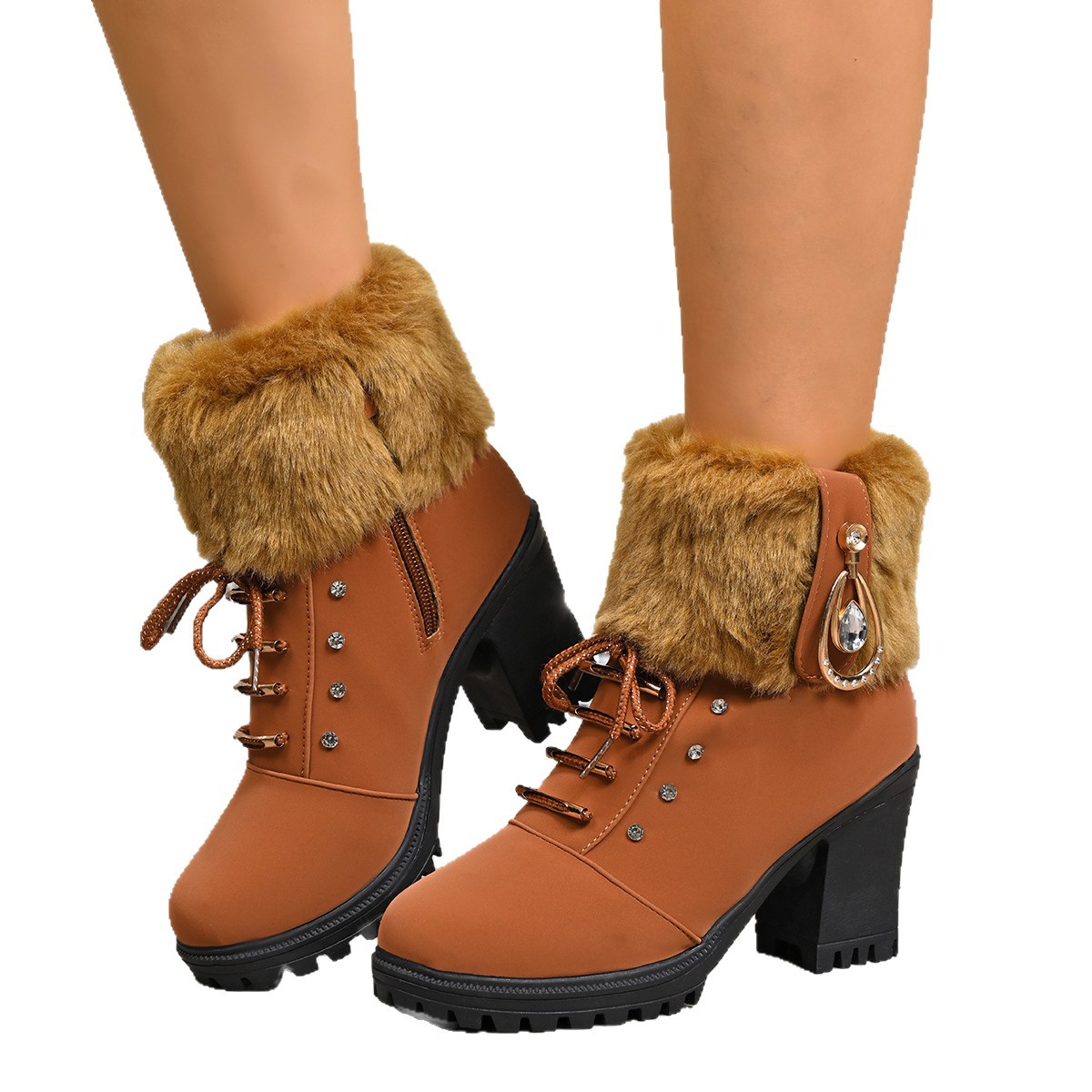 2025 новые женские ботинки большого размера с бархатной подкладкой, круглый носок, толстый каблук, высокий каблук, короткие замшевые ботинки с боковой молнией