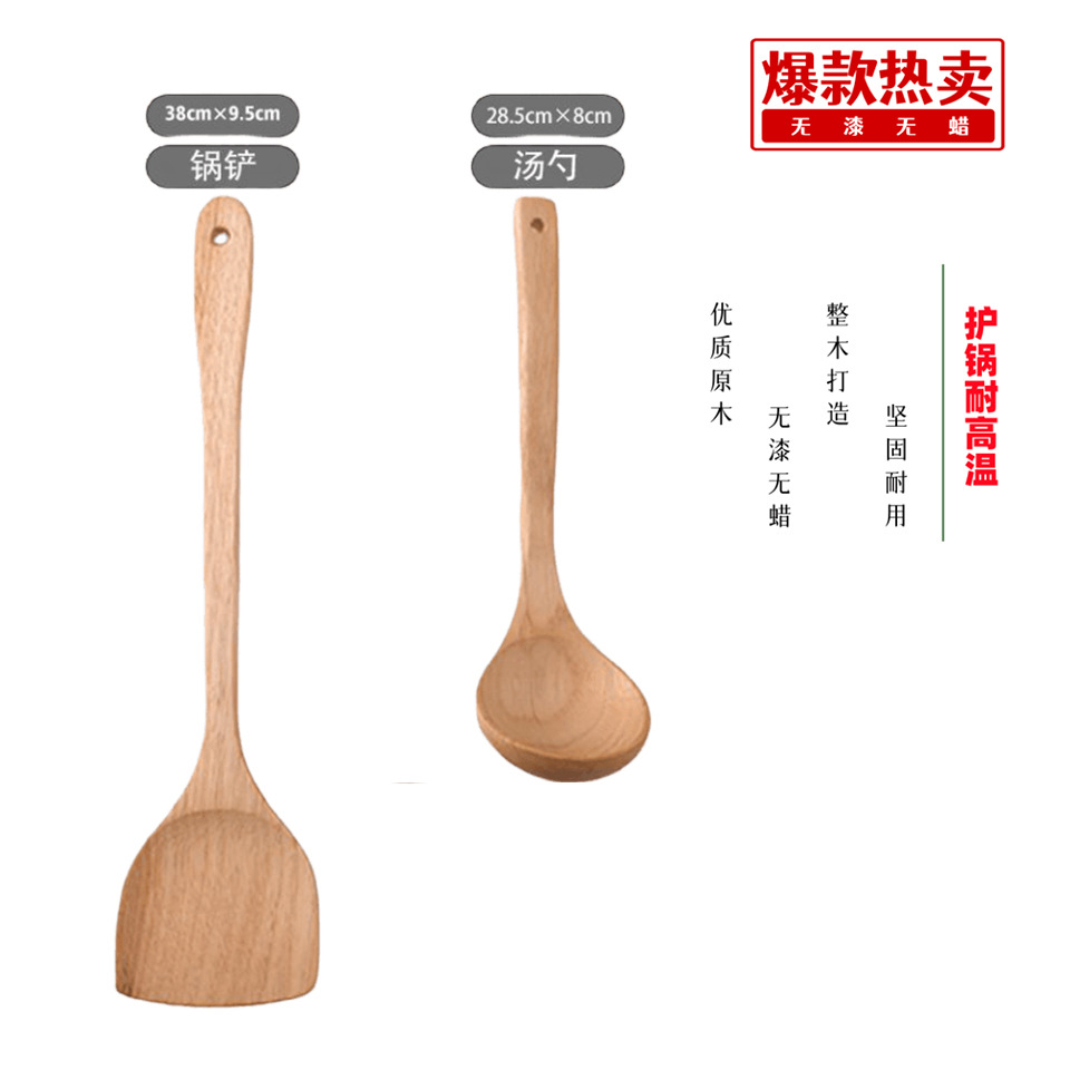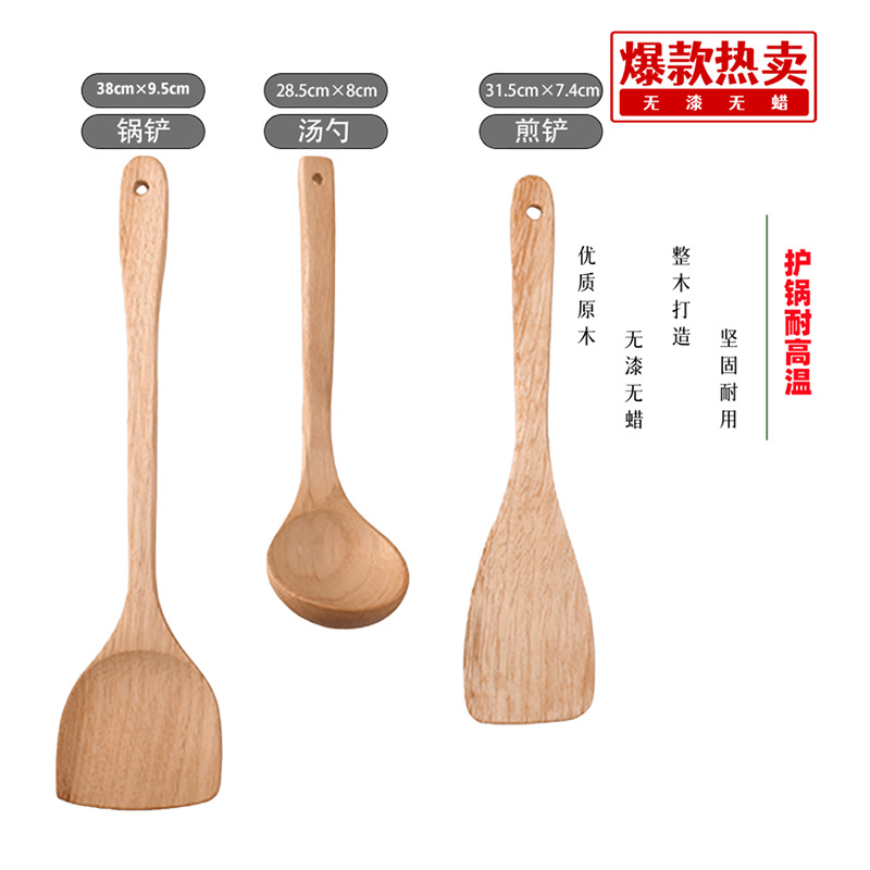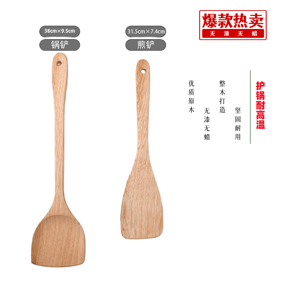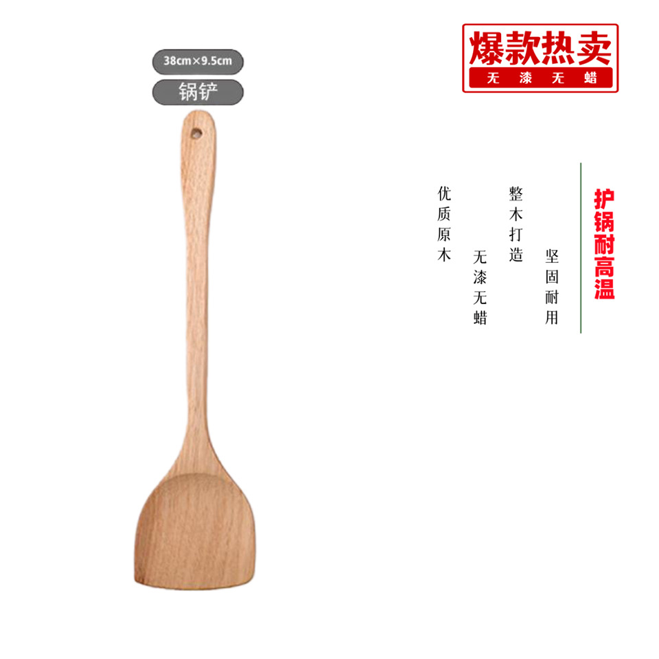 Неокрашенная деревянная лопатка, антипригарная лопатка, кухонная лопатка, бытовая деревянная лопатка, устойчивая к высоким температурам деревянная ложка с длинной ручкой, массив дерева