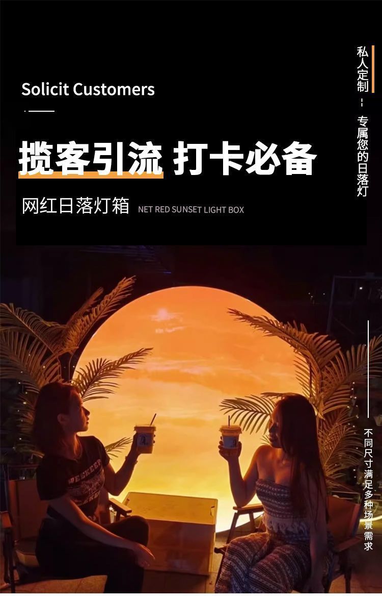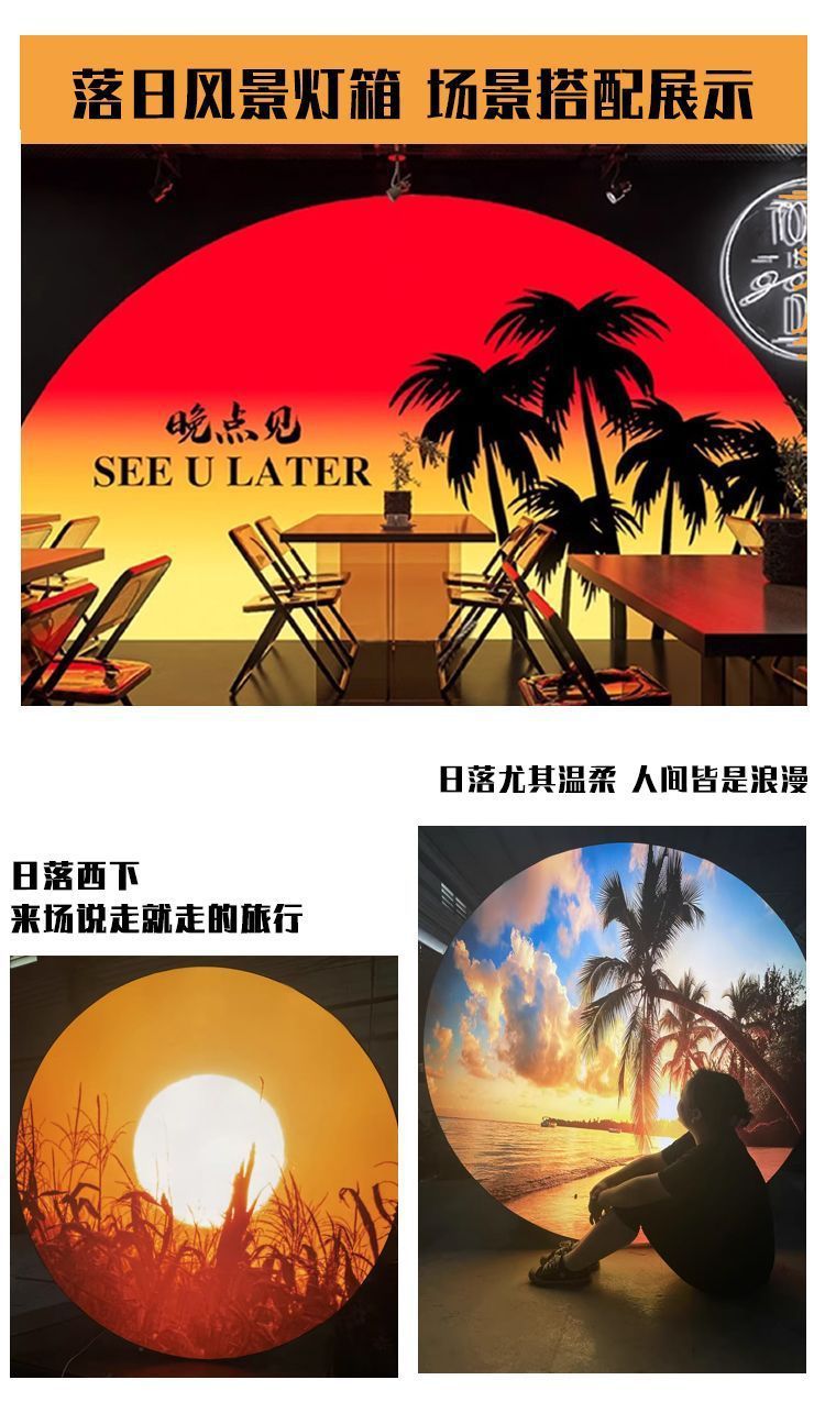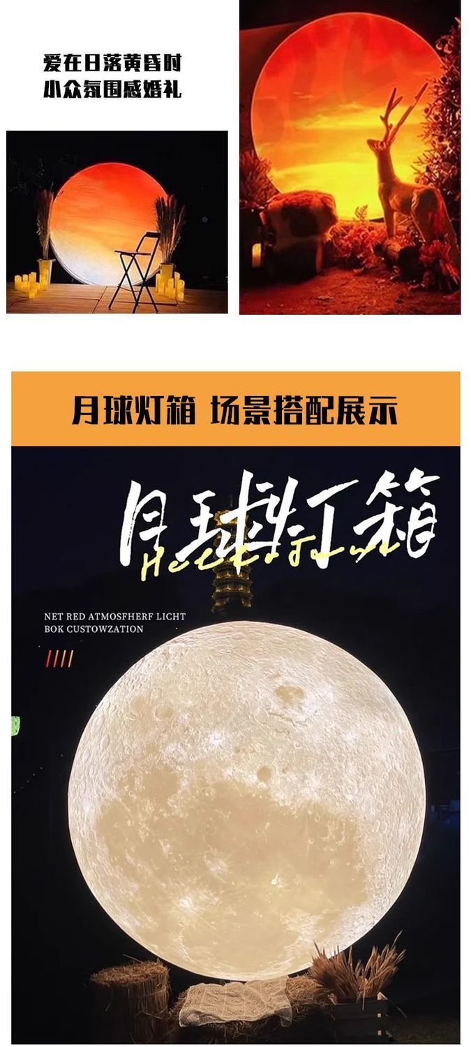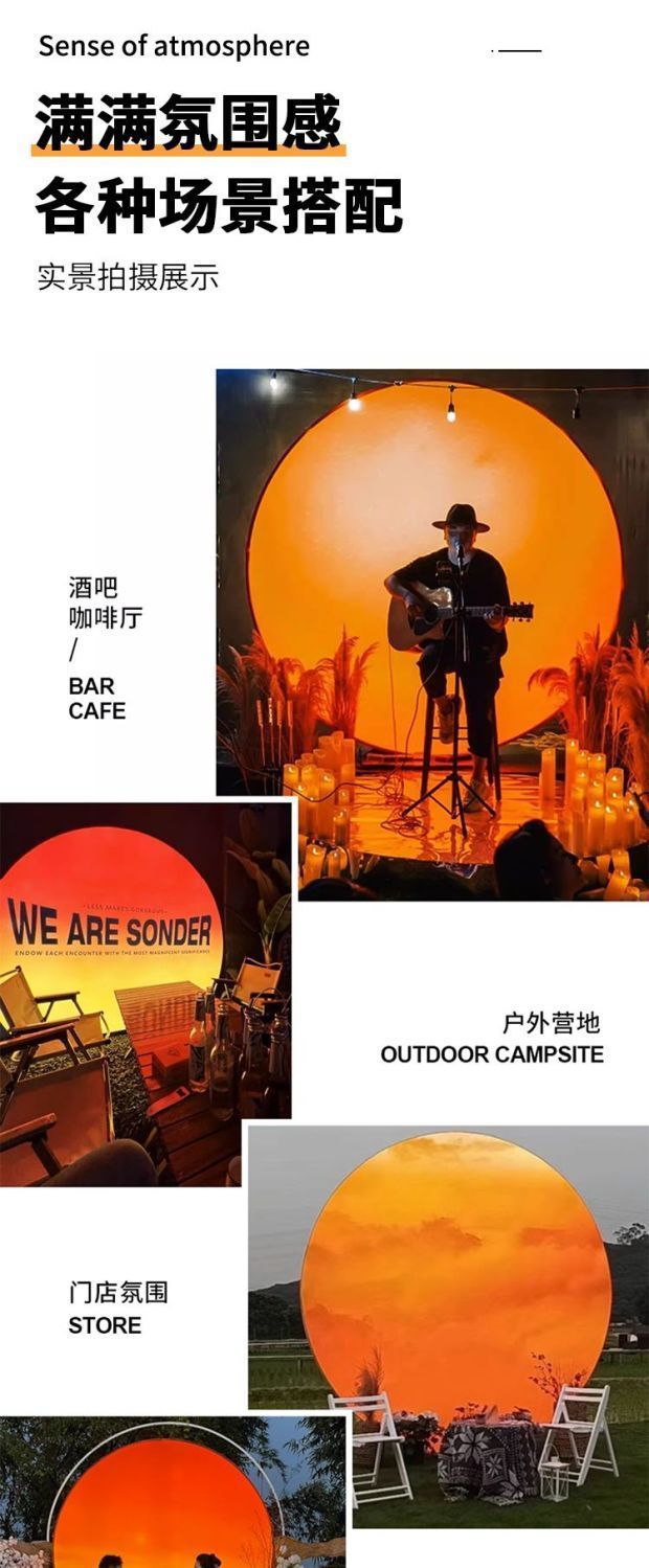 Модный световой короб с закатом, мягкая пленка для улицы, атмосферная фотозона, декор для магазина в стиле кемпинга, лунный билборд
